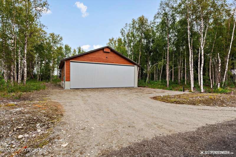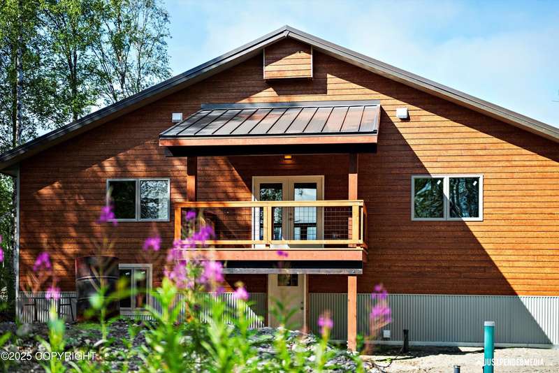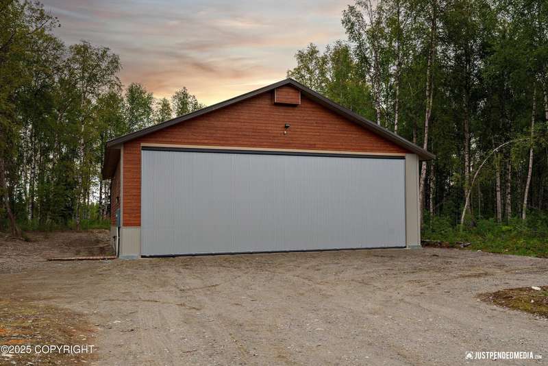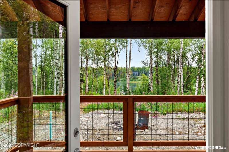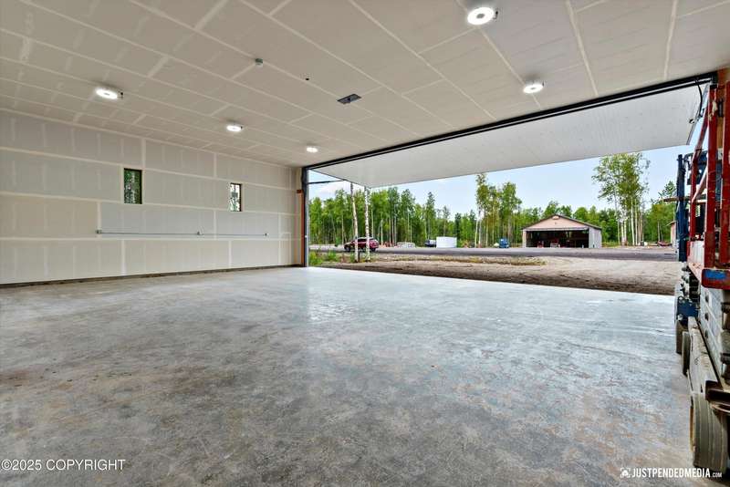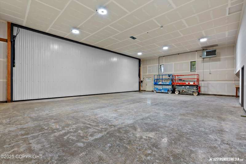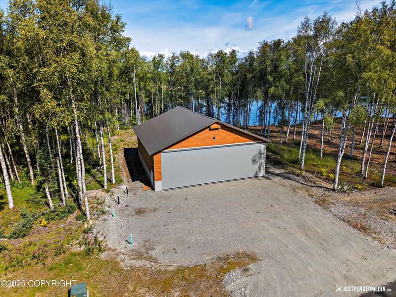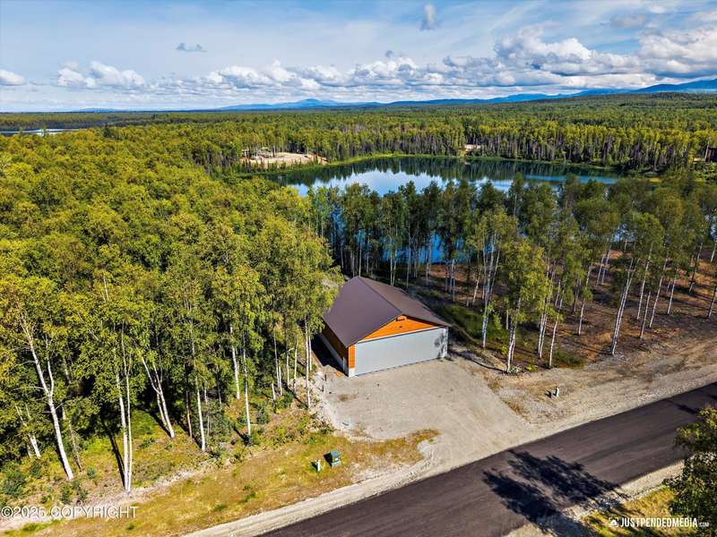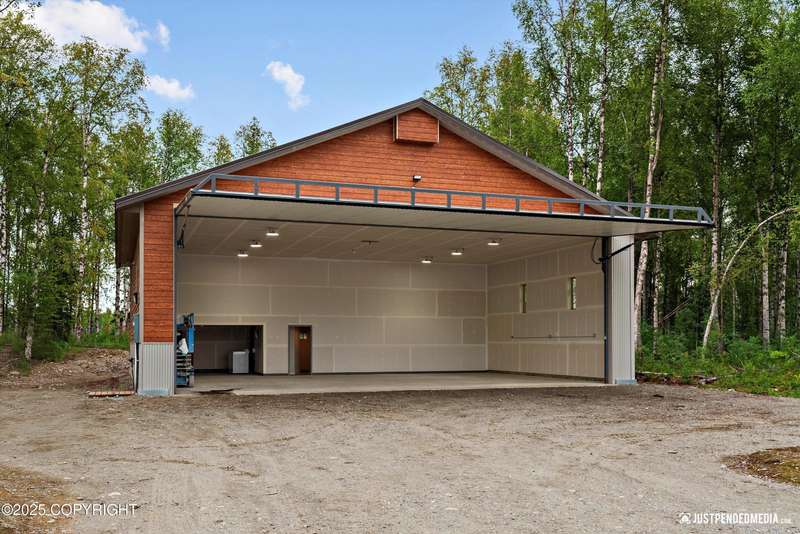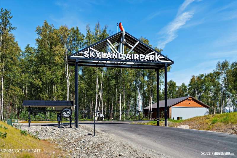 IMAGINE waking up each day surrounded by birch trees & open skies, where your hangar opens to a private runway & your backyard extends to a glimmering lakefront. Whether you're flying out for the weekend or watching the sunrise from your deck, this is Alaska living redefined. Tucked within the Skyland Airpark, this unique retreat blends the freedom of flight with the beauty of nature. SEE MORE... It's not just a home - it's a sanctuary for pilots, creatives, adventurers, and anyone who dreams of living life just a little differently. From the soaring ceilings of your hangar to the future potential of your custom living space, every inch of this property was designed for both function and inspiration. Step inside and you'll find a striking 50' x 50' structure that holds both a spacious hangar and thoughtfully designed home, positioned to capture light and landscape. The hangar, with its dramatic two story ceilings and 44' x 16' Hydra-Lift door, is perfect for storing planes, vehicles, toys, or transforming into the workshop of your dreams. Outside, the natural setting takes center stage. Spend your mornings exploring the roads of the airpark, afternoons on the lake, and evenings stargazing without a city light in sight. If you're dreaming even bigger - additional lots are available and build-to-suit options make it easy to create the exact getaway or year-round home you've envisioned. LOCATION HIGHLIGHTS: - Direct airstrip access with taxiways connecting to most lots - Waterfront setting, plus nearby lakes and winding creeks - Secure, gated aviation neighborhood with paved roads, and outdoor gathering spaces - Outdoor recreation in every season: fish, hike, snowmachine, ice skate, and explore nearby public lands - Well-managed HOA with covenants that protect the long-term vision and value of the community HANGAR HIGHLIGHTS: - 1,964 sq ft hangar/garage with two-story ceilings - 44' x 16' Hydra-Lift hangar door with 15'5" clearance - 1-hour fire-rated wall between hangar and home - Built to last with finished 5" reinforced concrete slab, stem wall footings, and perimeter wall foundation - Standing seam 26-gauge metal roof with 2' overhangs - Pre-finished Smart Lap siding with corrugated metal wainscot exterior - Insulated metal panels on hangar door - 4,000 lb aircraft lifting point and winch to pull aircraft into hangar HOME HIGHLIGHTS: - 1,336 sq ft of thoughtfully designed living space - Crisp white interior walls - Modern LVP flooring - Butcher block counters and stainless steel appliances - Large private deck overlooking the lake