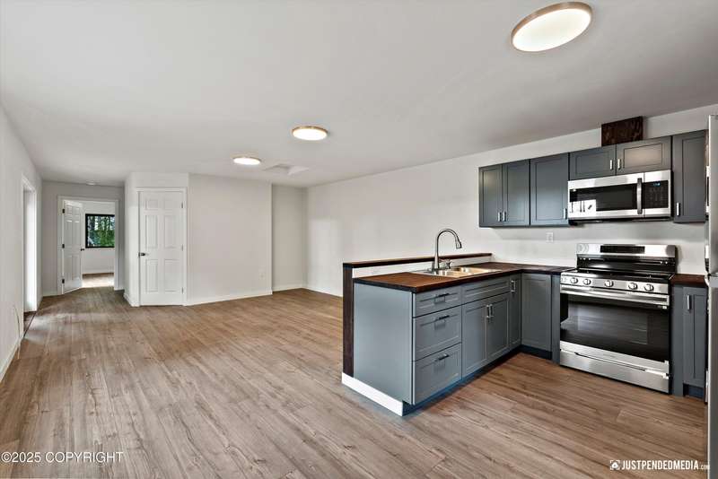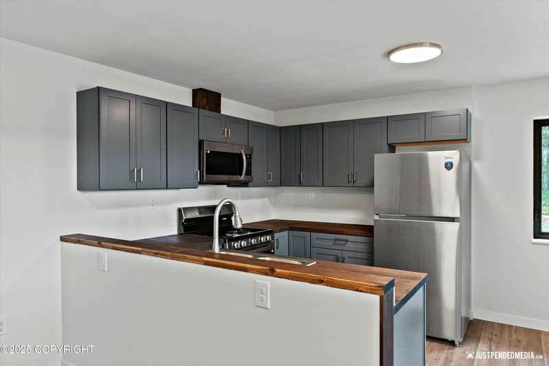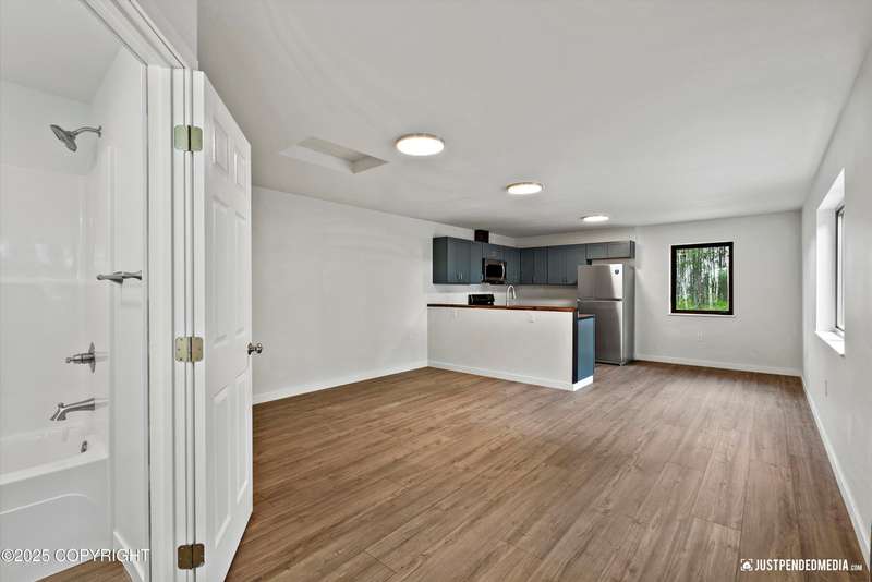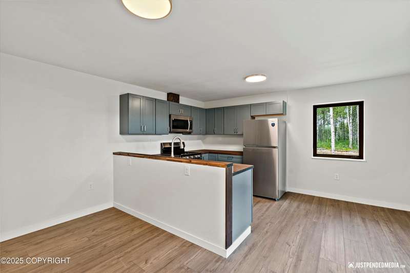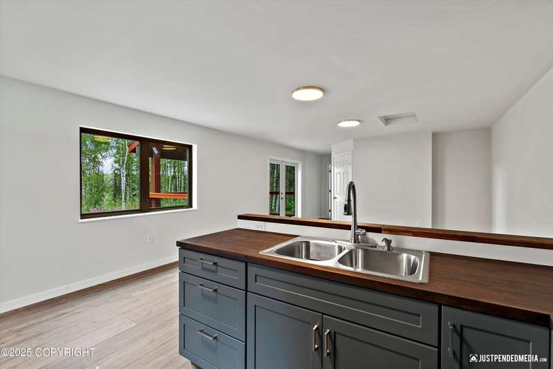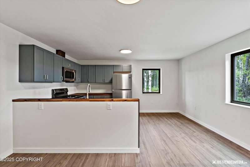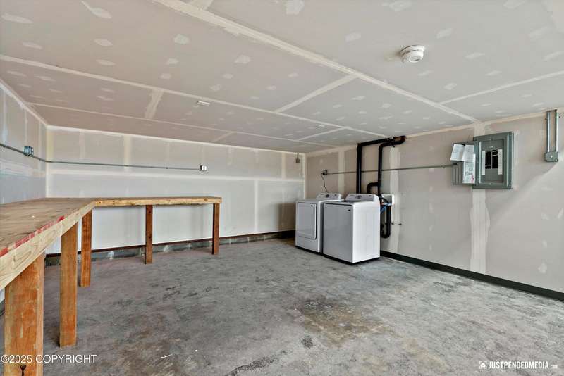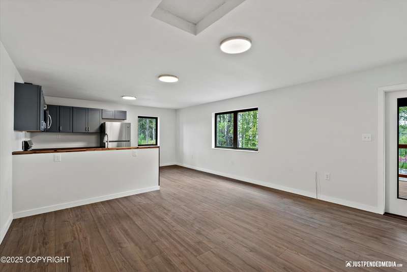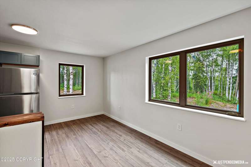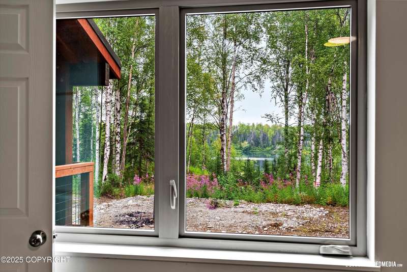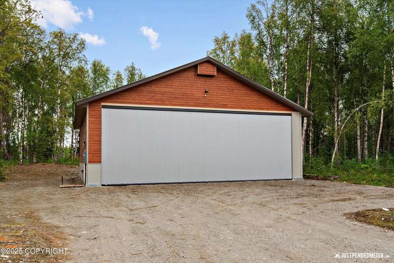 IMAGINE waking up each day surrounded by birch trees & open skies, where your hangar opens to a private runway & your backyard extends to a glimmering lakefront. Whether you're flying out for the weekend or watching the sunrise from your deck, this is Alaska living redefined. Tucked within the Skyland Airpark, this unique retreat blends the freedom of flight with the beauty of nature. SEE MORE... It's not just a home - it's a sanctuary for pilots, creatives, adventurers, and anyone who dreams of living life just a little differently. From the soaring ceilings of your hangar to the future potential of your custom living space, every inch of this property was designed for both function and inspiration. Step inside and you'll find a striking 50' x 50' structure that holds both a spacious hangar and thoughtfully designed home, positioned to capture light and landscape. The hangar, with its dramatic two story ceilings and 44' x 16' Hydra-Lift door, is perfect for storing planes, vehicles, toys, or transforming into the workshop of your dreams. Outside, the natural setting takes center stage. Spend your mornings exploring the roads of the airpark, afternoons on the lake, and evenings stargazing without a city light in sight. If you're dreaming even bigger - additional lots are available and build-to-suit options make it easy to create the exact getaway or year-round home you've envisioned. LOCATION HIGHLIGHTS: - Direct airstrip access with taxiways connecting to most lots - Waterfront setting, plus nearby lakes and winding creeks - Secure, gated aviation neighborhood with paved roads, and outdoor gathering spaces - Outdoor recreation in every season: fish, hike, snowmachine, ice skate, and explore nearby public lands - Well-managed HOA with covenants that protect the long-term vision and value of the community HANGAR HIGHLIGHTS: - 1,964 sq ft hangar/garage with two-story ceilings - 44' x 16' Hydra-Lift hangar door with 15'5" clearance - 1-hour fire-rated wall between hangar and home - Built to last with finished 5" reinforced concrete slab, stem wall footings, and perimeter wall foundation - Standing seam 26-gauge metal roof with 2' overhangs - Pre-finished Smart Lap siding with corrugated metal wainscot exterior - Insulated metal panels on hangar door - 4,000 lb aircraft lifting point and winch to pull aircraft into hangar HOME HIGHLIGHTS: - 1,336 sq ft of thoughtfully designed living space - Crisp white interior walls - Modern LVP flooring - Butcher block counters and stainless steel appliances - Large private deck overlooking the lake