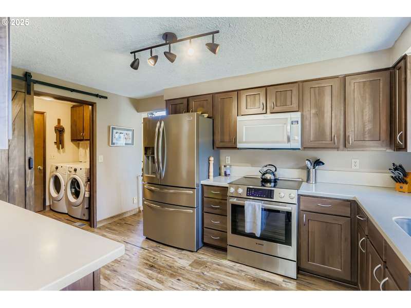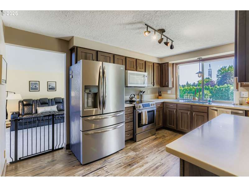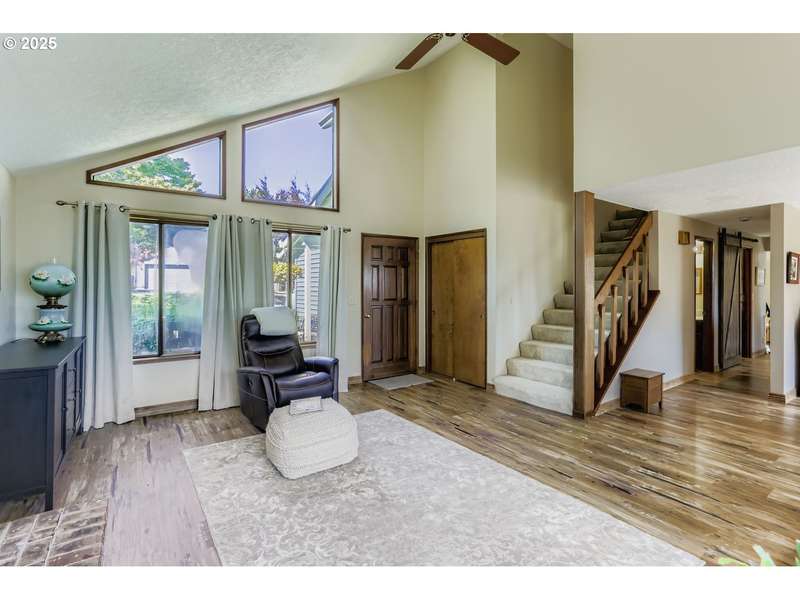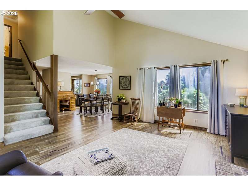 You will love this sought after neighborhood with large lots and a cul-de-sac location! This property backs to where there are no homes behind you! Step in to this home with soaring vaulted entry and Vaulted living room with a brick alcove for future woodstove. Lots of natural light through-out the home! Gorgeous remodeled kitchen with newer cabinets, hard surface counter tops, laminate flooring, and Stainless steel appliances. Large vaulted family room off the kitchen with sliding glass door to large deck. Newer laminate flooring on the main level. Dining room with a slider to a deck as well! Nice size primary suite with a cute bathroom and a balcony over looking the beautiful private back yard. New high efficient gas furnace, A/C and a tankless gas water heater installed 3 years ago! Interior has been re-painted recently. Newer vinyl windows and slider upstairs. Possibly room for RV on left side of the house if shed was moved??