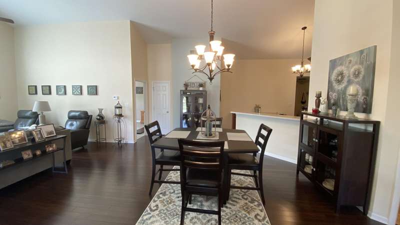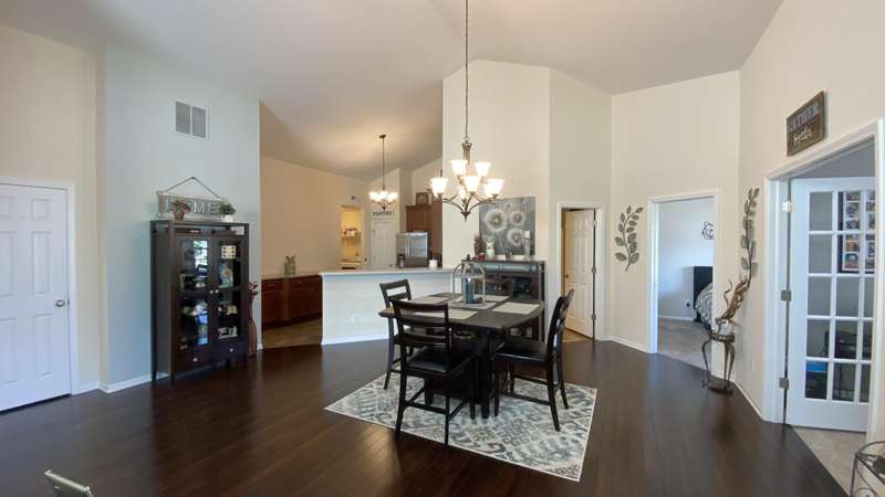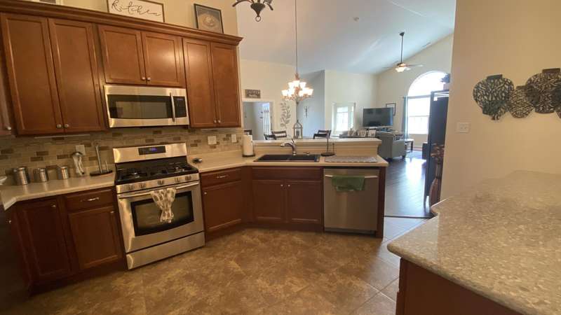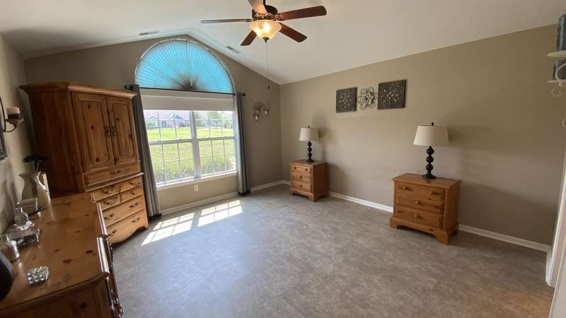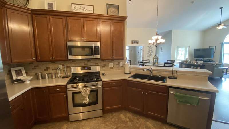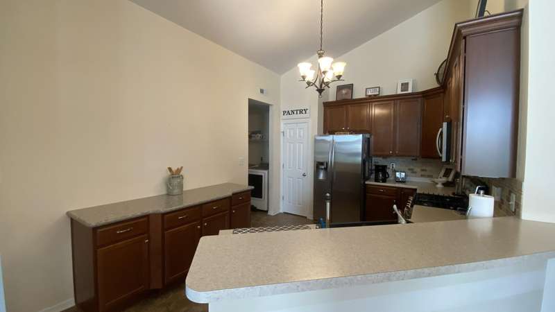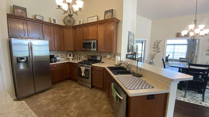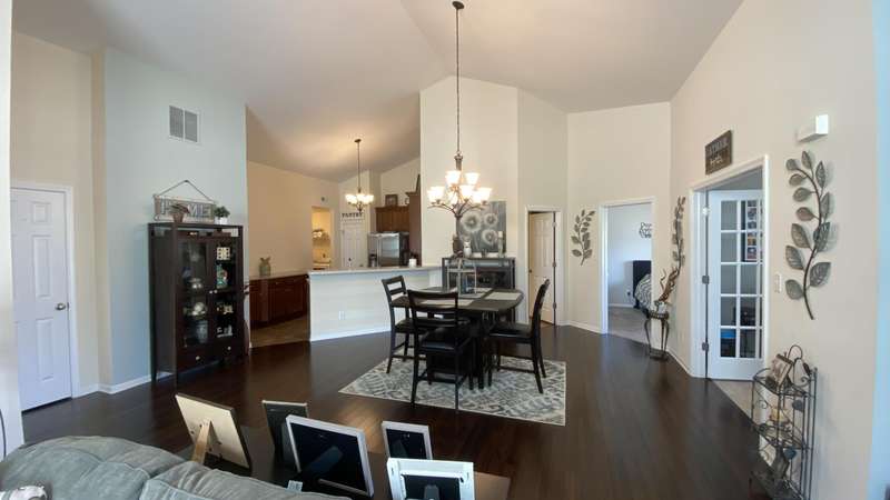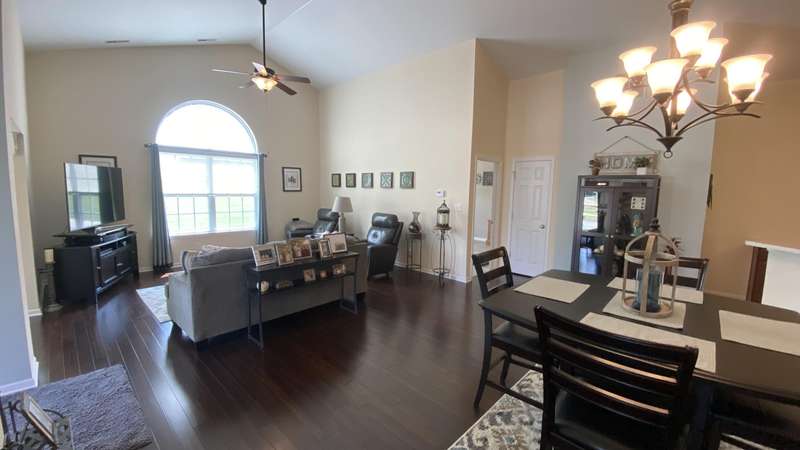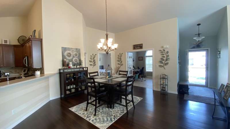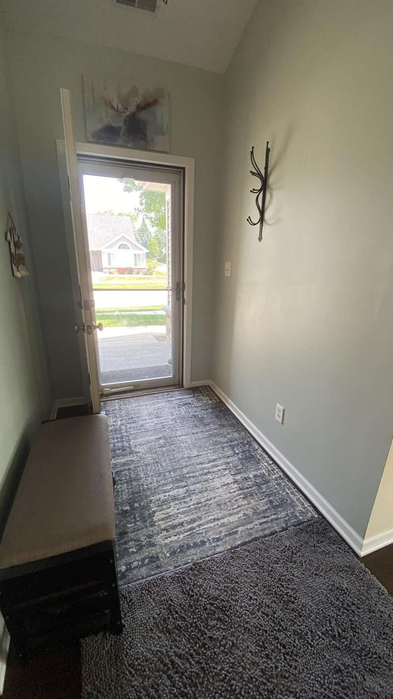 Welcome home! Ranch style villa in 4 plex building with 2 bedrooms, 2 bathrooms, an office, and a Sunroom! Plus a two car garage and private entrance. Once inside you will be dazzled! Soaring ceilings and wide open concept allow for free flow traffic from room to room. Bright and airy living room, dining room and kitchen flow together. The kitchen features tall cabinets, breakfast island, pantry, bonus buffet cabinet- perfect for coffee or wine bar ! A mudroom/laundry room with laundry tub and shelving that leads from the garage (with pull down attic stairs for more storage) The office has French doors offering privacy or can be converted to use as 3rd bedroom. The bright sunroom has 1/2 circle windows and walls of windows! The Main Bedroom has ensuite bath and walk in closet., plus a 2nd bedroom! Easy maintenance free living with landscaping, lawn care, and snow removal included in HOA fee! Located in a well established community complete with beautiful tree lined heavily landscaped entrance, sitting park, tot park, and ponds and sought after Crown Point schools. Water heater is only 1 year old an a new microwave was just installed.