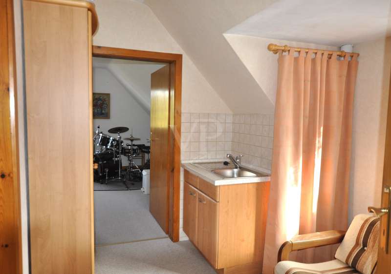 This detached single-family home in Niedernhausen-Königshofen impresses with its solid construction, well-kept condition and great design potential. Whether for couples, small families or talented people who want to realize their dream home themselves - here you can develop your ideas and design your home according to your own ideas. The solidly built house offers a well thought-out room layout and a wide range of possible uses over two floors. On the first floor there is a cozy eat-in kitchen, a bright living room, a bedroom, toilet and shower. The upper floor offers two further rooms, a hallway (water connection/pipes available for possible bathroom extension) and a practical storage room. The large cellar with several rooms is ideal for handymen, DIY enthusiasts and as storage space. The terrace directly adjacent to the house offers a view of the greenery and invites you to relax outdoors, the small, easy-care garden - perfect for cozy hours. The house is in a well-kept but outdated condition. The basic structure is solid, so that renovation and modernization measures can be implemented according to individual taste. The neighboring property with a residential building is also for sale. This presents an exciting opportunity to acquire both properties together - whether as a multi-generational solution, for renting out or for alternative living and usage concepts. Please contact us for further information. Conclusion A charming house with lots of potential, ideal for anyone who enjoys designing and values a solid building structure. Here you can create a cozy home with craftsmanship and creativity.