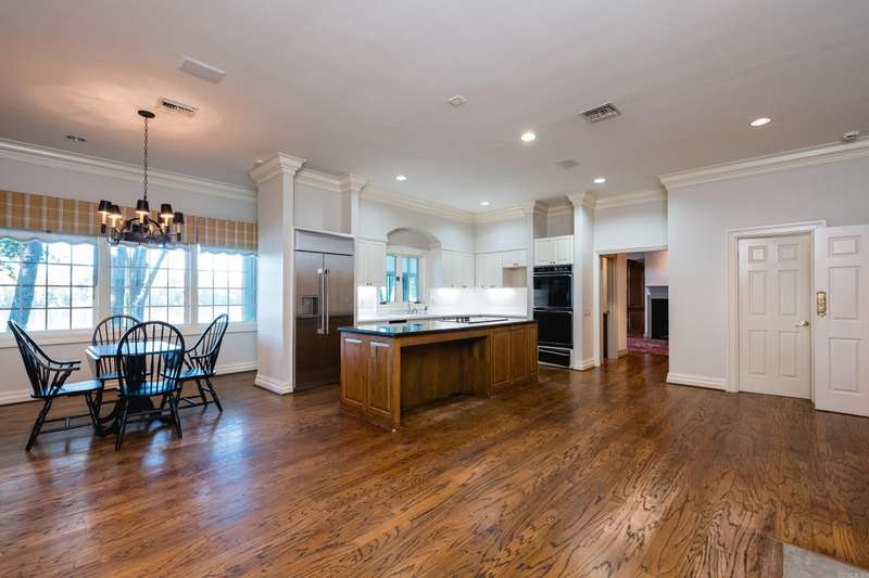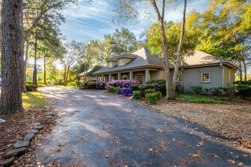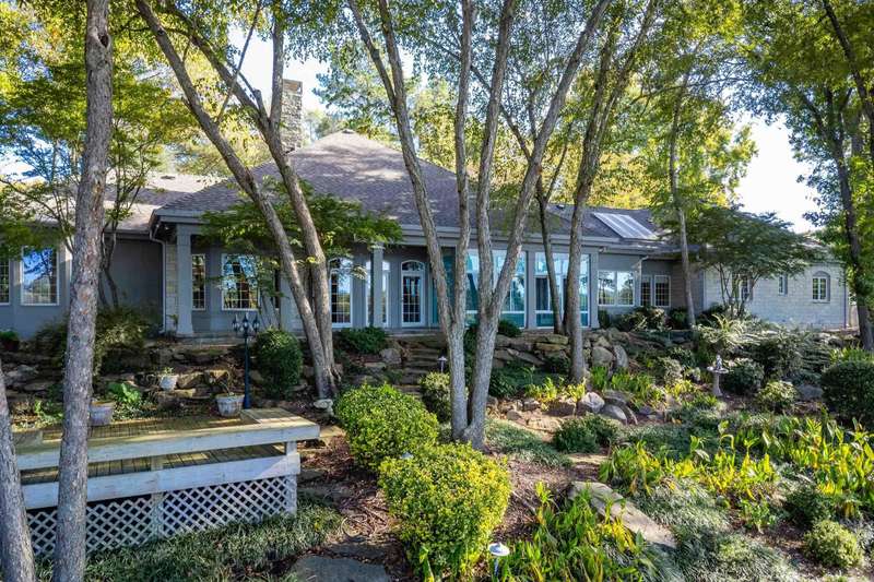 Stunning & special property on the Arkansas River! This home was beautifully built with a limestone front & showcases great views of the water from most every room. The property is expansively spread over 3 lots - over 1/2 an acre of lush landscaping, flagstone walkways & nature all around. Everything is on one level & the rooms are generously sized & well balanced. Inside features pretty hardwoods, high ceilings, tasteful archways making it the best home for entertaining friends & family. Plenty of room to park on the circular & side driveways. This home also offers privacy & the location is tucked away, very quiet. Check out the extremely large kitchen with limestone hearth area w/ granite & Corian counters & lots of natural light. The primary suite is apart with TWO bathrooms, one has its own sitting area overlooking the river. Off the kitchen are 2 bonus spaces that would make great office/craft/hobby areas & the laundry room is large. The separate hot tub house is approx 268 Sq Ft, hot tub not warranted. Large garage space plus workshop area. The roof, leaf guard gutters & exterior paint were done in the past year. 3 zones HVAC system. Agents see remarks!