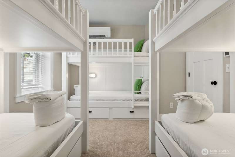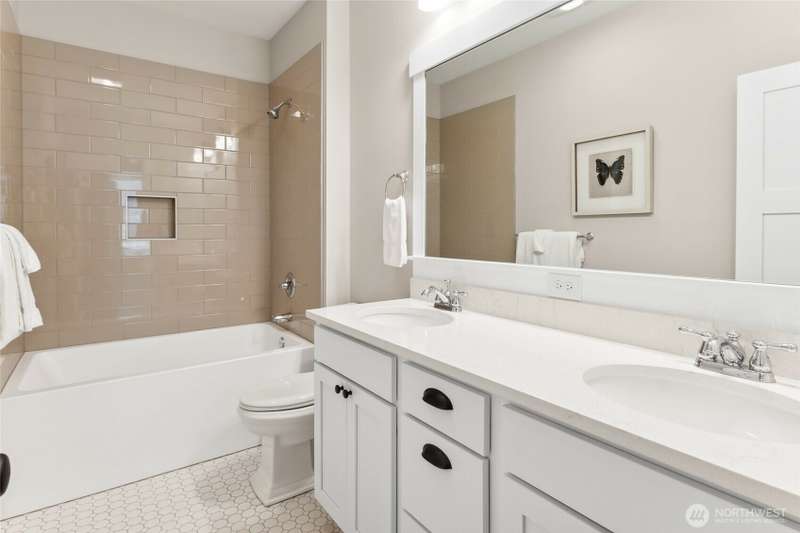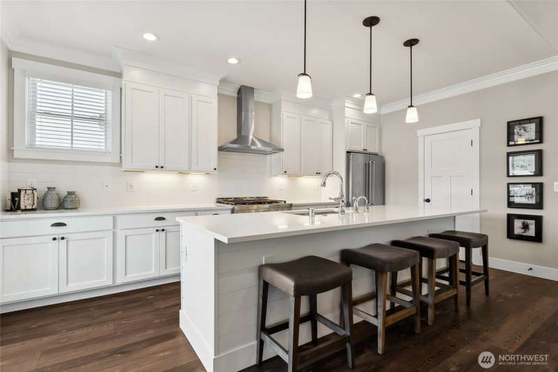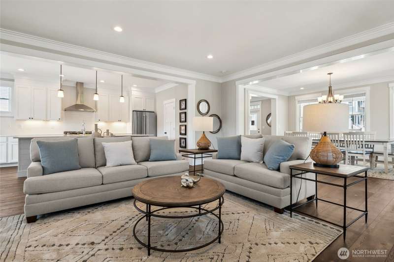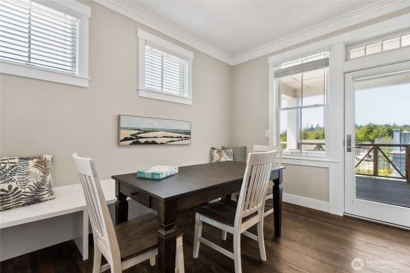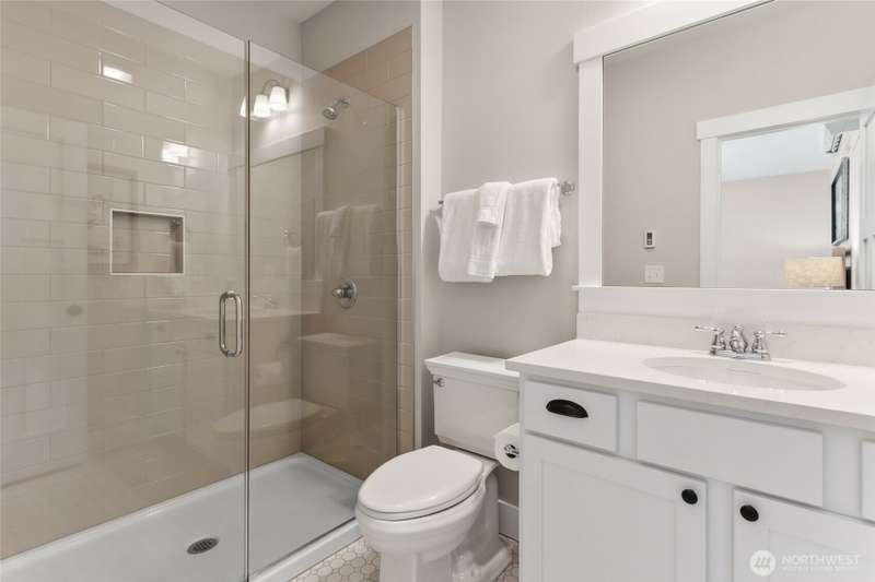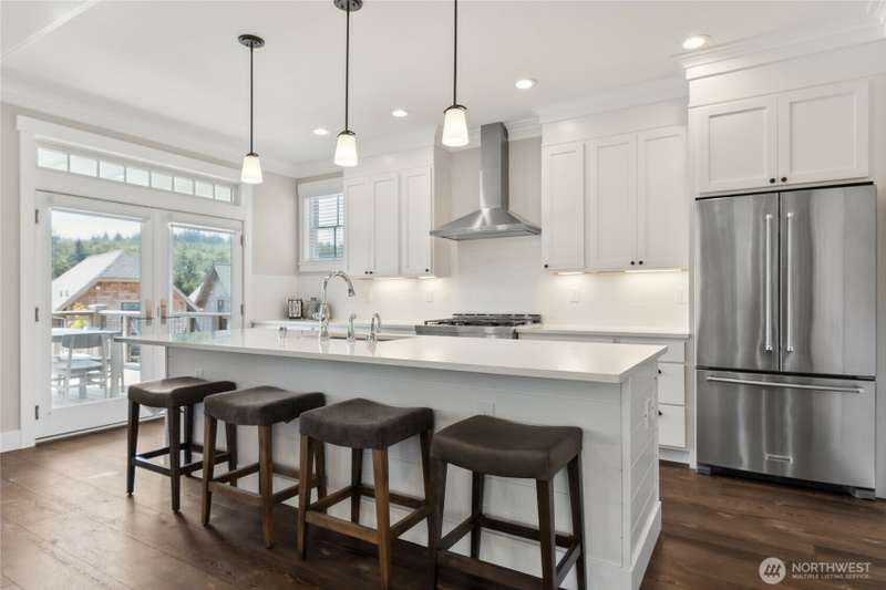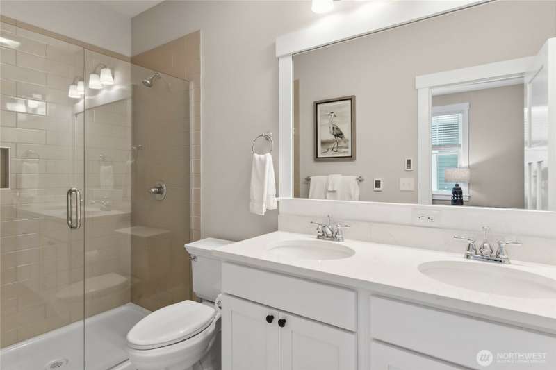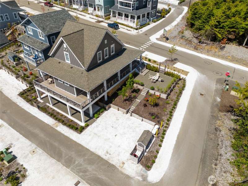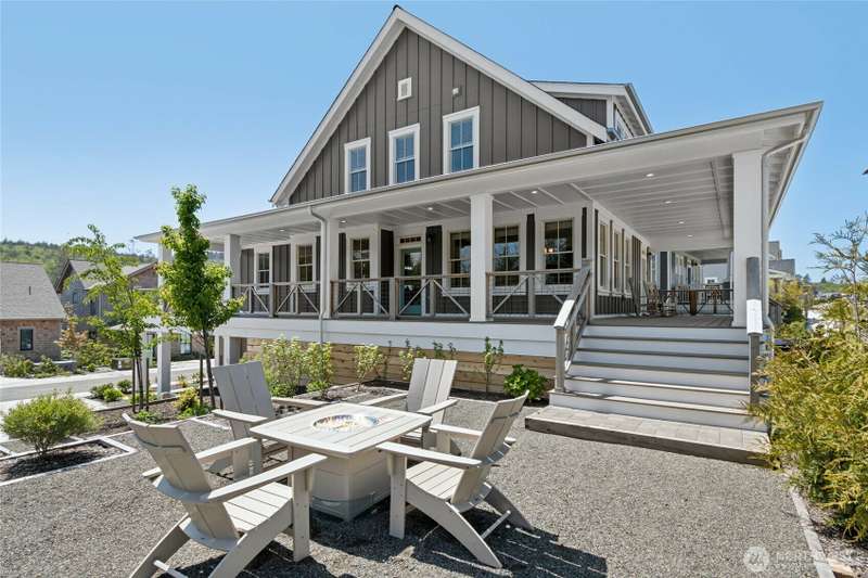 MOVE-IN-READY. Located on a large corner lot, the Laurelhurst offers ample outdoor space while staying close to town amenities. Be welcomed inside from the wraparound porch to the spacious dining area, living room and kitchen. Ascend the stairs to the primary bedroom and ensuite bathroom, followed by the two guest bedrooms with an ensuite bathroom and bunkroom to complete the space. Enjoy fresh air, rain or shine from the lower-level covered patio.