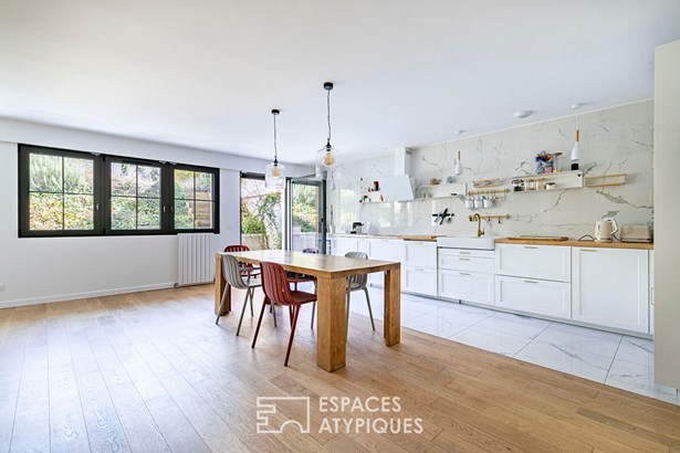 Close to the city center and just a 5-minute walk from the Paul Vaillant-Couturier metro station (Line 7), this house by a visionary bio-climatic architect developing around 207m2 of living space is built on a 180m2 plot.