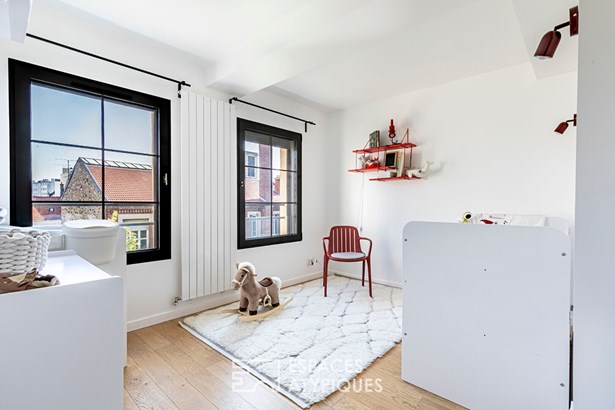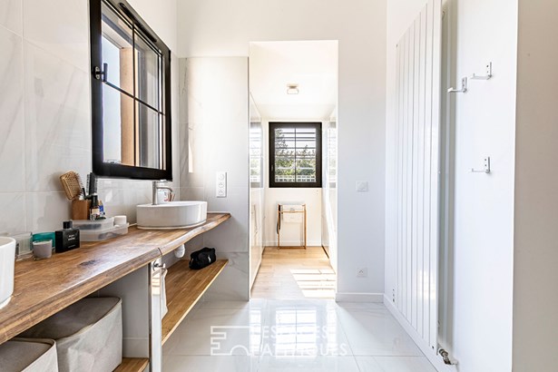 On the 2nd and last floor, the vast master suite of 16m2 with a dressing room, a bathroom and a toilet room offers an unobstructed view of the surrounding green spaces and has a fitted terrace facing south-west. This bright place out of time is conducive to reading and rest.