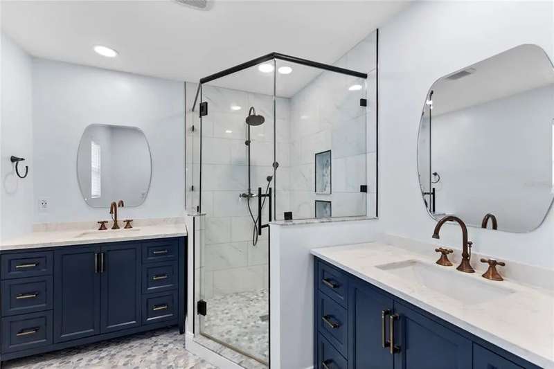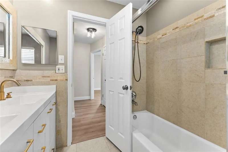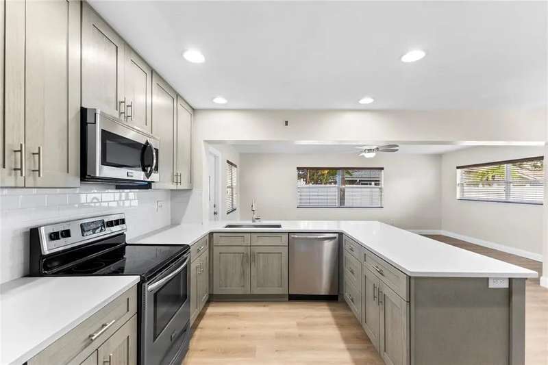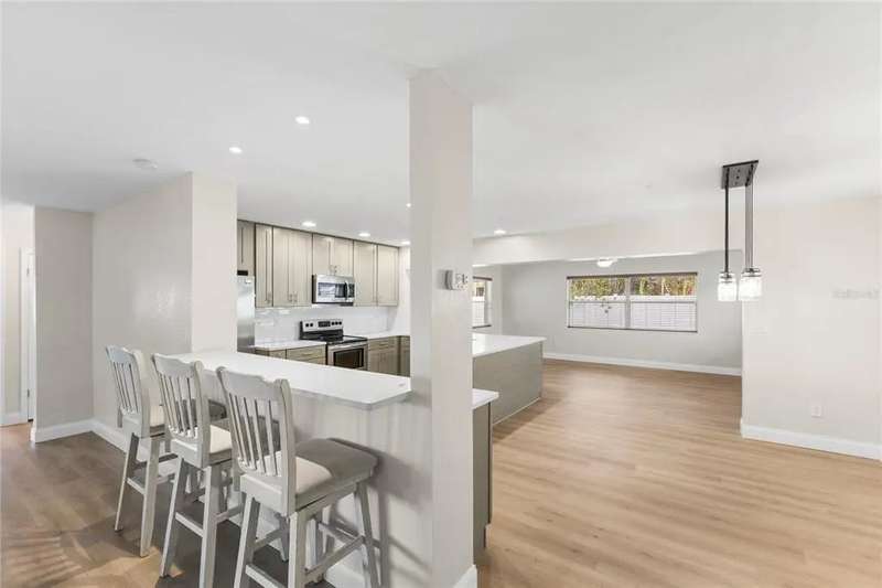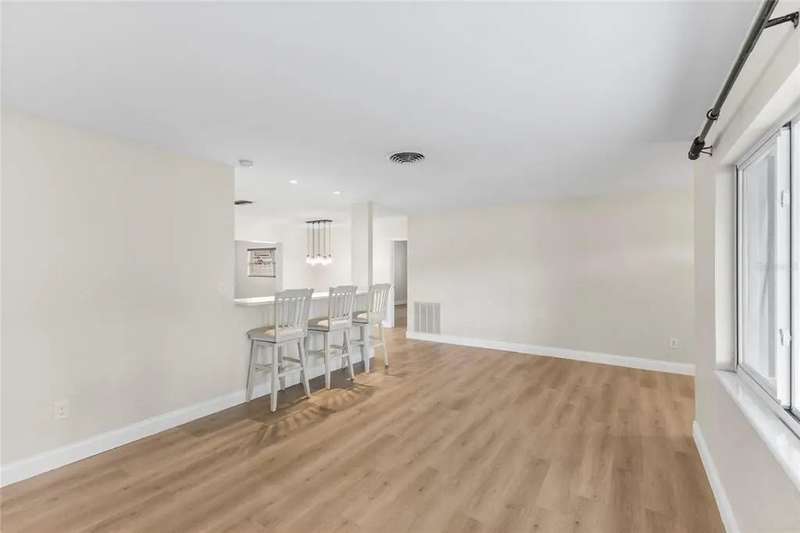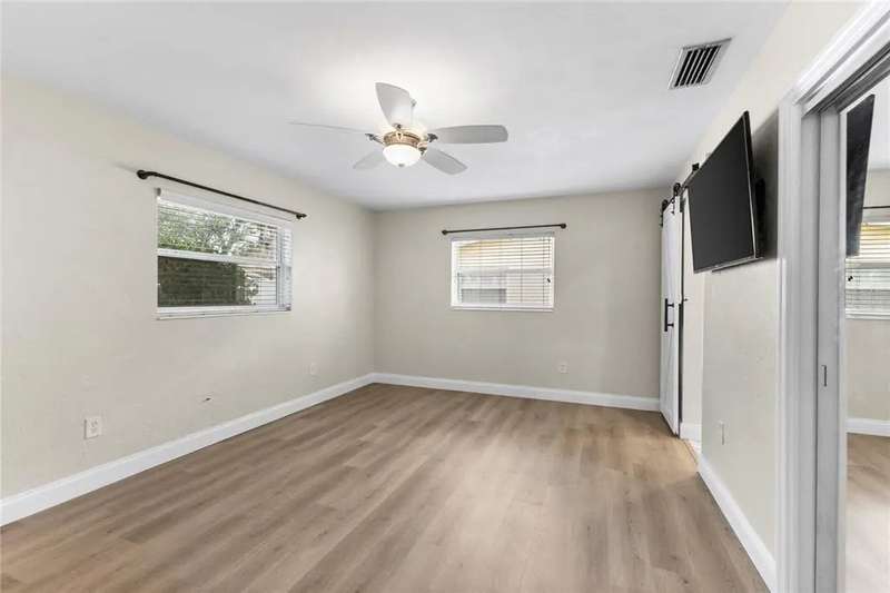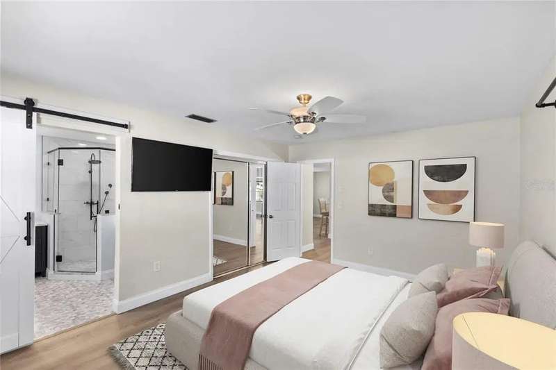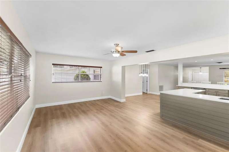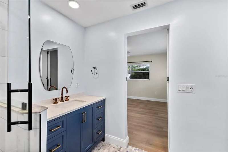 One or more photo(s) has been virtually staged. Located under the canopy shade of a majestic oak in the highly desirable neighborhood of Patrician Point, this beautifully updated 1960s block ranch combines timeless charm with modern living. Just minutes from downtown St. Pete and popular spots like Crisp Park, Trader Joe’s, Whole Foods, and the waterfront shops & restaurants of popular Beach Drive & Central Ave, this home offers both convenience and lifestyle. Inside, you're welcomed by brand new white oak luxury vinyl plank flooring that flows seamlessly throughout the entire home. The open concept layout is perfect for entertaining, centered around a chef-inspired kitchen featuring quartz countertops, coastal shaker cabinetry, a subway tile backsplash, breakfast bar with built in beverage fridge and abundant storage. The smart split bedroom floor plan provides privacy and comfort with a spacious primary suite featuring a fully renovated en-suite bath complete with dual marble-topped vanities, a walk-in tiled shower and glass enclosure. Step outside to enjoy true Florida living in the large fenced backyard with new PVC fencing, a covered patio ideal for BBQs, room for a pool and space for pets or little ones to play. Additional upgrades include a tankless gas water heater (2019) and attic insulation (2019) for improved energy efficiency. Located in a non-HOA, golf-cart-friendly community, this move-in-ready home is perfect for those seeking the ultimate St Pete lifestyle. Don’t miss your chance to own a piece of St. Petersburg paradise!