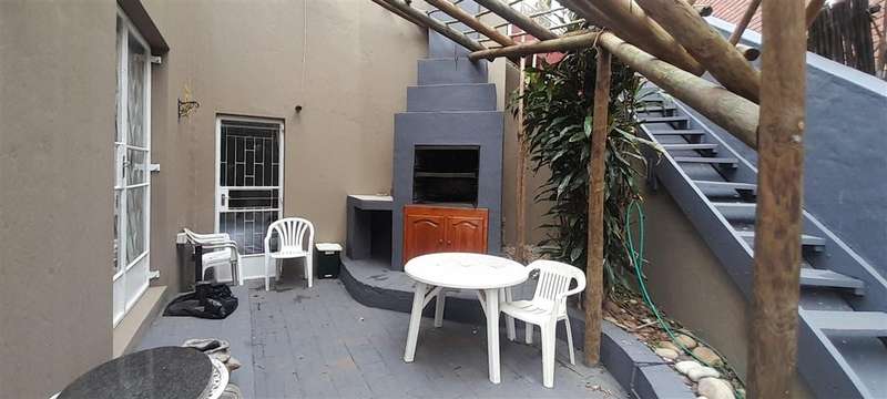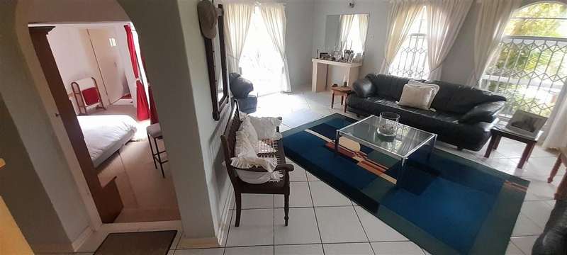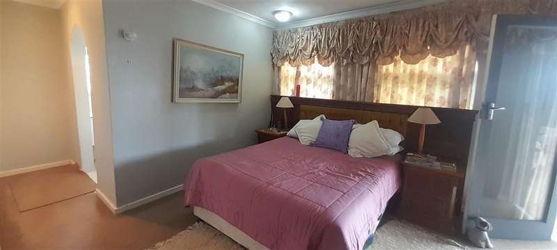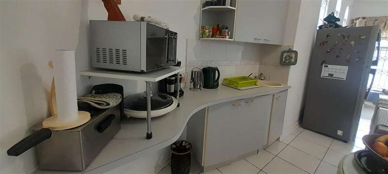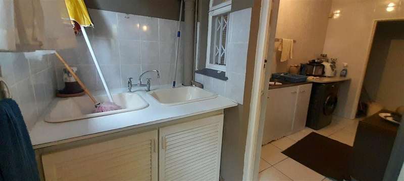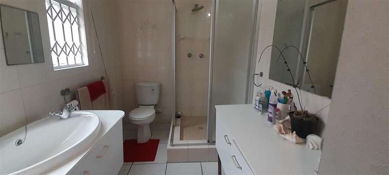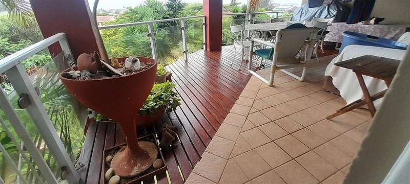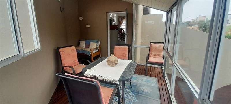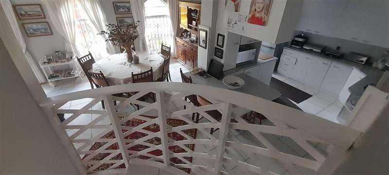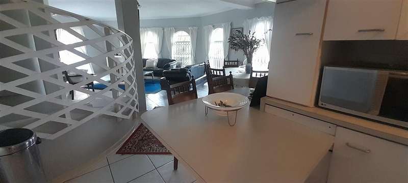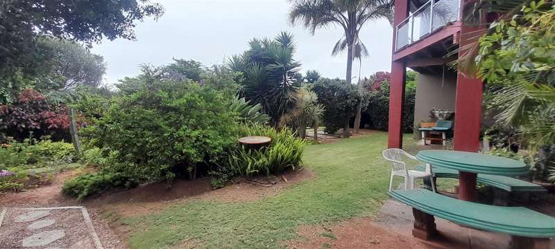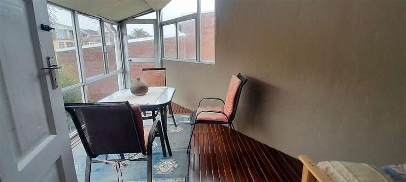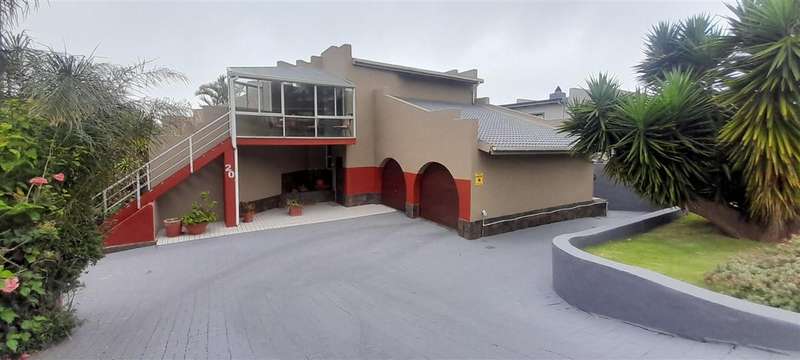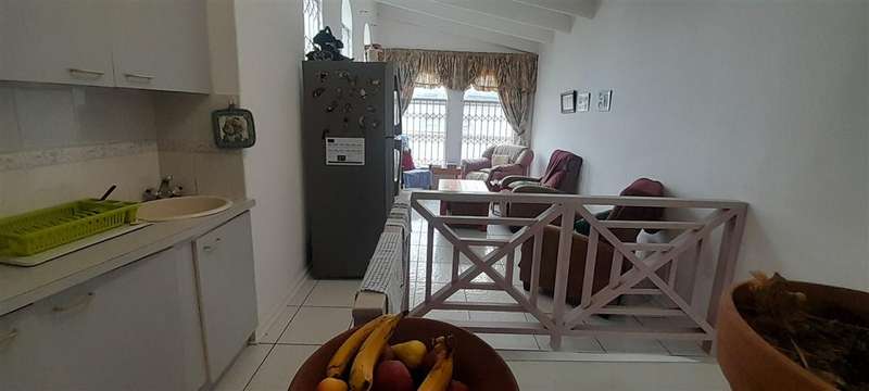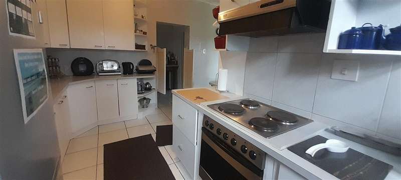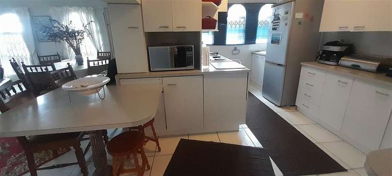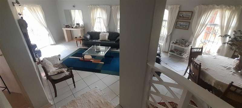 This 3 tiered family home is situated on a wide green belt and is well within walking distance to the sea. The main house is downstairs from the entrance hall. Big open plan lounge / dining room and kitchen. The kitchen has a separate scullery / laundry with wash troughs just before the back door. The guest bedroom with toilet is also on this floor. Doors from these rooms lead out into the garden. The middle section, also accessed from the entrance hall, has the main bedroom with en-suite bathroom, 2 family bedrooms and family bathroom. The main and front bedrooms have doors opening onto the wide covered balcony. The top floor has the glassed in patio and casual lounge with counter for preparing food and drinks. Stairs leading outside from the patio go to the garden with built in braai. The garden is lovely and the trees and shrubs provide privacy from the green area. Double garage with 1 on remote. Solid home that is move in ready but can in time be modernised.