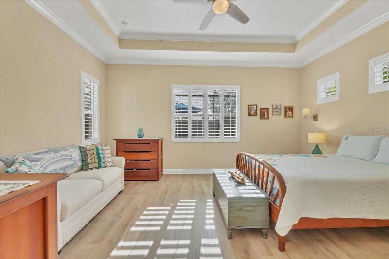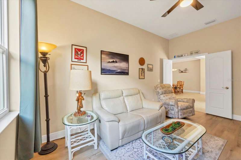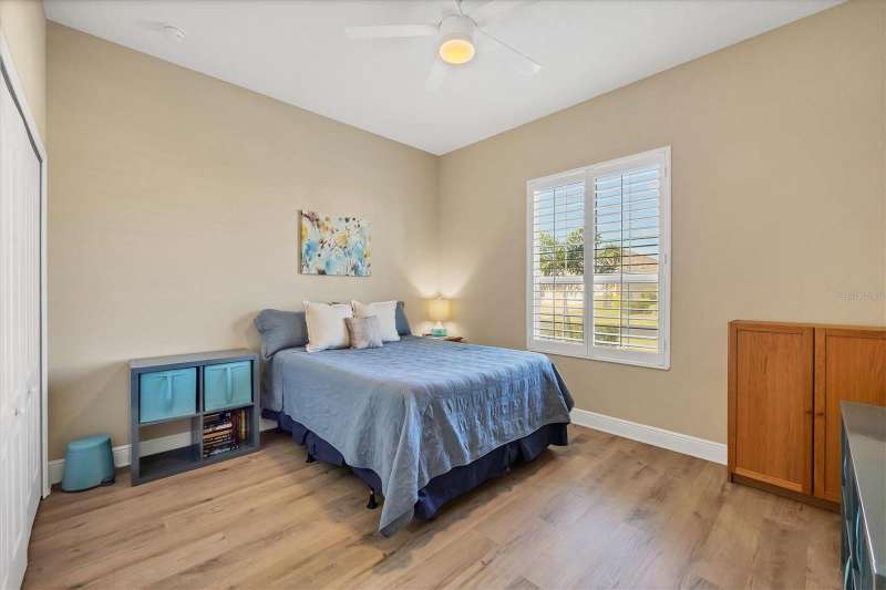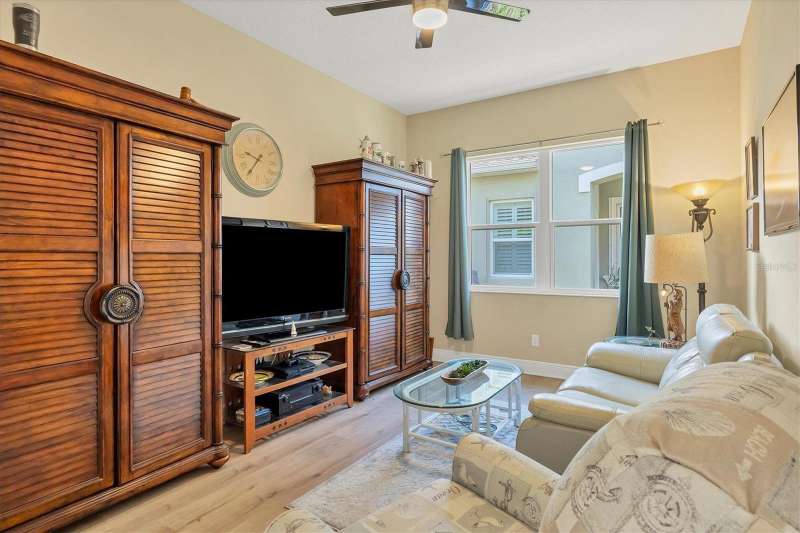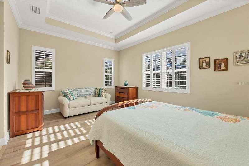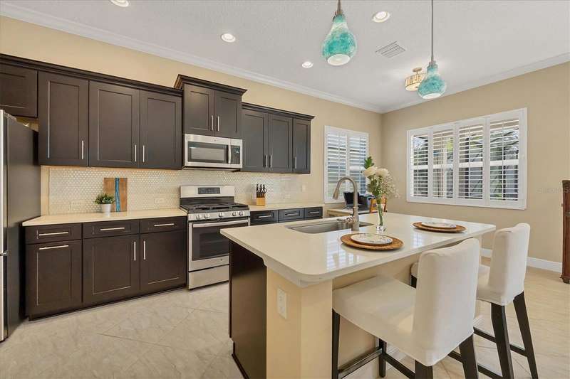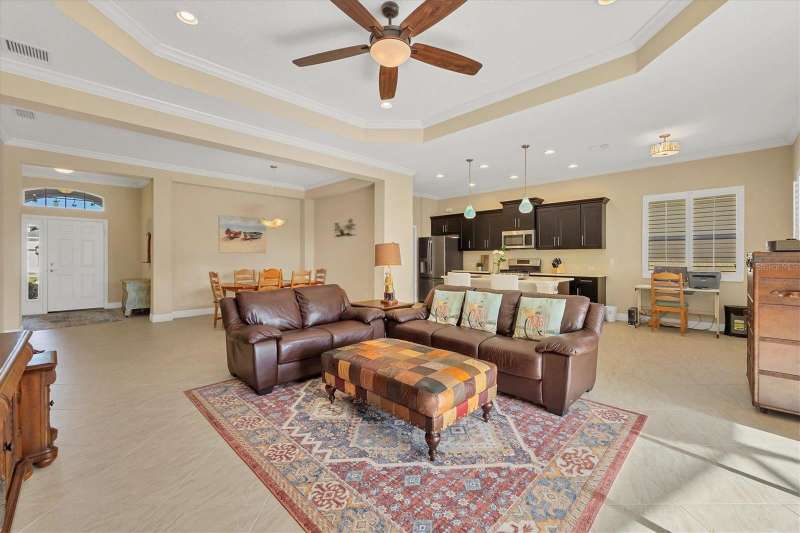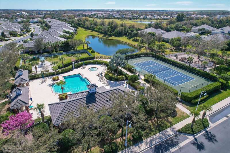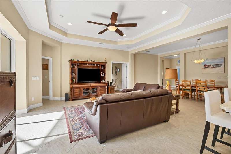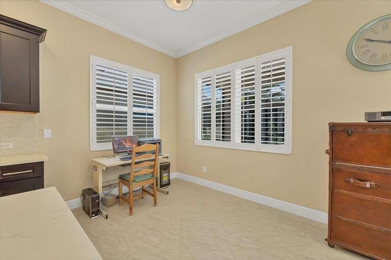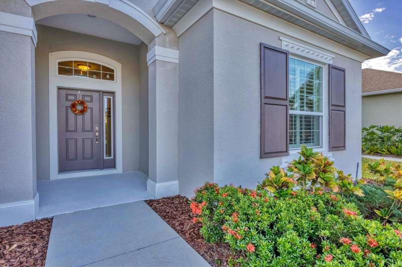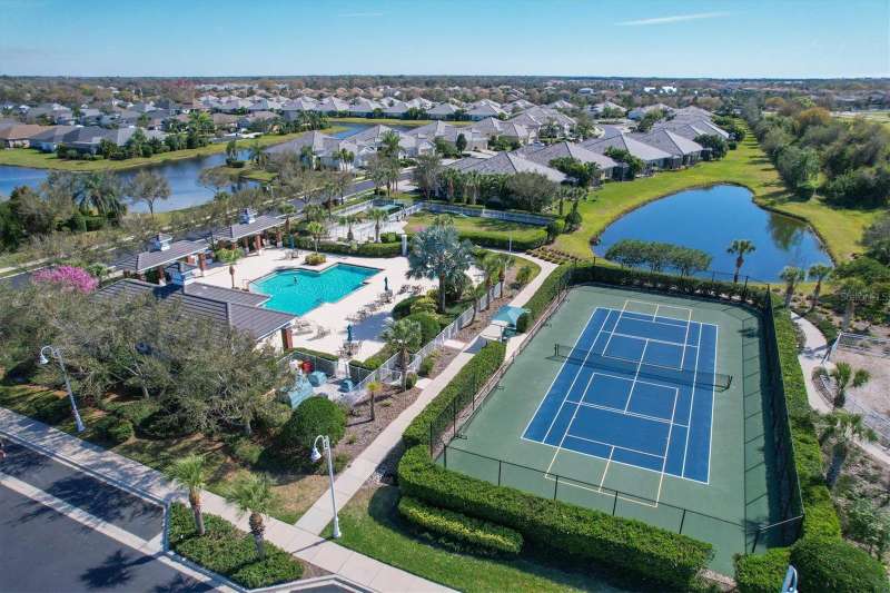 Welcome to the gated, maintenance-free community of Eagle Trace. This three bedroom, two bathroom pool home features a den, open floor plan and 10 foot ceillings framed by crown molding. The great room floor plan is perfect for entertaining or family gatherings with a separate dining room and large family room all open to the kitchen. The kitchen boasts quartz countertops, stainless steel appliances, a gas stove, a breakfast area, large pantry and cabinets with pull out drawers. The triple pocketing sliding doors in the family room frame your extended paver patio and sparkling, heated, salt water pool as well as your large private backyard. The flex room located off the family room can be used as a home office, den or, with the addition of a closet, a fourth bedroom. The primary bedroom is a private and relaxing retreat with coffered ceilings, two large closets, with custom built ins, and an en-suite bath making it the perfect place relax at the end of the day. The primary bathroom offers a zero entry shower, dual sinks and soaking tub. Two other bedrooms are located toward the front of the home on opposite sides of the hallway with a guest bath located conveniently between. An indoor laundry room, extended insulated garage, radiant barrier, smart house lighting, gas plumbed area on patio for ourdoor kitchen and extra attic space for storage are some of the many additional upgrades. This home also has over three years remaining on the structural and AC waranties. The community amenities include tennis/pickle ball courts, restort-style community pool and spa with covered sitting and grill area for gatherings, two dog parks and a playground. Located in an A rated school district and close to all the conveniences of Lakewood Ranch with no CDD fees this home is the perfect place to call home!
