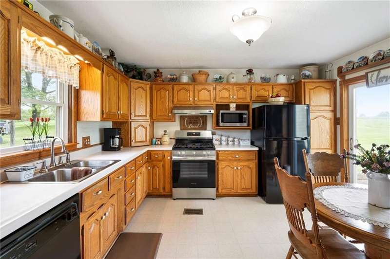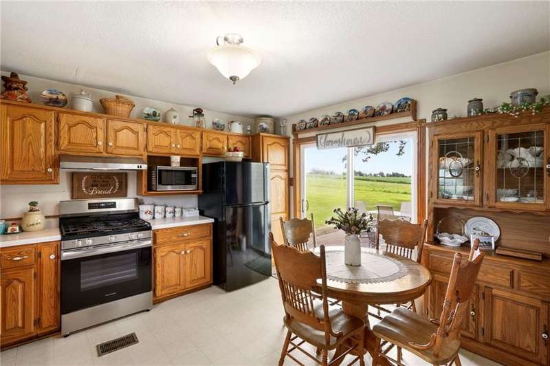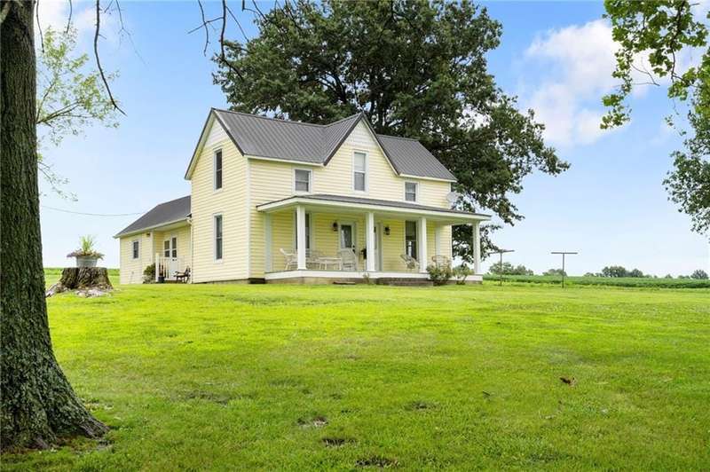 Welcome to your peaceful country retreat! This charming 3 bedroom 1 bathroom farmhouse sits on 7 beautiful acres, offering the perfect blend of open space and timeless character. Enjoy mornings on the inviting front porch or relax on the spacious back patio overlooking your private backyard. Inside you'll find the warm beauty of original farmhouse woodwork and beautiful wood beadboard ceilings all this history in each room. The newer style windows add so much natural light, making the home feel bright and welcoming. Outside you'll love the old rustic barns, perfect for storage, hobby farming or creating your dream workshop. With open pasture and mature trees, there is plenty of space for gardening, animals, or simply enjoying the peaceful views. Don't miss the opportunity to own this classic farmhouse on acreage, call today to schedule your appointment to see this home.