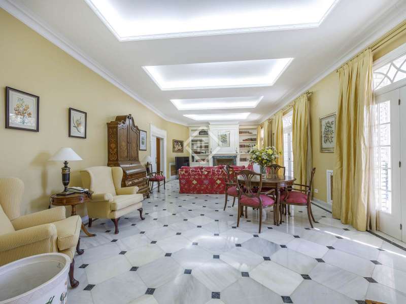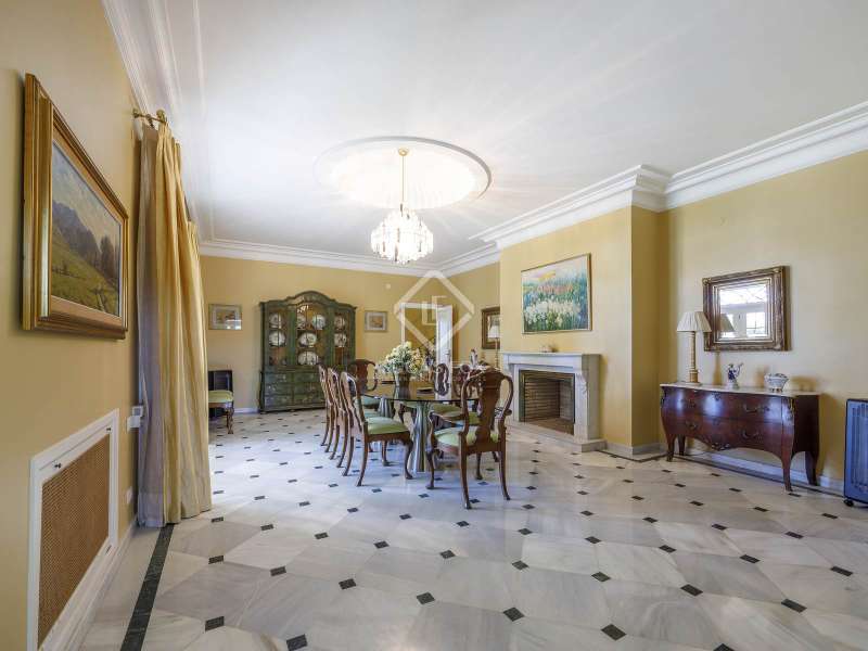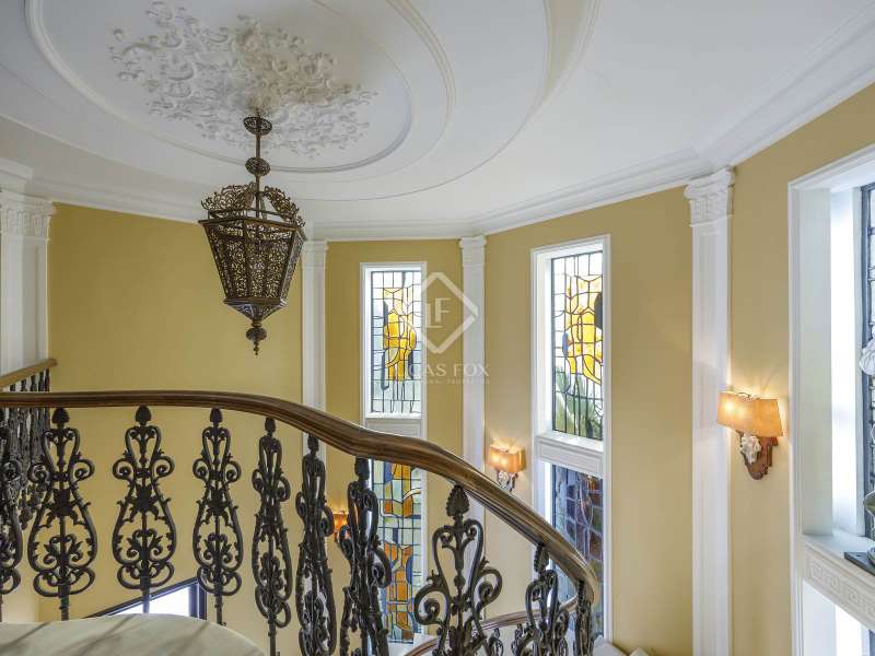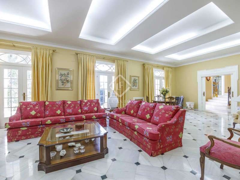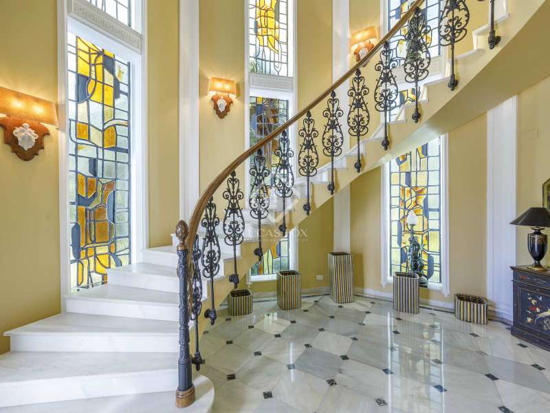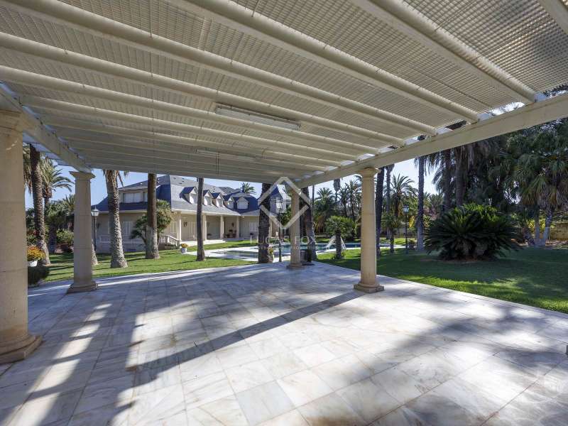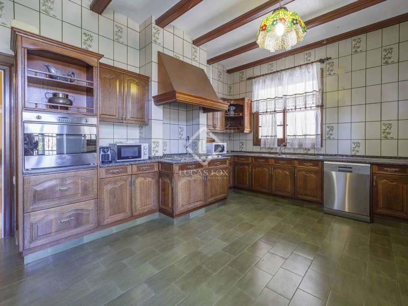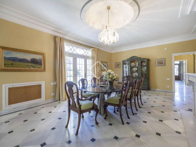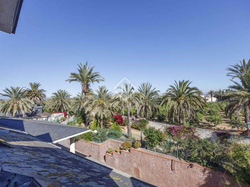 Lucas Fox presents this luxurious house with a high construction quality and a careful selection of materials for sale in La Eliana. The exclusive villa stands out for being located on a plot of almost 40,000m2, surrounded by extensive orange groves and multiple palm trees of different species. It is located in a natural environment, away from the hustle and bustle of the city, but excellently connected and only 25 kilometers from Valencia. In fact, less than a kilometer away, there is a metro station and less than three kilometers away, the towns of La Eliana and Pobla de Vallbona. The house itself has an integrated auxiliary property , of more than 70m2, which also has independent access from the exterior. A private driveway lined with palm trees and greenery that runs through the orange groves leads us to the house. At the entrance, we are welcomed by a spectacular entrance hall with marble floors, high ceilings and stained glass windows with a beautiful staircase that leads us to the upper floor . Access to the main rooms of the house is on the right. Each room is spectacular for its spacious size and the quality of its elements. The layout of the main floor includes a large living room with a fireplace, a dining room also with a fireplace and a lounge with views of the garden and pool. Next is the kitchen with a charming wooden beamed ceiling. It is also well-sized and has a utility room area and access to the exterior, near the barbecue area. Going up the stairs we reach the night area with five large bedrooms with private bathrooms, dressing rooms and fantastic views of the horizon of the orange and palm groves from their windows. On this floor we also have another double bedroom with private bathroom, a twin bedroom and a full bathroom . The ground floor has a large room with a barbecue where you can enjoy parties with friends, a wine cellar, a bathroom and a spacious study-library. This floor connects with the garage, with capacity for more than four vehicles and with several storage rooms and the technical area. All floors of the house are also connected by elevator. The exterior is truly spectacular, offering large spaces and areas with grass, vegetation and palm trees. In addition, it benefits from having two swimming pools, a barbecue area and a giant pergola; all surrounded by the large expanse of orange groves that surround the house. We invite you to arrange a personalized visit to this special property so you can enjoy and appreciate it in every detail.