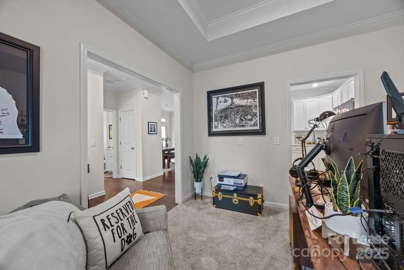 Welcome to this delightful Craftsman-inspired residence, designed with a practical layout that prioritizes ease of living. The covered front porch invites you to relax and enjoy the outdoors, making it a warm and welcoming space for your guests.Step inside to discover a spacious kitchen that effortlessly connects to the living and dining areas?perfect for gatherings and everyday moments alike.This home offers two comfortable bedrooms, thoughtfully designed to meet your needs.Retreat to the primary suite, where you'll find an abundance of space, featuring a walk-in closet, elegant tray ceilings, a double vanity, and a luxurious walk-in shower for your convenience.Additionally, the Flex Room located off the foyer provides versatile options to suit your lifestyle, whether you need a home office, playroom, or creative space. Enjoy the added convenience of a two-car garage , providing ample storage and easy access to your home.Experience the perfect blend of comfort and functionality in this inviting home!