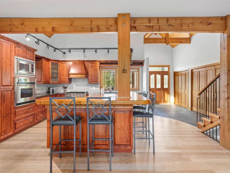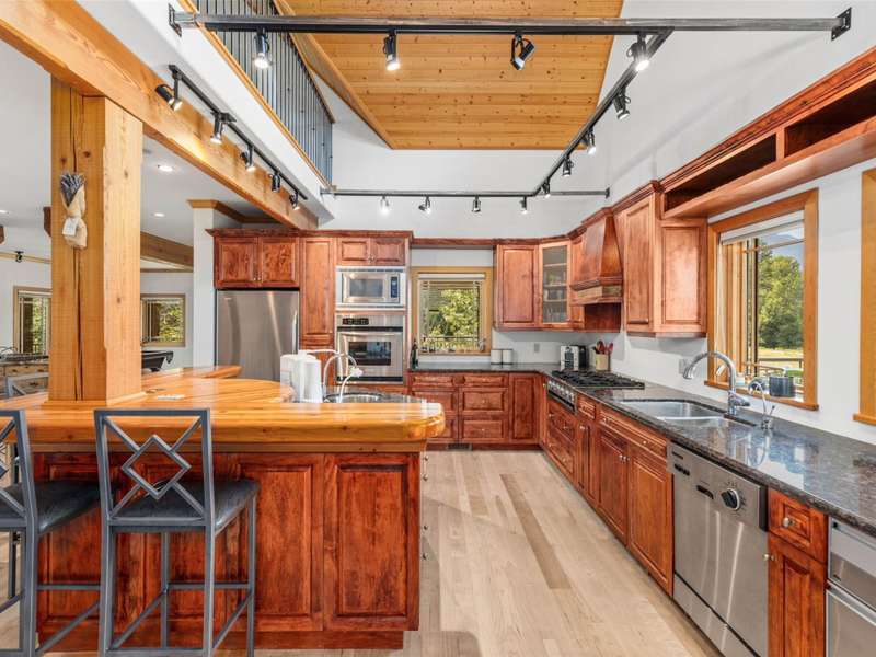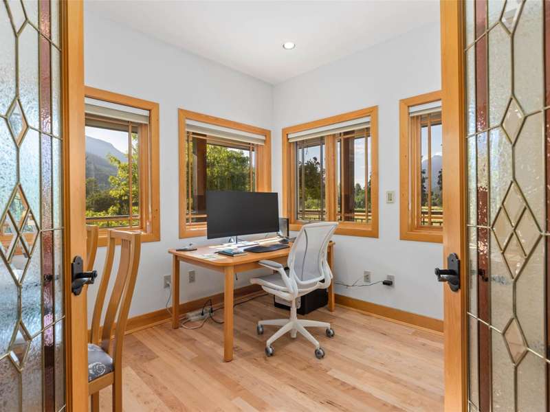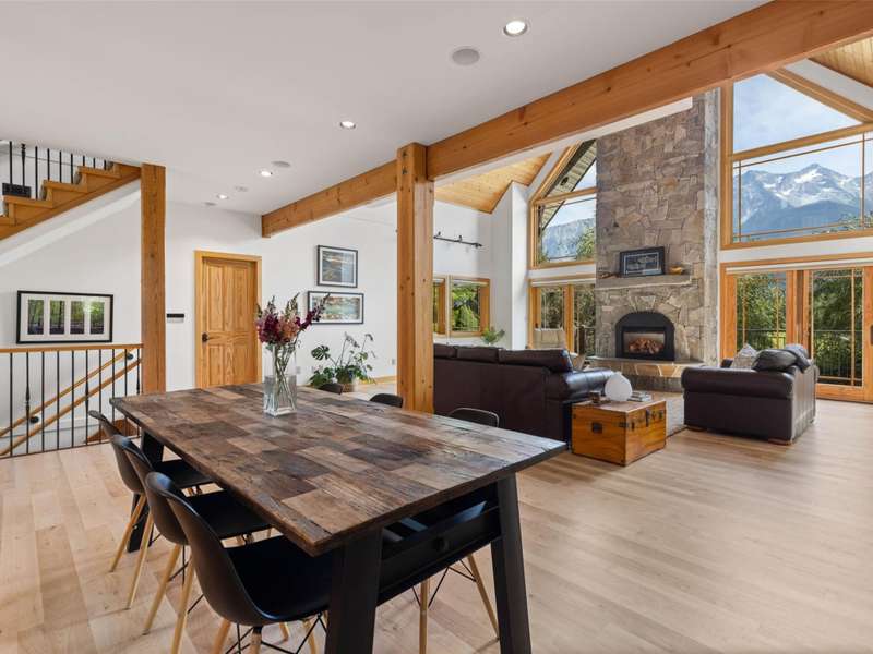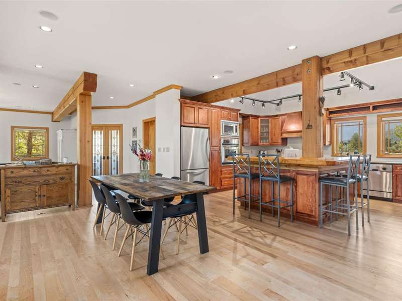 Just minutes from town on sought-after Collins Road, this 10-acre property offers space, views, and endless potential. From the moment you arrive, Mount Currie takes centre stage, perfectly framed from inside and out. Built with engineered post-and-beam construction, the 4,404 sq. ft. timber-frame home blends timeless mountain-lodge style with modern comfort. Soaring vaulted ceilings, warm wood accents, and expansive windows bring the surrounding beauty into every room. A gourmet kitchen anchors the open living space, while indoor and outdoor fireplaces make it easy to enjoy every season. Maple hardwood floors, heated stone entryways, and central air and heating add both function and comfort. Outside, irrigated gardens, municipal water, and multiple water points make caring for gardens and livestock effortless. An existing bridge over the canal ensures full access to the entire property. Already approved for B&B use, the flat, open acreage is equally well-suited for horses, hobby farming, or agritourism ventures. Current zoning also supports a second farm residence, horticulture, and event hosting. Whether you’re dreaming of a guest retreat, expanding your agricultural pursuits, or simply enjoying a private mountain-view estate with town just minutes away, this property delivers endless possibilities.