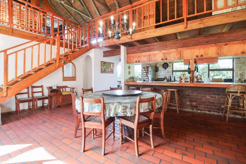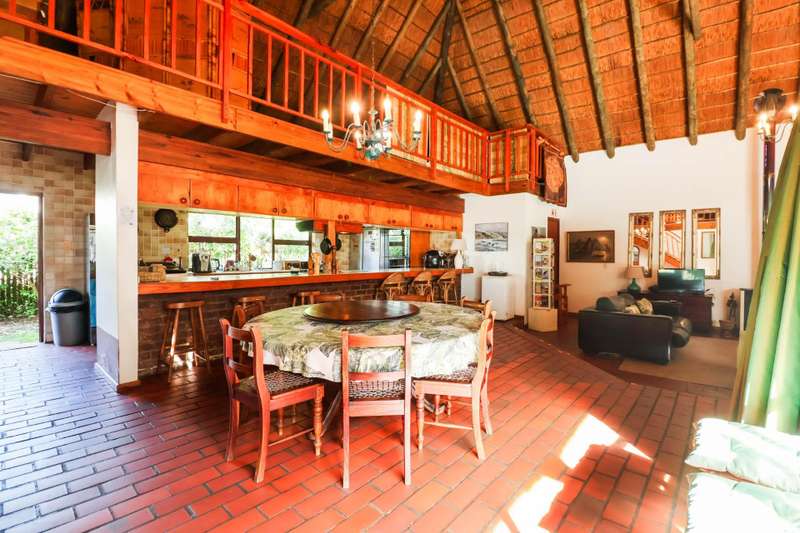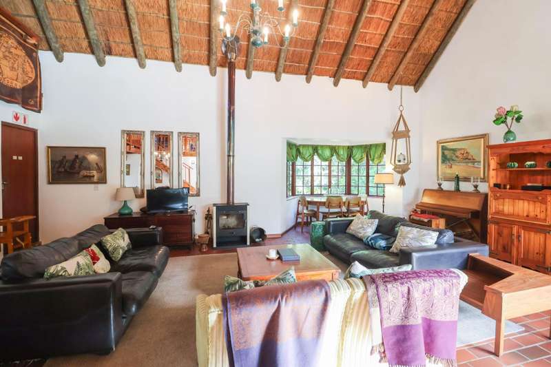 Live Abundantly embracing this Charming seaside village located in Nature's Valley on the Garden Route Opportunity knocks! Rarely do properties come on the market in Nature's Valley and when they do they are snapped up. This charming thatched-roof house offers versatile living options. Whether you seek a holiday retreat, a permanent residence, or an income-generating guest house, this property is equipped to meet your needs. The Thatch roof was recently done ensuring durability for years to come The house features a delightful north-facing orientation, surrounded by a lush, indigenous garden. A short walk will take you onto the beach and lagoon. The main house, with its four spacious bedrooms and three bathrooms on the ground level, invites seamless indoor-outdoor living, each room opening onto the garden. Upstairs, two additional bedrooms, one leading to a generous balcony ideally suitable as a Honeymoon suite. The kitchen, dining room, and lounge exude spaciousness owing to the double-volume ceiling. Cool in summer, while a wood-burning fireplace promises cozy winters. A separate study and loft area with a recreational space, complete with a pool table and bar, cater to diverse needs. Adjacent to the house, two en-suite bedrooms, each with entrances are private and quiet. Ample parking for 6-7 vehicles. An outside kitchen is an added feature where morning coffee and breakfast can be served or evening drinks around the firepit. The Garden Route attracts a vibrant tourist industry and this property located in Nature's Valley could be in the top best-loved destinations. Not only is the village, coastline, and hiking trails of Nature's Valley beautiful in themselves, but the surrounding area is equally spectacular! Do not hesitate to contact Sandra Caldecott from Chas Everitt International Property Group for a private viewing and further information