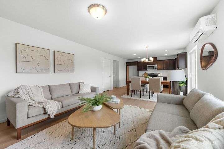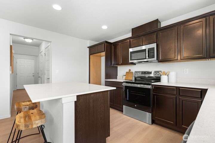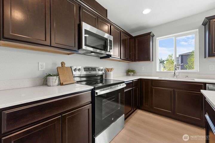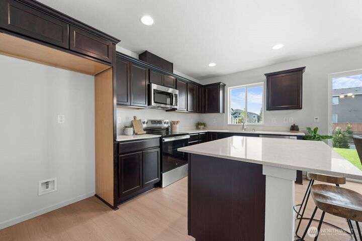 THE TYLER design B Plan lot 15 at the Serenity Trails community. At just under 1,500 sqft, this 4-bedroom, 2.25-bathroom 2-story home offers elegant quartz countertops in the kitchen, efficient stainless steel appliances, gorgeous laminate hardwood flooring and white painted millwork. The Serenity Trails community is ideally situated between the thriving cities of Marysville and Lake Stevens, this new neighborhood offers a commuter-friendly and inviting place with restaurants, schools and shopping within minutes. Thoughtfully designed floorplans and timeless finishes offer comfort and style. Enjoy the benefits of NEW! New home warranty, energy efficient, low maintenance, updated safety and modern lifestyle design elements.