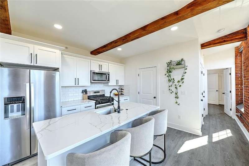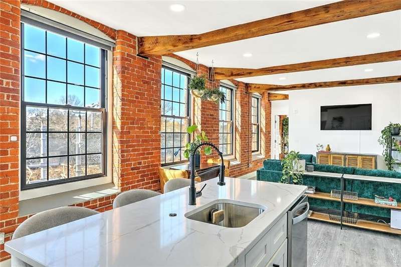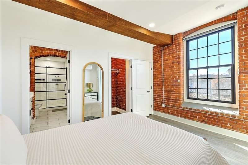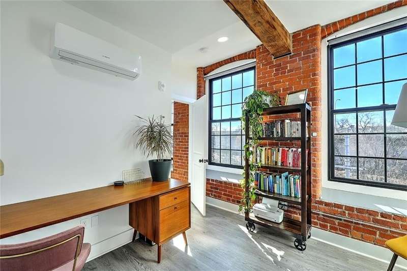 This beautifully renovated 2-bedroom, 2-bathroom 4th floor loft offers modern living in a historic mill conversion, blending character and contemporary style. With large windows throughout, you'll enjoy an abundance of natural light and breathtaking views of the State Capitol. The open-concept living space features sleek quartz countertops in the kitchen, perfect for both cooking and entertaining. Each bedroom is spacious, and the master suite includes its own full bathroom for added privacy and convenience. The home is equipped with energy-efficient mini-split systems to ensure year-round comfort. Elevator for easy access. In unit laundry. Located just a short walk to the train station and with easy access to highways, this property offers unparalleled convenience for commuters. Enjoy the charm of this unique space while being close to local amenities and attractions. Don’t miss the chance to own this one-of-a-kind loft—schedule your showing today!
