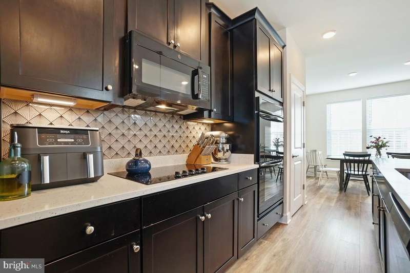 Stunning 3 level Brick Front Townhouse -each bedroom has its own full bath-in desirable Bradley Square. Walk inside to easy care Luxury Vinyl Plank Flooring with a built in next to your front door to store shoes, gloves and more. Move towards the back of the home and you're going to love the Bedroom and Full Bath with a glass door leading to your Patio. Walk upstairs to an Open Main Level filled with light - Your Gourmet Kitchen is in the center of things with fabulous Tiled Back Splash, Rich Cabinets, Double Oven plus Microwave, and Island with space for stools. Just off the Living Room is a large deck, perfect for grilling or dining al fresco. Upstairs you'll find 2 generously sized bedrooms-each with their own private baths. Within your new neighborhood you'll find a Splash Pad, Playgrounds, Picnic Area with a view of a pond. - Shopping, Restaurants, and the Manassas Historic district are within easy reach -ready to explore. Commuting? Prince William Pkwy, I66. Rt28 and VRE stations are within minutes from your new home.