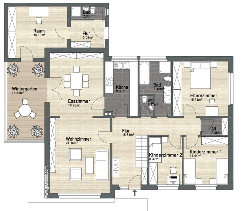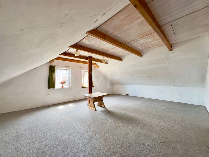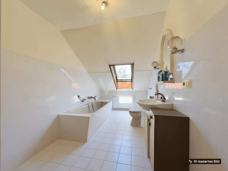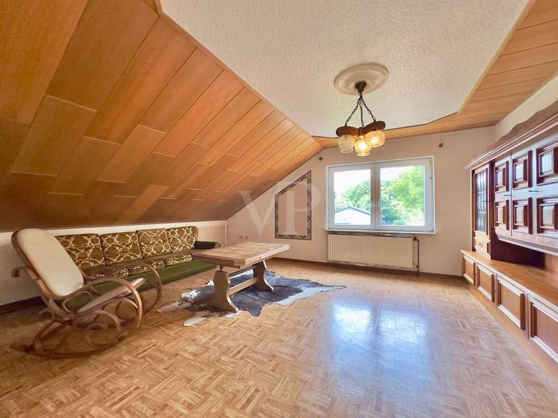 For sale is a spacious detached house from 1976, which was extended in 1977 by adding a first floor and in 1986 by adding a storey and converting the attic. The property is located in a quiet cul-de-sac and, with its living space of approx. 222 m², offers plenty of room for individual design options. You can find ideas on how to design your new home in our exposé. The property offers a solid basis for creative design options and individual adaptation to your personal needs and ideas. The house has a total of nine rooms, including six bedrooms and three bathrooms, offering enough space for large families or multi-generational living. The first floor includes a daylight bathroom with shower and a fitted kitchen, which makes for a comfortable cooking experience. On the upper floor, you will find another daylight bathroom with a bathtub and connections for a second kitchen. These rooms are ideal for creating a separate living unit, e.g. for use as a multi-generational home or to accommodate larger families The spacious, west-facing garden offers ideal conditions for long hours of sunshine and outdoor leisure activities. A conservatory extends the living area into the countryside and can be used on cooler days to enjoy the outdoors. Another special feature of this property is the double garage, which has an expandable upper floor. A studio and a WC are already available here, which offers further design options for hobby rooms or a small granny apartment. The quiet cul-de-sac location ensures a pleasant living environment. The west-facing garden guarantees many hours of sunshine outdoors and the opportunity to design the outdoor area according to your own ideas. This property is particularly suitable for buyers who are looking for a spacious living space in a quiet location and are prepared to carry out renovation work according to their own ideas. The house therefore offers an ideal starting point for an individual design. The quiet location in a cul-de-sac contributes to increased living comfort and minimizes through traffic, creating a pleasant living atmosphere. This property offers considerable potential for buyers who are willing to invest in a renovation and implement their own living ideas. The various possible uses make this detached house particularly attractive for families who long for more space and privacy. This purchase opportunity offers you the chance to create a home according to your wishes in a cultivated environment.
