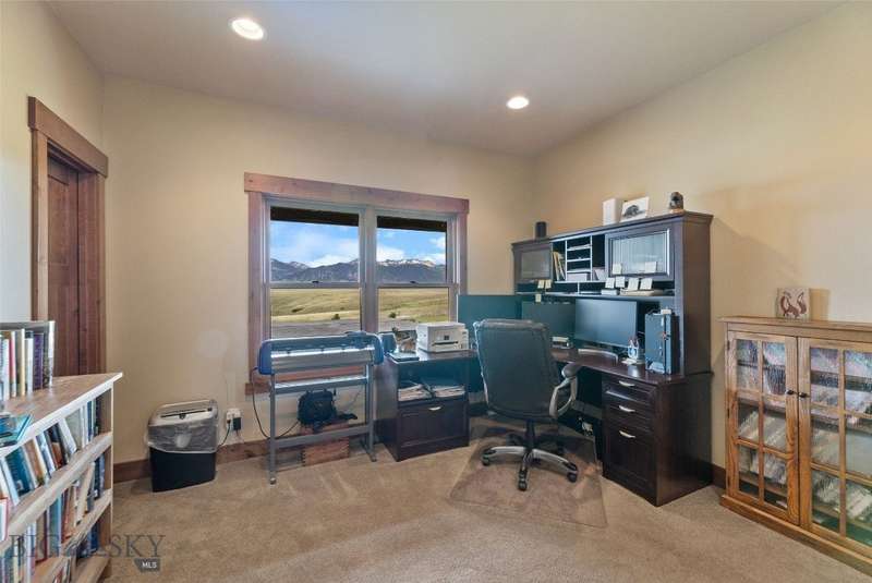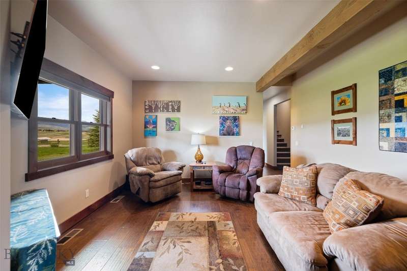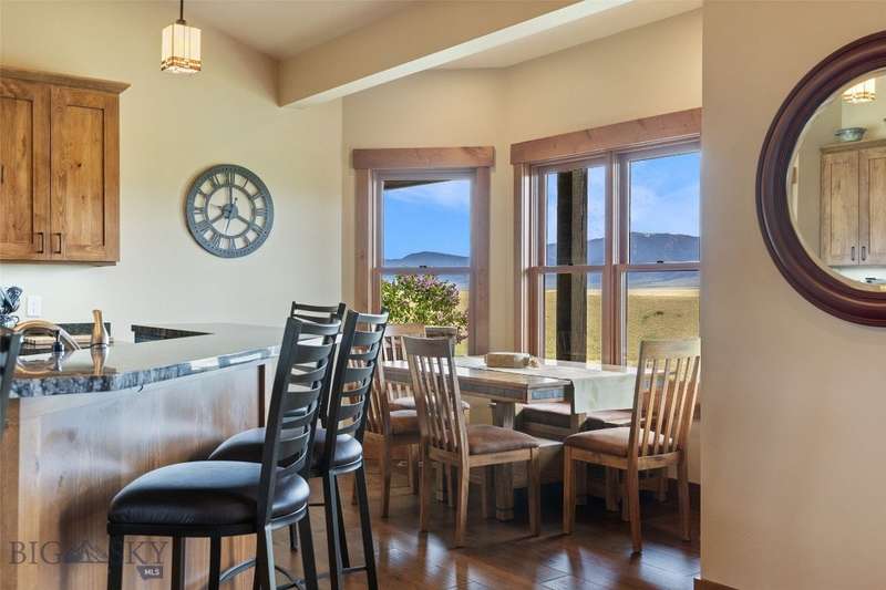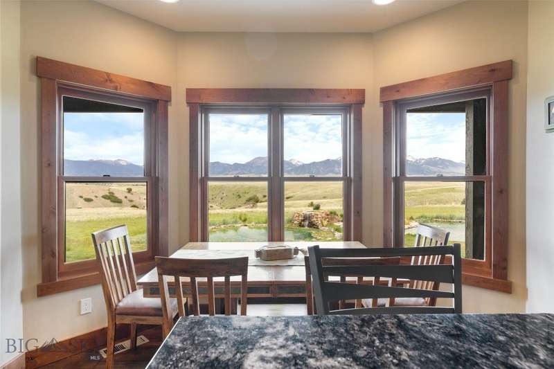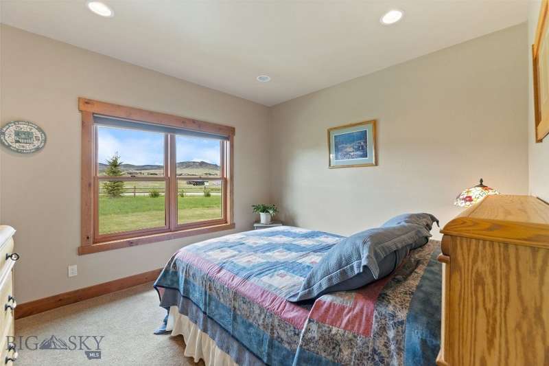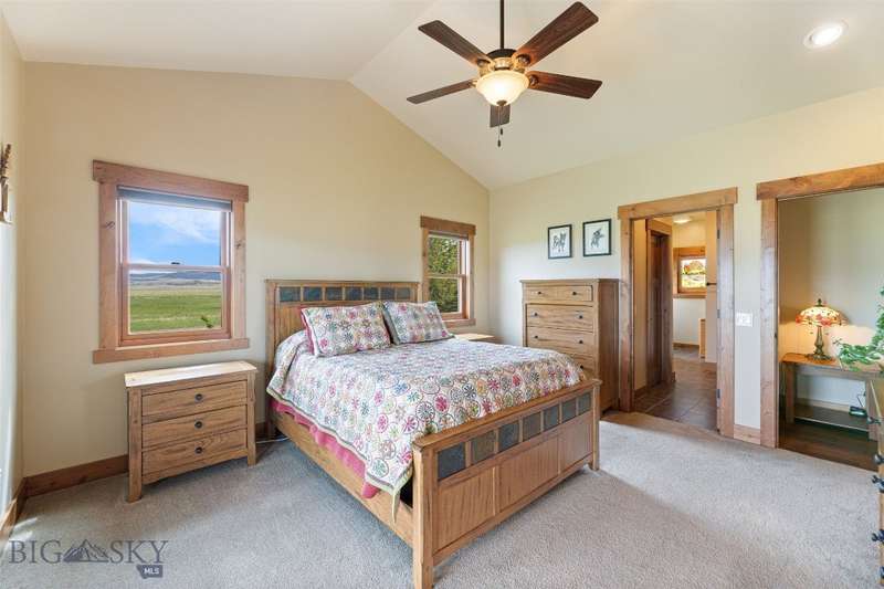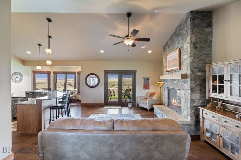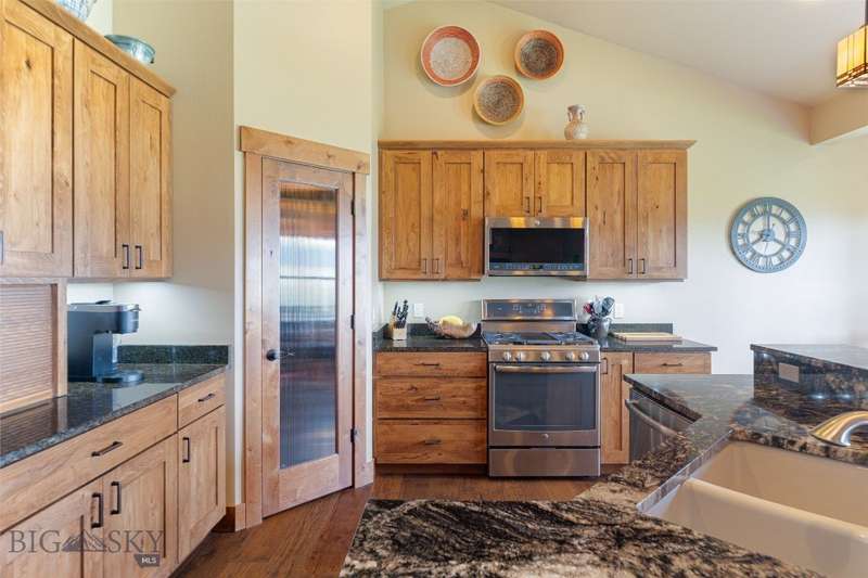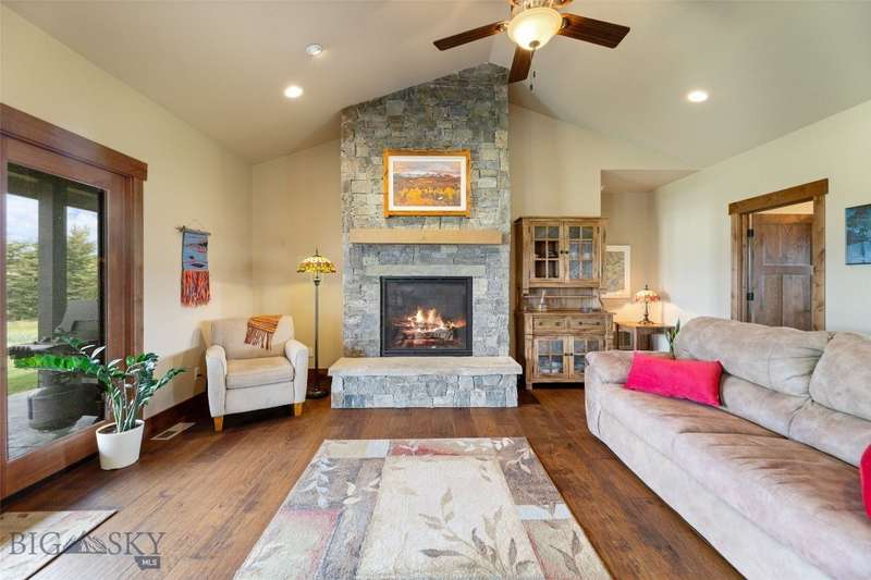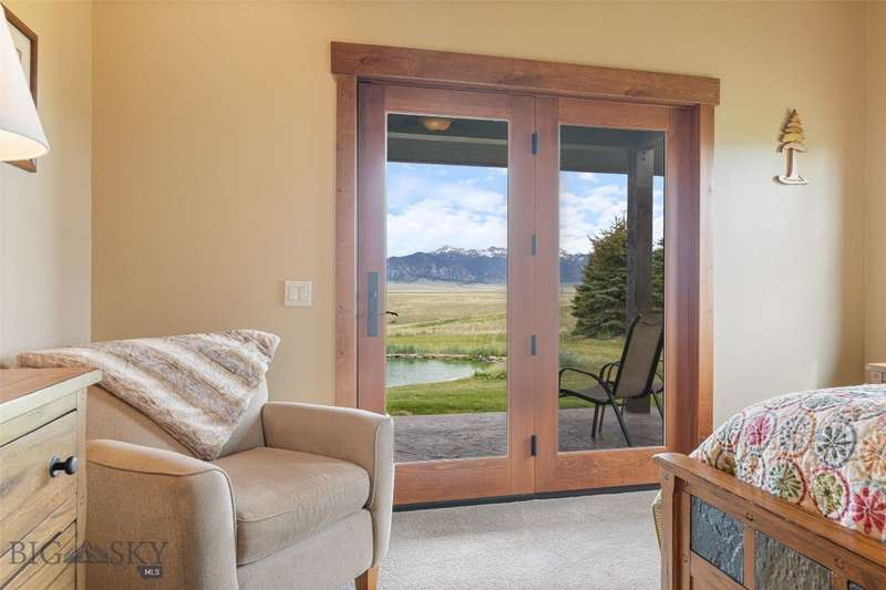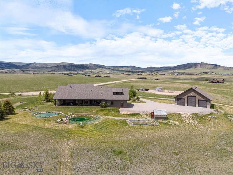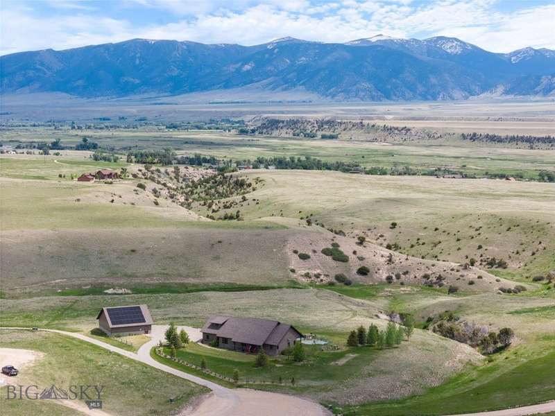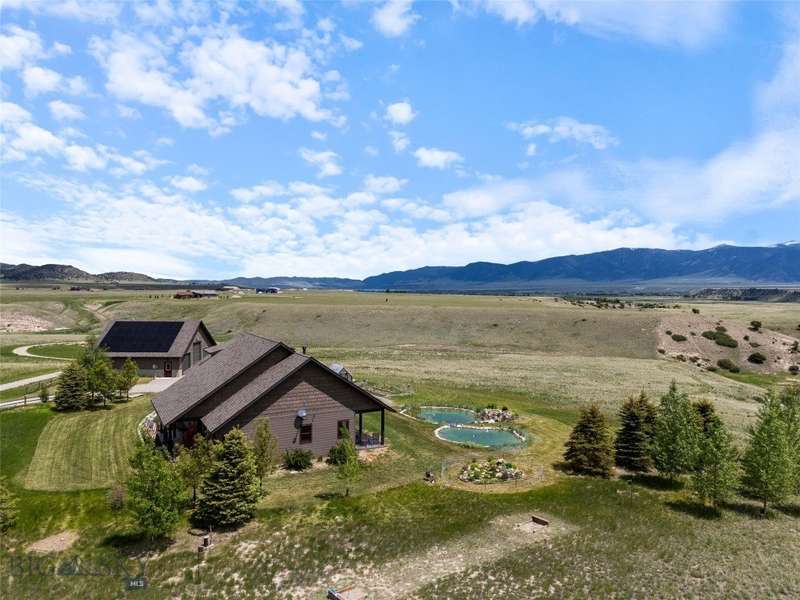 Welcome to a one-of-a-kind custom home on 7.260 acres in the coveted Pronghorn Meadows community, where luxury meets functionality and the views of the Madison Range stretch for miles. This thoughtfully designed 4-bedroom, 3-bath home offers 2,441 sq ft of refined living space - 3 bedrooms and 2 bath on the main level, with an additional private bonus room/bedroom above the garage complete with its own full bath and walk-in closet. Vaulted ceilings and engineered hickory floors welcome you into the main living area, while rich knotty alder trim, doors, and cabinetry carry throughout the home. The chef's kitchen features a walk-in pantry, granite counters, and a 5-burner gas stove (including one long burner) - perfect for hosting or daily living. The primary suite includes French doors to the back patio, two walk-in closets, a double vanity, a walk-in custom tiled shower, and heated tile flooring. Two guest bedrooms with large walk-in closets and a full guest bathroom offer plenty of space for family or visitors. Great storage throughout and a whole-house water softener, and solar panels for energy efficiency add exceptional value. Outside, enjoy beautifully landscaped grounds with two ponds and a waterfall, rock garden, raised beds, and a greenhouse. The stamped concrete patios are ideal for soaking in the peaceful setting. The attached 2-car heated garage is complemented by a third small bay with utility sink and additional storage. A 38x40 toy barn features a 14' door and two 10' doors for all your recreational needs. Two RV hookups complete this incredible property. Located just minutes from Ennis, the Madison River, and all that the Madison Valley has to offer, this home perfectly blends elegance, practicality, and breathtaking scenery.