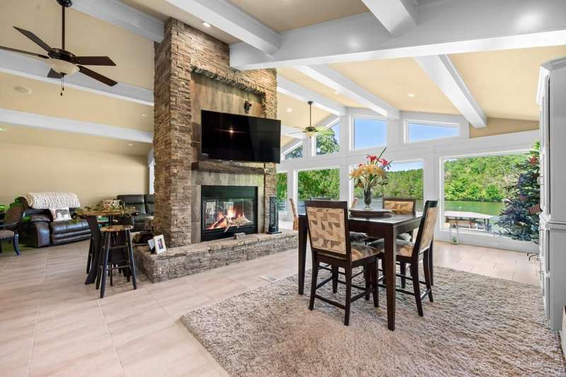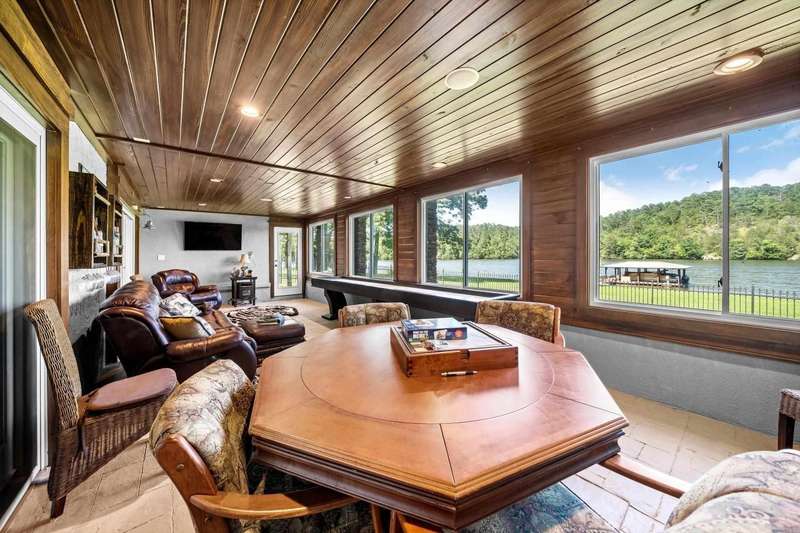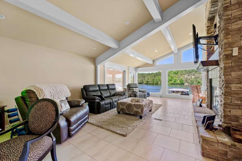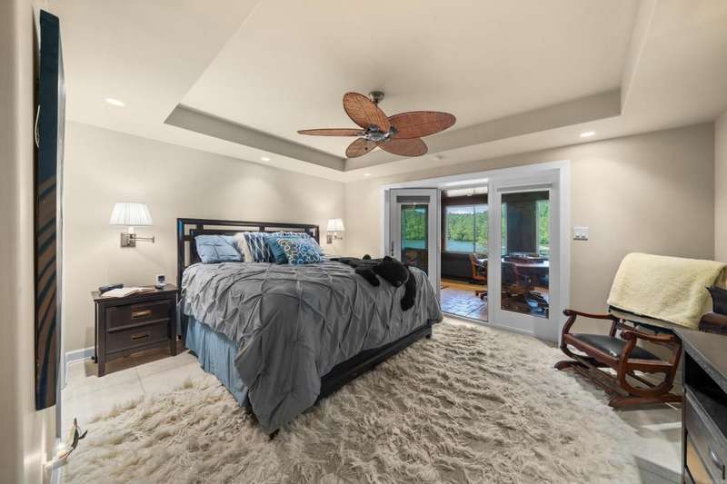This home is located on over an acre of land. It is perfect for those looking for secluded living in a quiet and established neighborhood. 3 Bedrooms/3 Full Bathrooms. Upstairs on the main level the first thing you notice is the breathtaking view! The dining & living area share a double sided fireplace. Both are open to the kitchen for easy entertaining with friends & family. Two bedroom & bathrooms are also located on the main level. The lower level has an amazing "Man Cave" area! Bedroom & Full bath, Game room with full wall of lake view windows. A Wet bar with Ice maker and mini fridge. Lower level could be used as Mother In Law quarters as well. There are also 2 custom built beds for guests. Tons of built in storage! Deck and Partially fenced back yard. Boat Dock. Seller says there is a lot of wildlife that can be seen. Deer, Ducks and Eagles just to name a few. One attached garage as well as a two car detached garage. 200' lake frontage and the dock has two jet ski lifts.