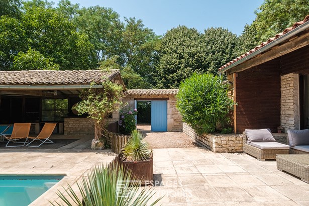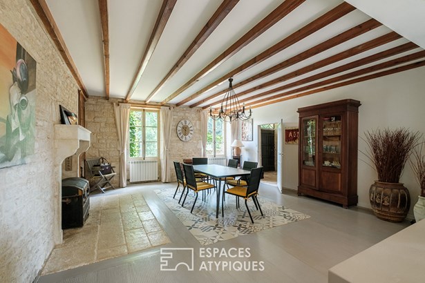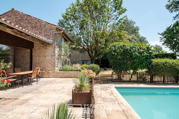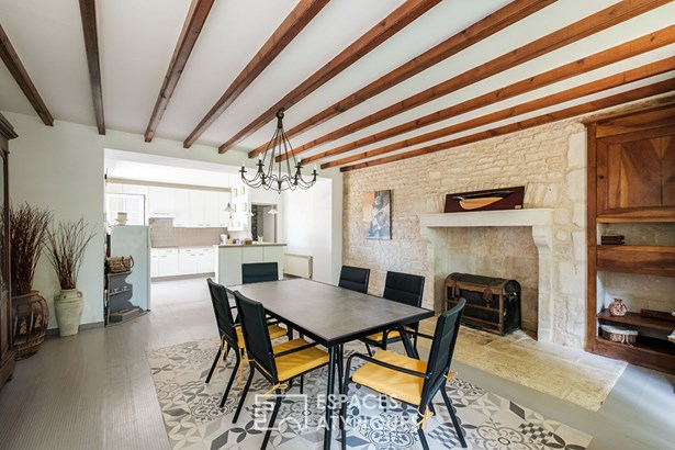 EXCLUSIVE ATYPICAL SPACES Located in a peaceful hamlet of Celles-sur-Belle, this old stone farmhouse, imbued with authenticity, offers a generous living space of approximately 319 m2. Close to amenities, in a tranquil environment, it will appeal to nature lovers and families seeking space and serenity. The property, accessible via an elegant driveway lined with lime trees, includes several living spaces, a landscaped garden, a heated swimming pool, a garage, a carport, and a workshop. The interior of the house preserves the charm of the old while revealing beautiful spaces to reinvent. From the entrance, the warmth of the original materials is felt. The welcoming living room is organized around a majestic period stone fireplace. The functional and welcoming eat-in kitchen is adapted to everyday uses. A bedroom with storage is located on the ground floor, pleasant and practical thanks to its direct access to the exterior. The heart of the house opens with a reception room impressive with its high ceilings and large bay windows letting in generous natural light. This space with varied perspectives is ideal for entertaining, relaxing, or considering an inspiring professional project, facing the swimming pool and the garden. A cellar completes this level. The upper floor of the first wing offers a very spacious bedroom, while the upper floor of the second houses three other bedrooms, an office space, and a bathroom. Outside, the charm is immediately felt. The terrace adjoining the reception room benefits from a green panorama, offering an unobstructed view of the flower garden. The outbuildings, perfectly integrated into the whole, add potential and functionality. Numerous walking paths start from the house, perfect for extending the bucolic experience on foot or by bike. Rare and full of promise, this atypical residence will appeal to lovers of character properties looking for a peaceful living environment steeped in history, to be personalized according to their desires. ENERGY CLASS: E / CLIMATE CLASS: E. Estimated average amount of annual energy expenditure for standard use, established from the average energy prices indexed on January 1, 2021: from EUR5,500 to EUR7,500.