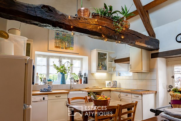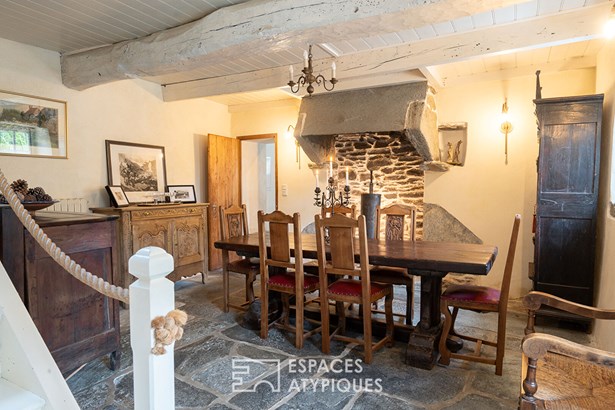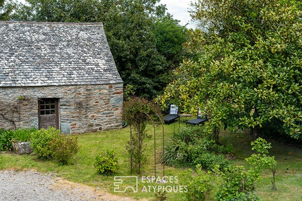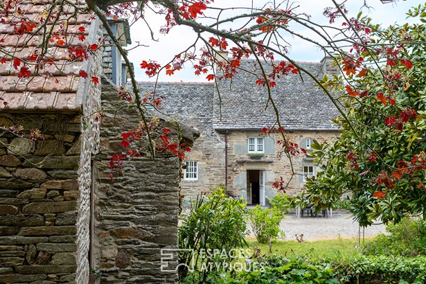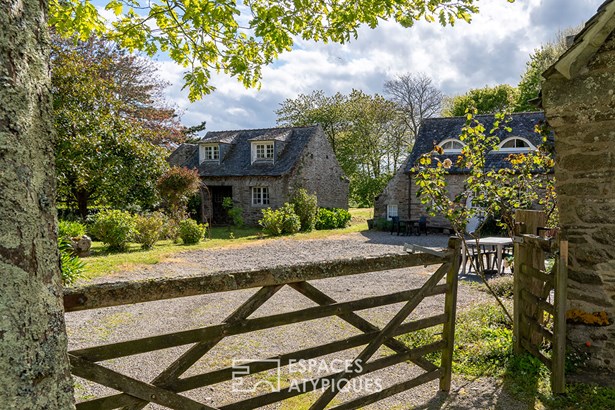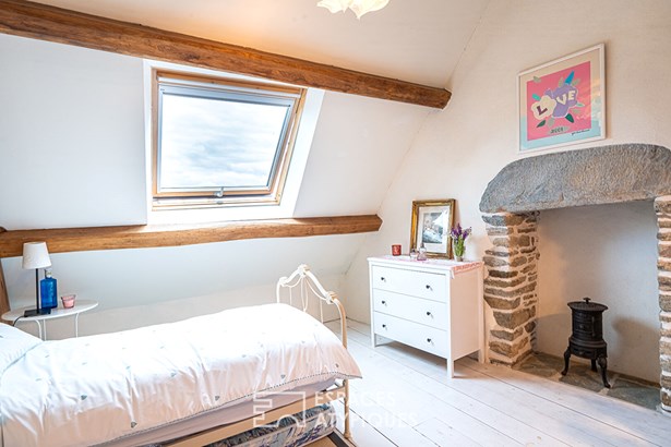 Nestled in a peaceful setting in the pretty town of Locquirec, just a 3-minute bike ride from the fine sandy beaches, stands this majestically. Built in the nobility of stone, adorned with its beautiful local slates and copper gutters, it exudes an authenticity whose history dates back to the dawn of time in the 18th century. Here, time flows to the rhythm of the tides, each stone telling its story. The various buildings are arranged around a central courtyard, facing southwest, like guardians of the past, where the secrets of yesteryear seem to whisper to each other in the sun. Spread over a plot of approximately 3,400 m2, this property unfolds like a poem on paper. This atypical property offers a unique living environment, where natural beauty and authentic charm combine to create an inspiring setting. In this architectural symphony, the main house, the result of the merger of two charming buildings, has been meticulously restored by craftsmen according to the rules of the art, in perfect harmony with modern comfort and the authentic soul of its origins. The noble materials give each room a warm and authentic atmosphere. Welcome to this haven of refinement and comfort, where every detail is an ode to well-being! From the entrance, the charm operates with a living room adorned with its stove, smoothly merging with its vast dining room. The careful decoration evokes the discreet refinement of an art of living. The floors with shale tiles and the exposed beams add a touch of timeless elegance. For the greatest pleasure of the eyes, but also for insulation and acoustics, the walls are lime-plastered. In continuity, the kitchen with its country chic decor and sublime high ceilings, declines the softness to maintain the family spirit. Its Rayburn kitchen range will delight epicureans in search of culinary delights. Continuing the discovery, an office that can be transformed into a bedroom and a bathroom complete the ground floor. The stairs lead up to the sleeping areas, revealing three magnificent parquet-floored bedrooms adorned with sublime exposed beams. They take full advantage of the building's vast volume, expressing a warm, light-filled feeling. Each bedroom is an intimate cocoon, designed to offer its occupants a cozy and personalized refuge. The recent renovations, executed with care and in accordance with the most rigorous standards, underline the attention paid to quality and comfort. Located a few steps from the main residence, a characterful outbuilding offers an additional haven of tranquility. It thrives as a gite, ensuring an attractive rental yield. With its independent access, the cottage has its own living space on the ground floor, with its equipped kitchen and a bathroom. Upstairs, the bedroom, with its undeniable character and exposed timbers, welcomes travelers in search of authenticity. A separate outbuilding of approximately 40 m2, seeking rebirth, patiently awaits its time. Its walls, full of stories, whisper to those who will listen: additional cottage, artist's studio, independent profession are just some of the ideas among many others. To complete the picture, the vast garden, buildable, stretches like a blank canvas, ready to accommodate a swimming pool, a second home, thus offering infinite potential to this property full of character. A characterful outbuilding, arranged as a double garage with a surface area of 30 m2, harmonizes perfectly with the architecture of the property, offering various possibilities of use: vehicles, storage space for your hobbies: windsurfing boards, kayaks, paddles. A carport for storing wood completes the benefits of this property. This atypical and rare property benefits from a privileged location just a few steps from the big blue, also allowing you to enjoy a variety of outdoor activities, such as water sports on the crystal clear waters, hiking along the coastal paths, bike rides through the green countryside. Located only 30 minutes from the Morlaix TGV station. T