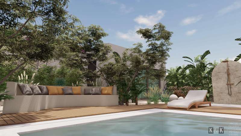 Built on a 5.700 sqm land area, the project includes 6 villas in total. Each unit comprises a spacious living room, 4 bedrooms, an open-plan kitchen, and 5 bathrooms. The villas are equipped with underfloor heating and VRF air-conditioning systems. Private swimming pools, landscaped gardens, large verandas, and 2-vehicle parking spaces complete the luxurious living experience.