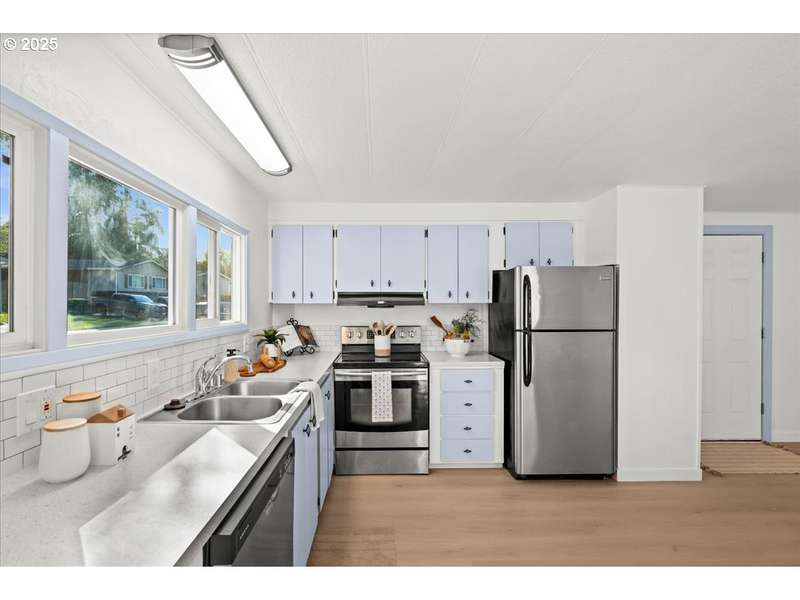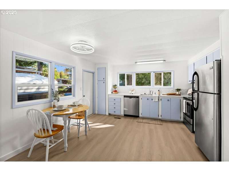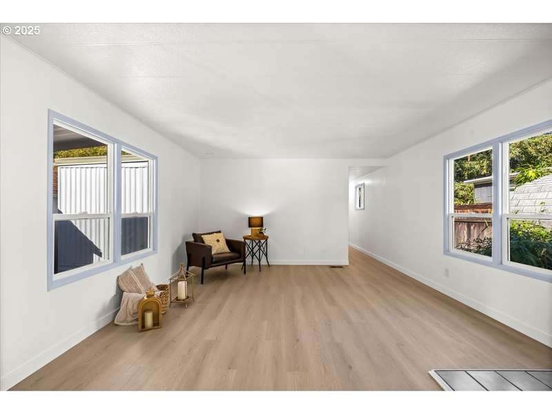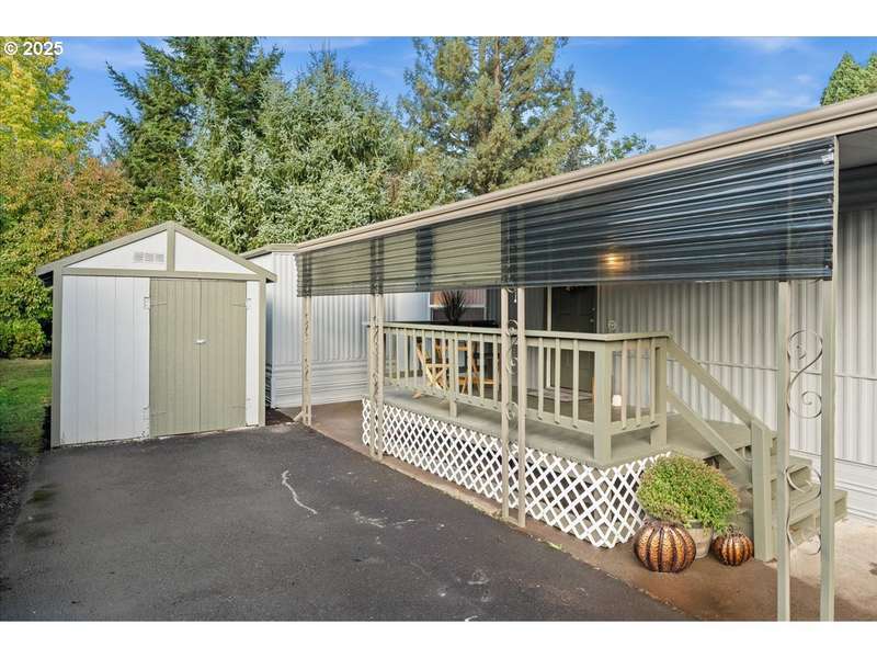 Welcome to Pine Ridge Park, a quiet all-ages manufactured home community on the edge of town, offering peace and convenience just minutes from shopping, restaurants, and public transit. This beautifully refreshed single-wide home features fresh paint inside and out, a thoughtfully updated kitchen with stainless steel appliances, and durable LVP flooring throughout.The home offers 2 bedrooms and 1 bath, along with an inviting wood-burning stove to keep you cozy. An addition provides a versatile flex/office space, perfect for working from home or hobbies. Enjoy relaxing on the covered front deck, the spacious yard, and take advantage of off-street parking plus a large powered workshop for storage or projects.Another bonus: no property taxes! Park rent is $975/month. Ask your agent about financing options available for manufactured homes on leased land. Don’t miss the chance to make this move-in-ready home yours in the welcoming community of Pine Ridge Park.
