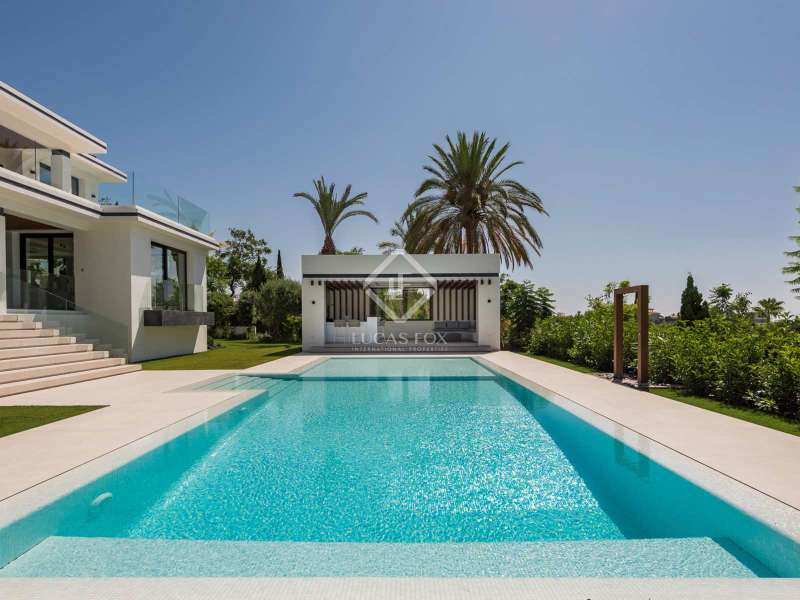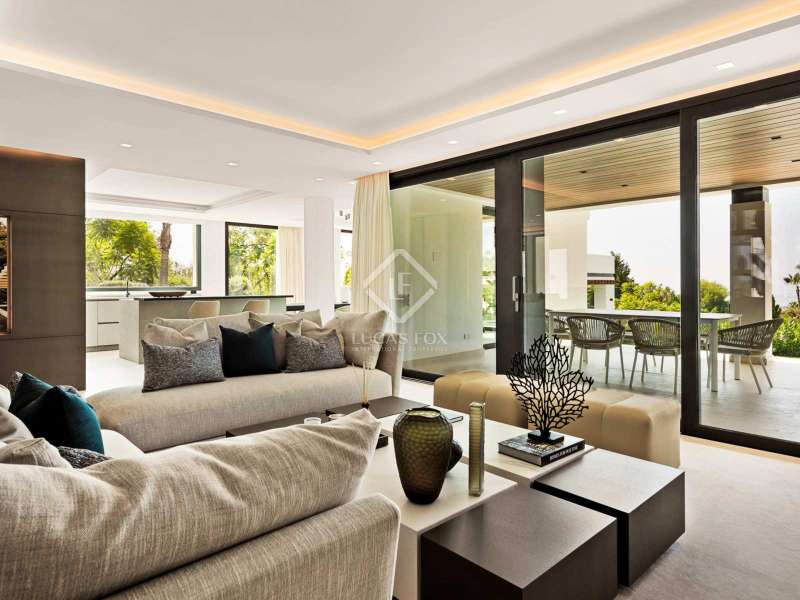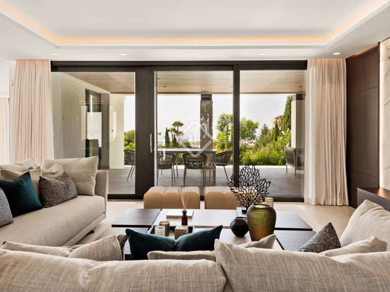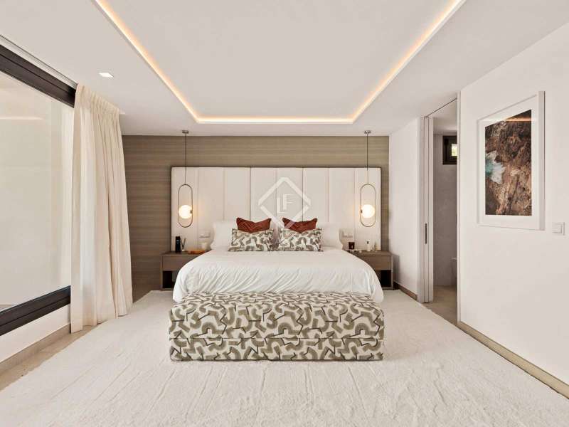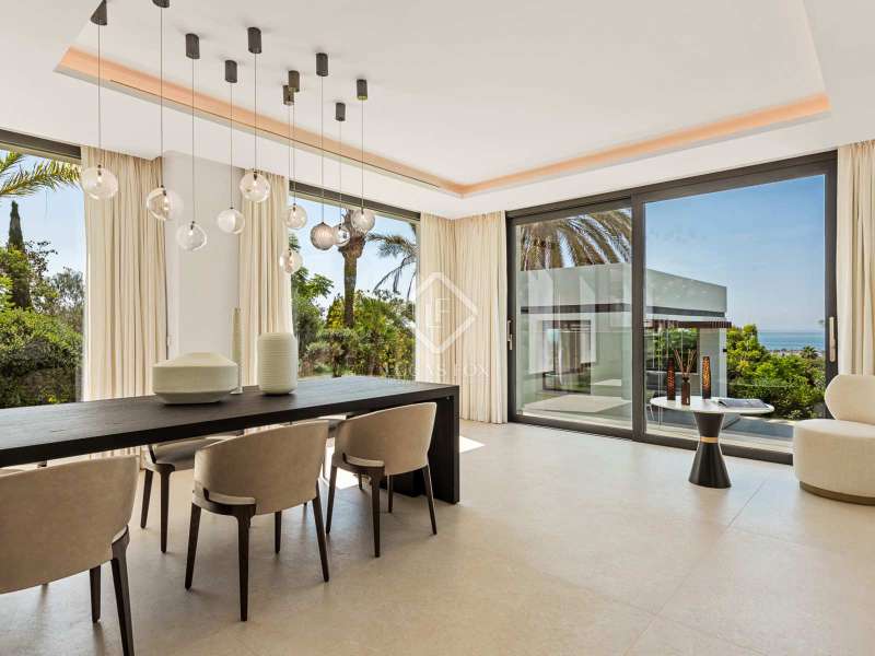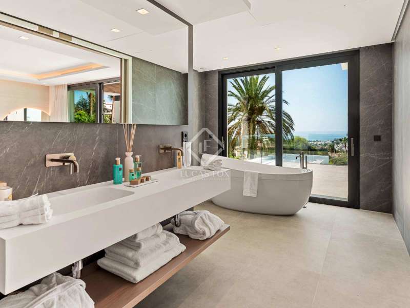Discover the epitome of elegance and style in this brand new 4-bedroom, 4-bathroom villa situated in the sought-after Los Flamingos area of Costa del Sol. This exquisite property offers an incredible opportunity to own a prestigious home in a prime location. With its perfect south-facing orientation, this villa is flooded with natural light and offers breathtaking views throughout the day. The meticulously designed interior boasts superior quality finishes, providing a seamless blend of sophistication and comfort. Step into relaxation in your private swimming pool, surrounded by a beautifully landscaped garden. The villa also features a spacious private garage with room for 3 cars, ensuring both convenience and security for your family. Spanning 842 m² of living space on a generous 1,398 m² plot, this villa offers ample room for comfortable living and entertaining. Inside, enjoy a range of exceptional amenities, including air conditioning, a fully fitted kitchen, a cosy fireplace, a jacuzzi, a sauna, and a basement. The property also includes a guest room, a gym, and an alarm system, providing ultimate convenience and security. Indulge in panoramic views from the solarium, where you can relax and unwind while taking in the breathtaking vistas of the sea, countryside, and golf course. The villa is also equipped with modern features such as double glazing, a state-of-the-art home automation system, a Dolby stereo surround system, a laundry room, and high-speed internet connection. Entertain guests on the covered terrace, perfect for al fresco dining, and enjoy ample storage space in the fitted wardrobes. With its open-plan kitchen and glass doors seamlessly connecting indoor and outdoor spaces, this villa offers a contemporary and luxurious lifestyle. Located within a gated community, this property ensures both peace of mind and privacy. Enjoy mesmerizing views of the garden and pool while being conveniently close to essential amenities, schools, shops, and playgrounds. Furthermore, you are just a short distance from the beach and world-class golf courses. Contact us today to arrange a viewing and make this magnificent villa your dream home in the Costa del Sol.