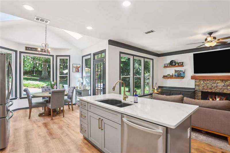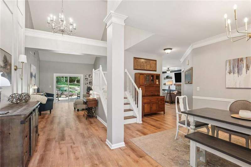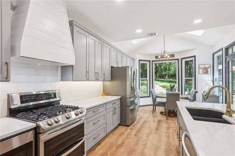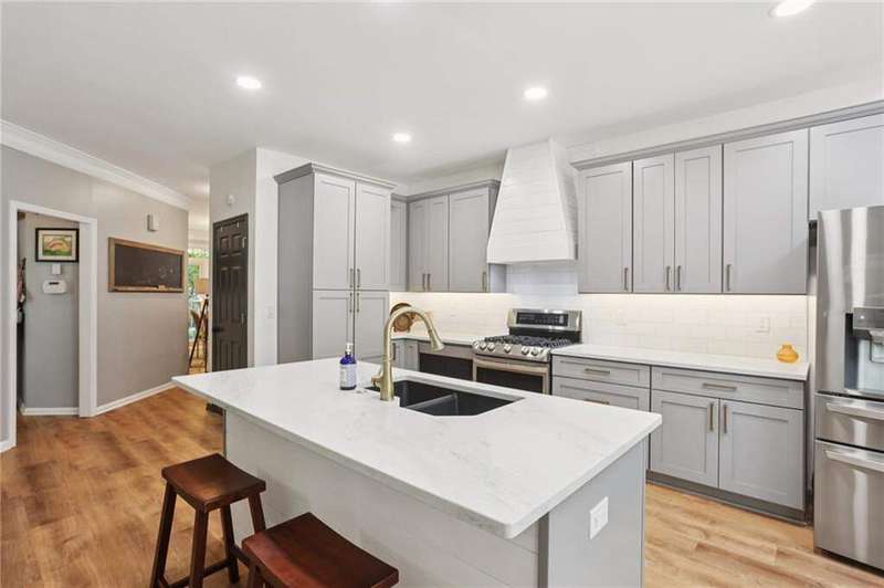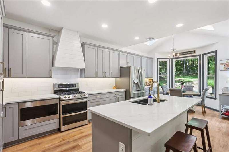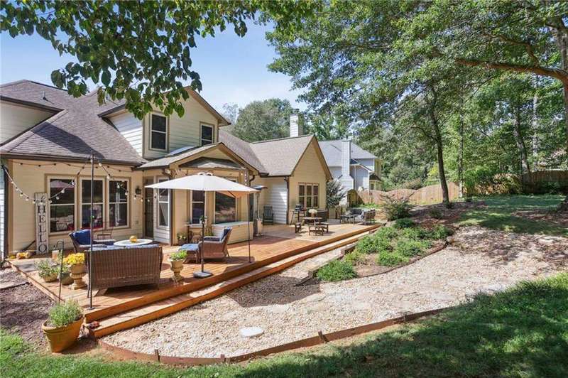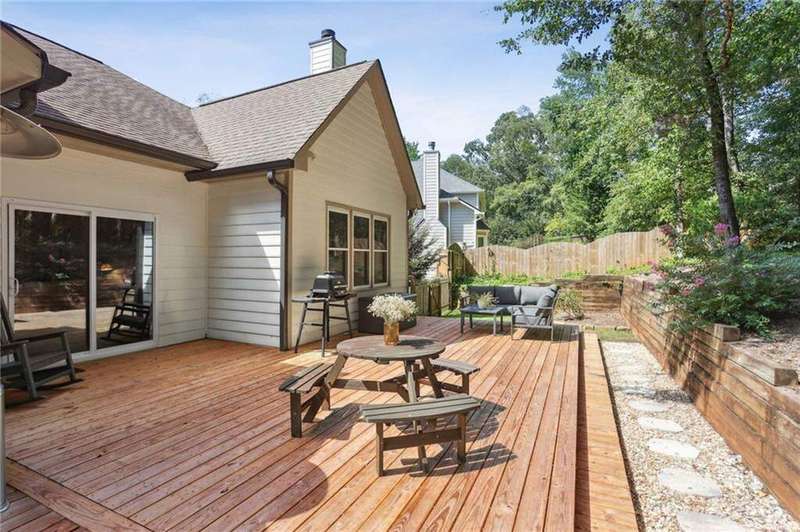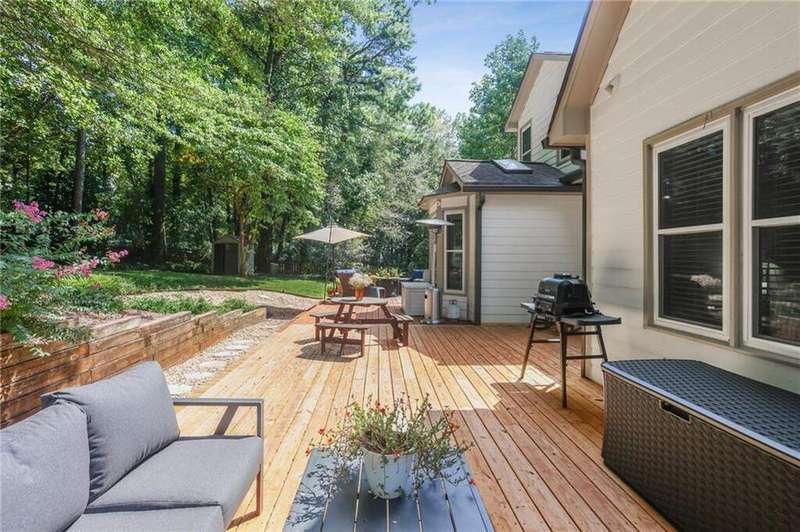 ABSOLUTELY PHENOMENAL renovated home on a private cul-de-sac lot in Carriage Oaks - a swim/tennis neighborbood in Downtown Marietta! BRAND NEW designer kitchen with a huge island, quartz countertops, designer backsplash and stainless new appliances! ALL new bathrooms with new lighting, new vanities, custom shower with frame-less glass. ALL new LVP designer flooring throughout the main level. HUGE new rear party-deck with only one stop down to the ground. Some of the best outdoor space you'll see in all of Carriage Oaks! Large green backyard with gorgeous trees. Primary on the main level with tray ceiling and large walk-in closet. Private office on the front of the house with custom bookshelving (could be used a bedroom if you'd like) and the guest bath. The homeowner has a wonderful sense of style and pride of ownership and it shows! Homeowner recently had the garage door painted.