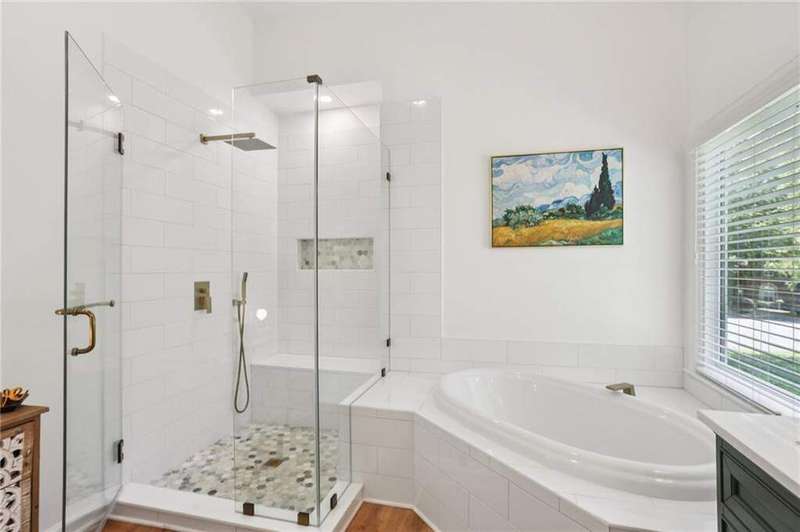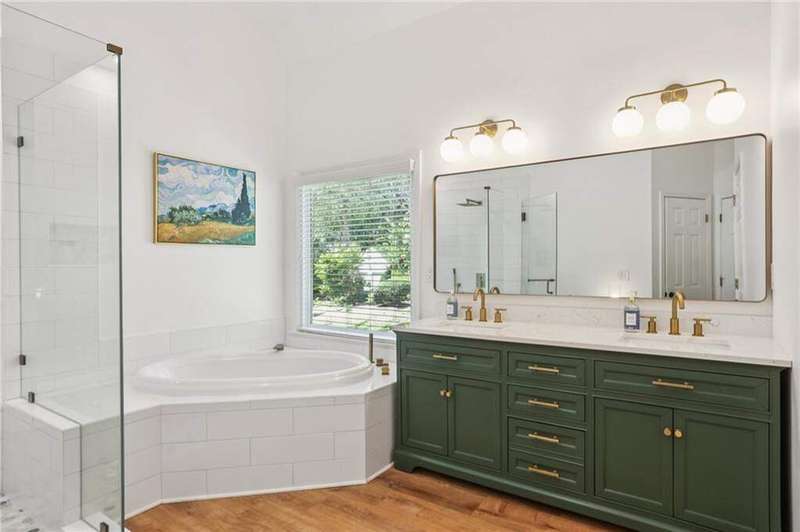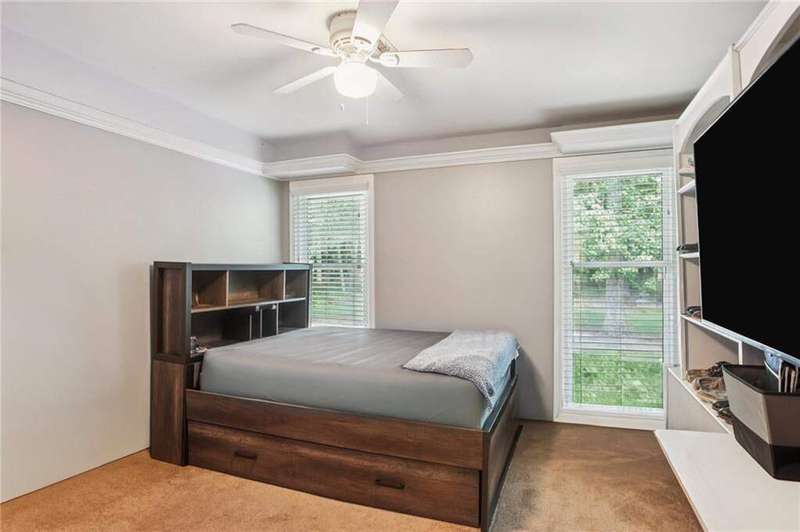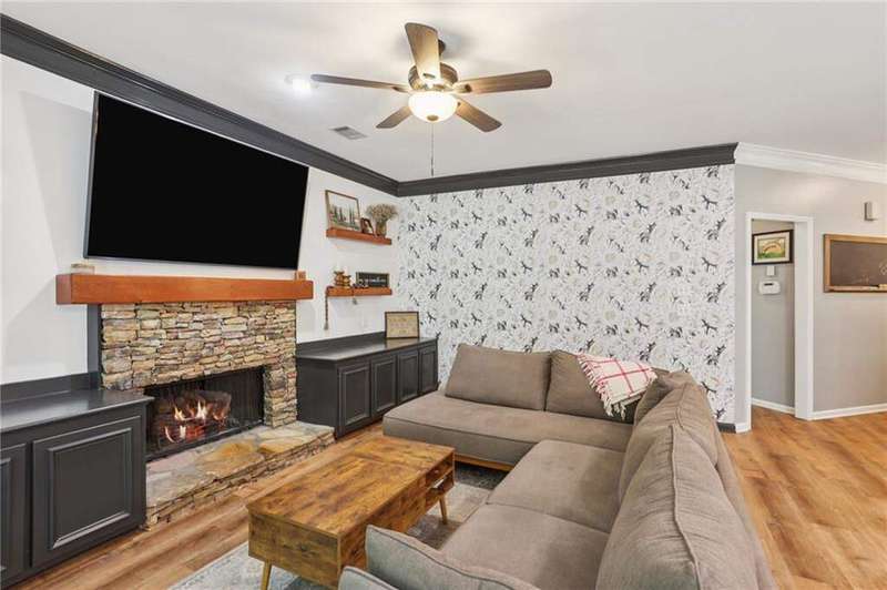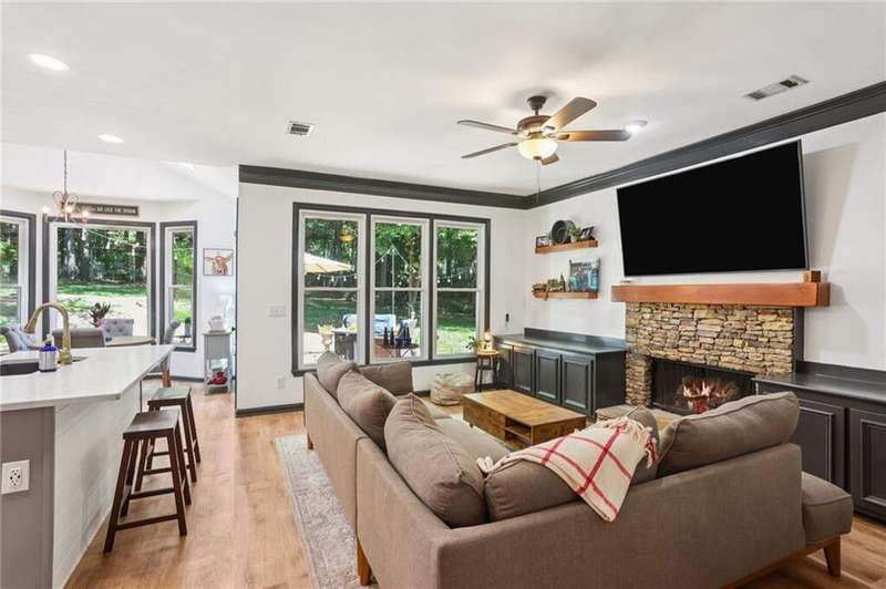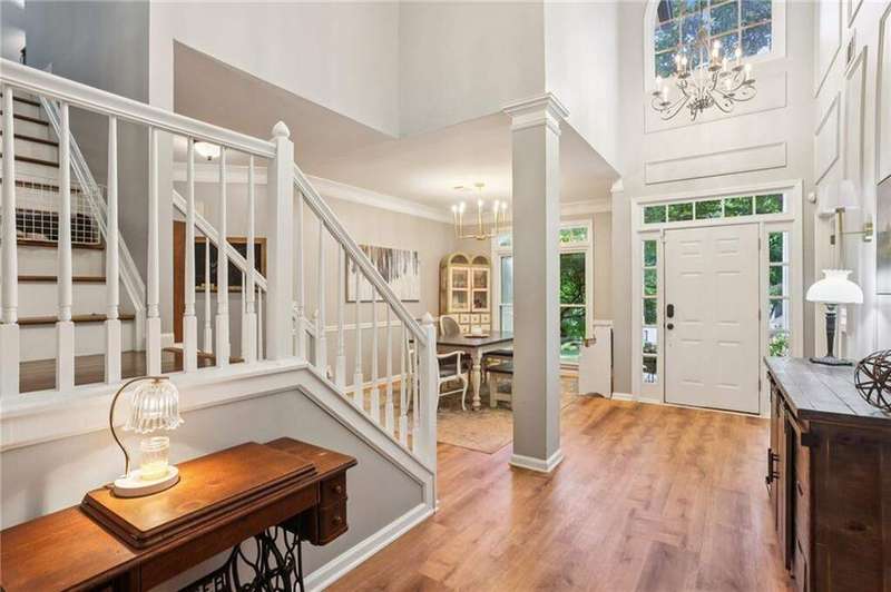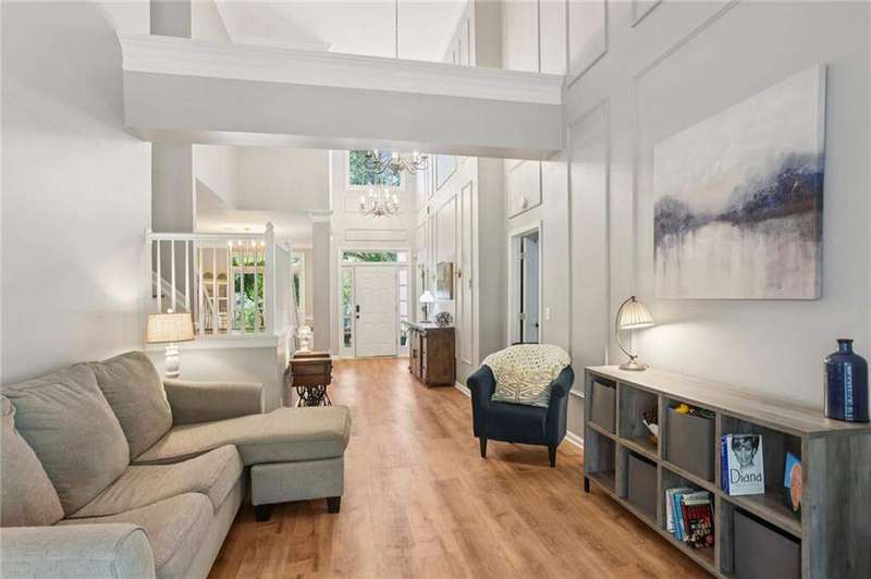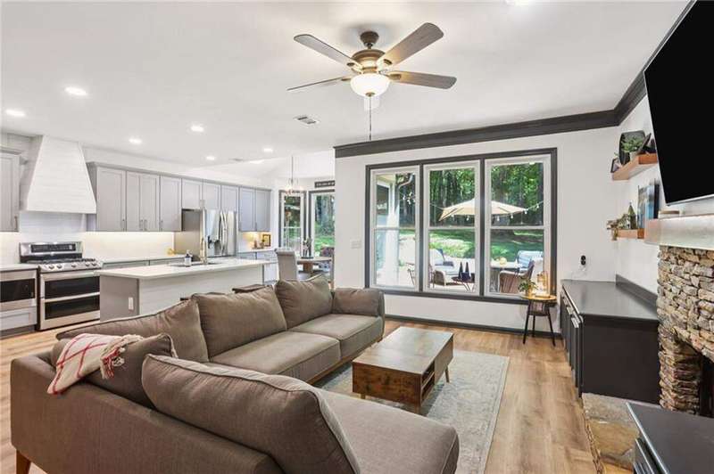 ABSOLUTELY PHENOMENAL renovated home on a private cul-de-sac lot in Carriage Oaks - a swim/tennis neighborbood in Downtown Marietta! BRAND NEW designer kitchen with a huge island, quartz countertops, designer backsplash and stainless new appliances! ALL new bathrooms with new lighting, new vanities, custom shower with frame-less glass. ALL new LVP designer flooring throughout the main level. HUGE new rear party-deck with only one stop down to the ground. Some of the best outdoor space you'll see in all of Carriage Oaks! Large green backyard with gorgeous trees. Primary on the main level with tray ceiling and large walk-in closet. Private office on the front of the house with custom bookshelving (could be used a bedroom if you'd like) and the guest bath. The homeowner has a wonderful sense of style and pride of ownership and it shows! Homeowner recently had the garage door painted.