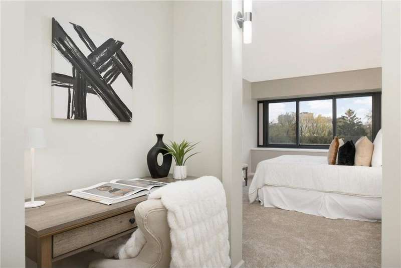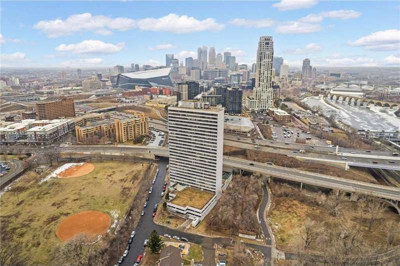 Welcome to this beautiful, fully renovated condo, that features two oversize bedrooms and 2 updated baths! The unit includes exclusive, direct rooftop access right from the backdoor! NEW windows May 7th, 2025 and new bedroom closets to be installed. The kitchen includes brand-new stainless steel appliances, new cabinetry, new floorings, and Cambria countertops. The bathrooms provide updated plumbing, fixtures, vanities, tile, and more. Other updates include new carpet, baseboards, and freshly painted walls throughout. Residents can take advantage of the saunas, heated pool, hot tub, fully-equipped workout facility, hobby room complete with a work shop, game/entertainment rooms, tennis courts, and much more. The seller will also include the storage unit and provide the key at closing. There is ample parking for an additional fee: heated garage ($90/mo), underground parking ($65/mo), outdoor parking ($35/mo), and free guest parking. Take advantage of this unique opportunity and enjoy the serene views that offer a perfect blend of urban convenience and suburban tranquility, overlooking the grassy rooftop terrace. The home is located walking distance to the University of Minnesota and Carlson School of Business, the Mississippi River, numerous shops, parks, US Bank stadium, countless restaurants, endless trails and entertainment. This truly is a move-in ready home, located in the heart of it all.