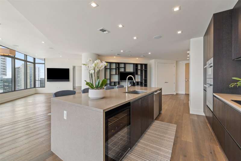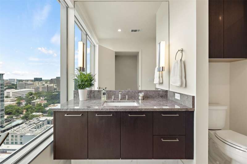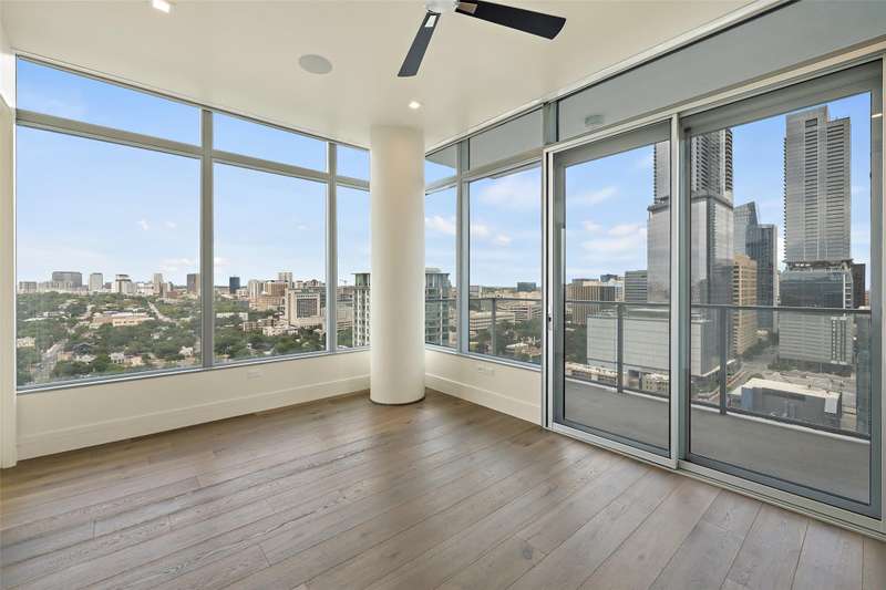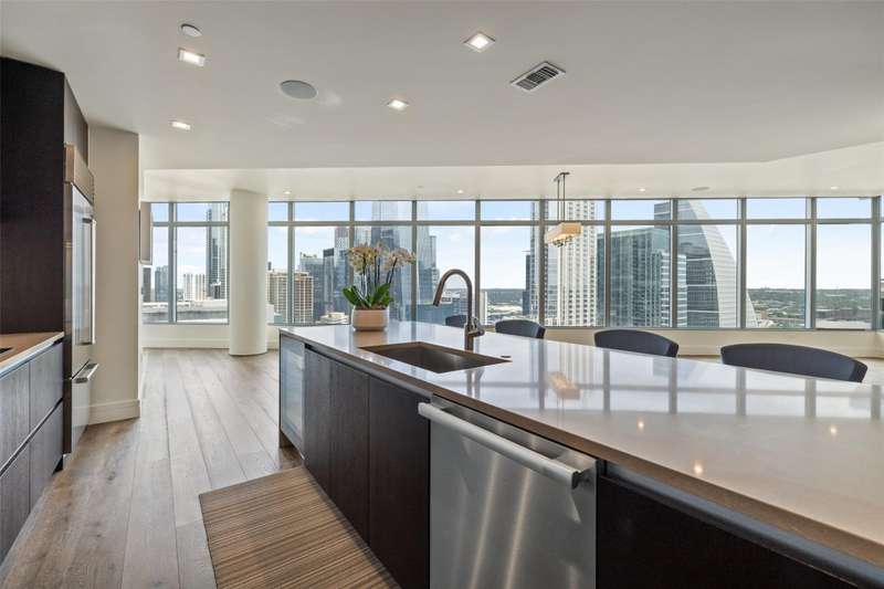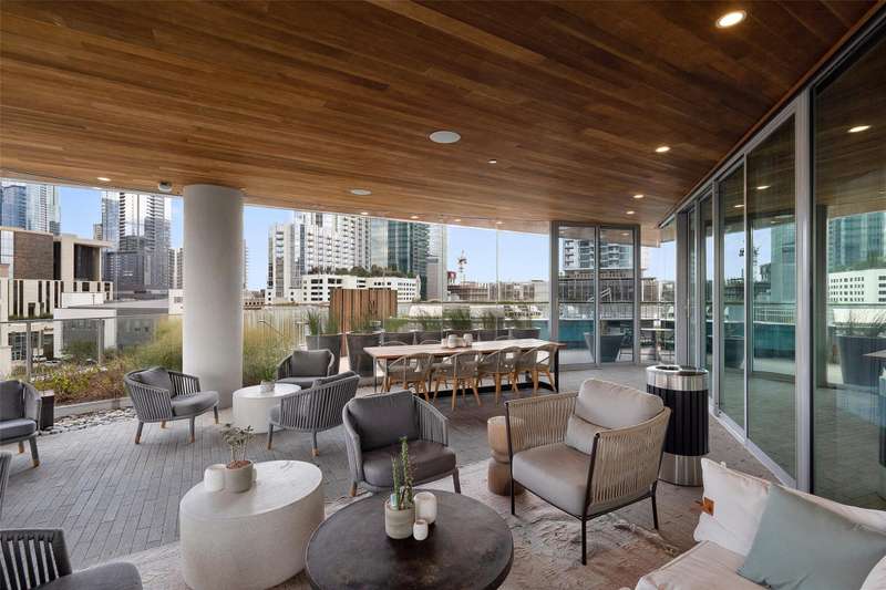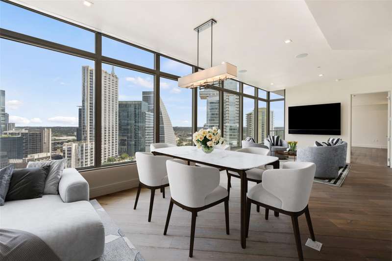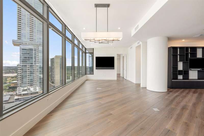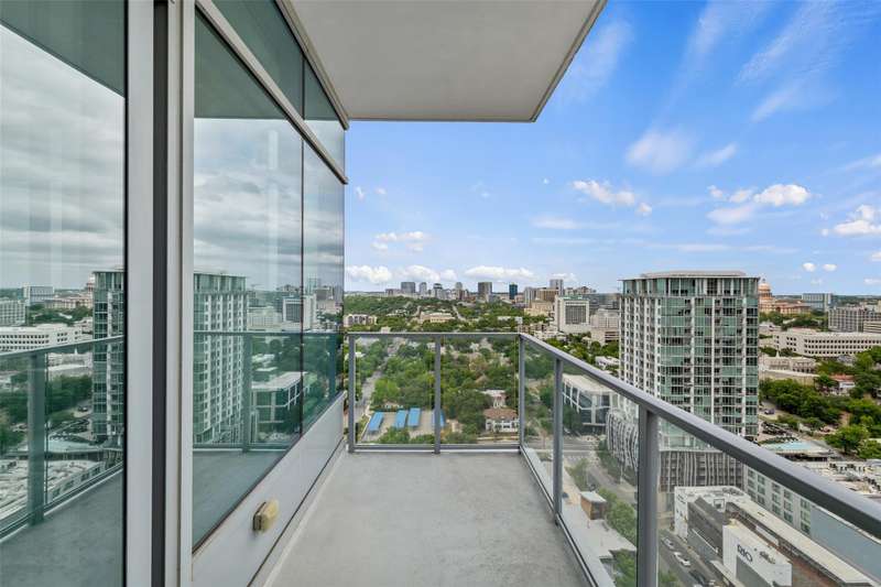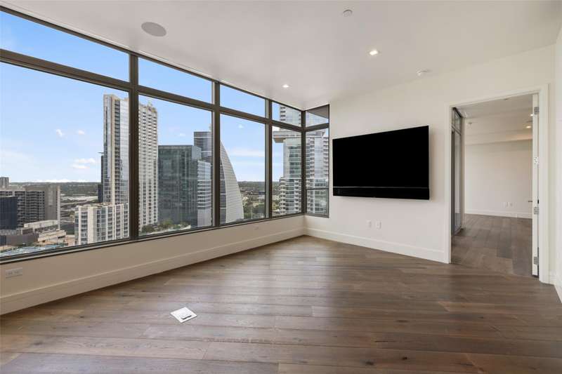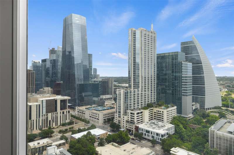 Great location and great panoramic views overlooking the Capitol View Corridor, one of the city's most protected corridors. This exceptional residence, #2303 is 3 bedrooms, 3.5 baths, with floor to ceiling windows, motorized shades, two private terraces and over 2800 SF with an open floor plan. All windows and glass doors are upgraded improving energy efficiency and providing a more comfortable interior. The chef's kitchen includes Miele appliances, a Wolf induction cook-top, Sub-Zero refrigerator as well as a wine fridge, and pantry. The primary bath has dual vanities, a frameless walk-in glass shower, large tub, Toto toilet and two walk-in closets. The unit has wide plank white oak floors, Nest thermostats, USB outlets, keyless entry, Sonos/surround sound, two premium parking spots with two electric vehicle chargers. Four plasma Sony televisions with sound bars and amps are included. Fifth & West offers resort style amenities with a state of the art gym, a work lounge, a party space with a catering kitchen, wonderful pool with great views, a dedicated dog park and guest suites for your friends. The live music capital, diverse food scene, outdoor recreational attractions, and cultural options are right outside your front door. Enjoy and explore downtown including Austin Central Library, Lady Bird Lake, the hike and bike trail, Book People, Whole Foods, many great restaurants and of course all the live music venues.