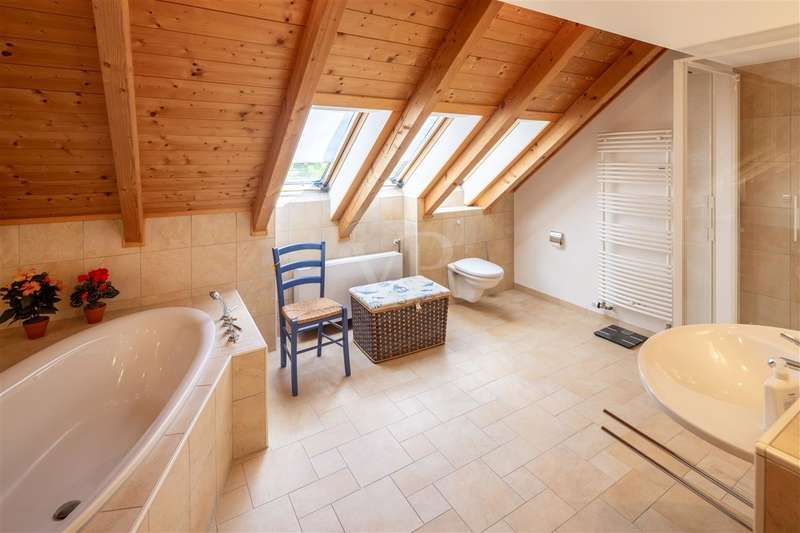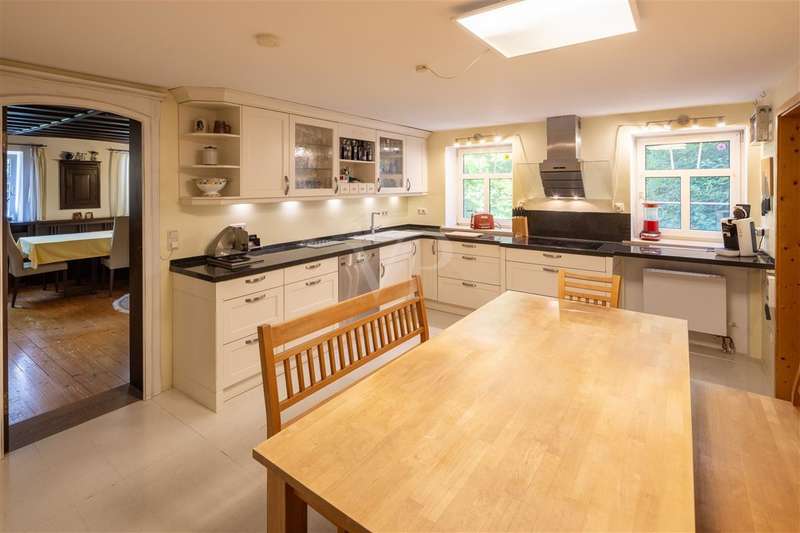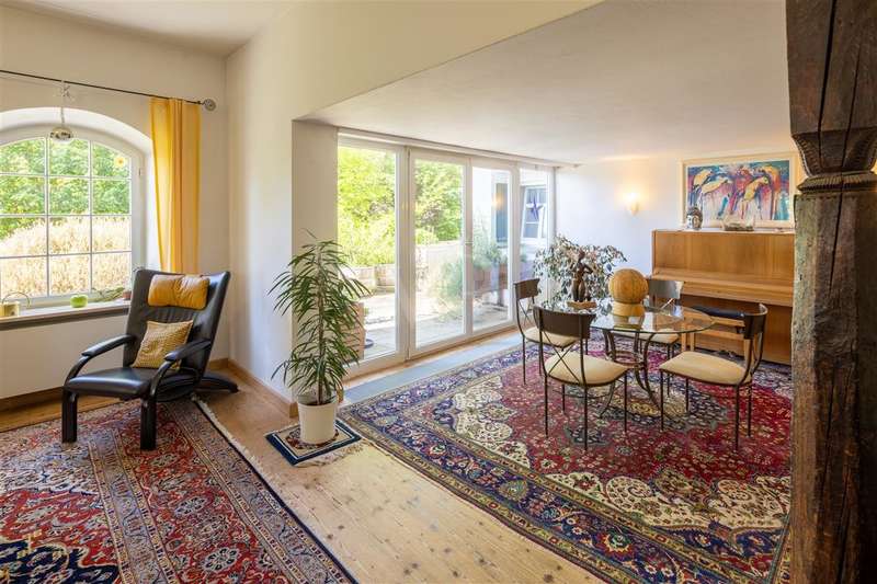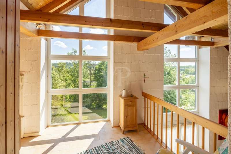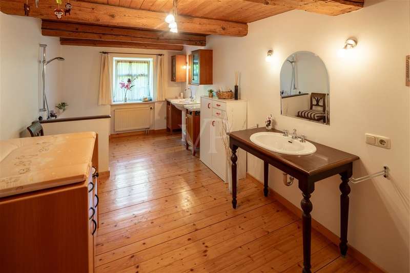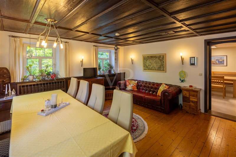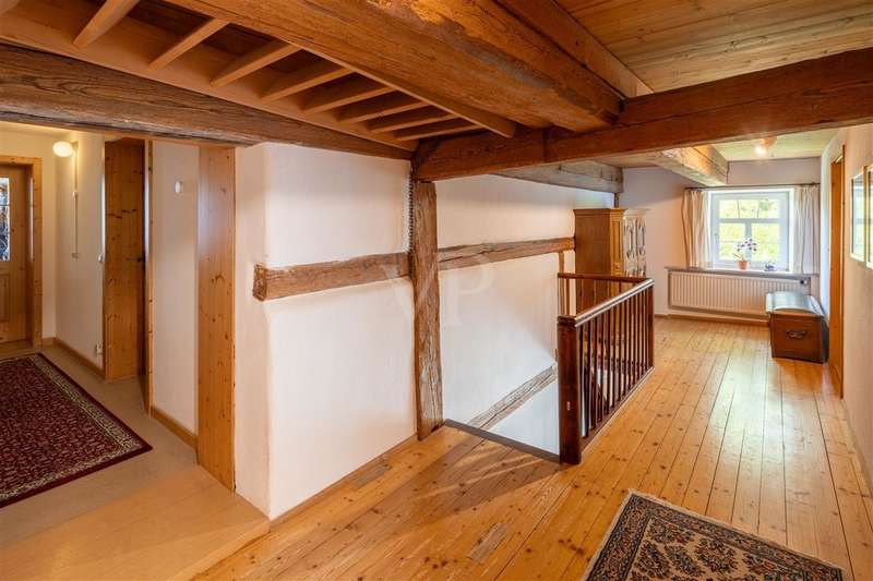 This unique property is far more than just a former farmhouse - it is a retreat for people who are looking for something special: Peace, space and a deep connection to nature. On a generous plot of approx. 5,092 m² (+8500 m² optional), this lovingly preserved and modernized farmhouse offers around 409 m² of living space and a total of 9 rooms. The origins of the house date back to 1900. In 1996, an adjoining barn was demolished to make room for a well-designed new extension. Great importance was attached to preserving the original character and style of the property - the result is a harmonious ensemble that harmoniously combines old and new. The property has been regularly modernized and maintained over the years, always with great sensitivity to the original charm. The last major measure was carried out in 2008 with the installation of a modern air-to-water heat pump, which has served as the central heating system ever since - efficient, environmentally friendly and contemporary. The spacious living area with open fireplace and the cozy parlor with traditional tiled stove provide additional cozy warmth and an unmistakable feeling of home. A special highlight is the upper floor with an individually designed studio, its own sauna and an exclusive master bathroom en suite. The house offers a total of five bedrooms and three modern bathrooms - ideal for large families or discerning guests. However, the real special feature is revealed outside: the extensive plot provides space to live, dream and create. Whether for gardening, keeping small animals or simply enjoying the almost untouched tranquillity, here you will experience a natural idyll that feels like a secluded location - far away from the hustle and bustle, but still well connected. Optionally, an adjoining plot of land with a further approx. 8,500 m² of green space can also be purchased, impressively extending the already generous area. The property has ample parking spaces, including a double garage, two large carports and plenty of outdoor parking spaces. There is also plenty of space for larger vehicles such as vans, motorhomes or trailers. This property is perfect for people who appreciate spaciousness, closeness to nature and privacy - without having to compromise on modern living comfort. The combination of traditional flair and contemporary furnishings makes this home a real place of the heart. Be inspired by the magic of this property during a viewing - your new life in the countryside awaits you here