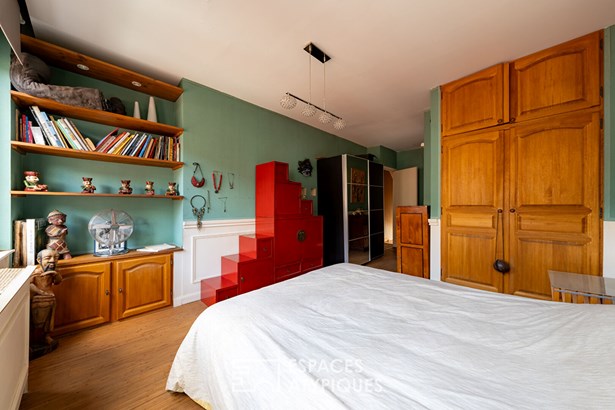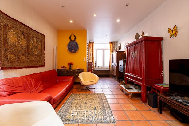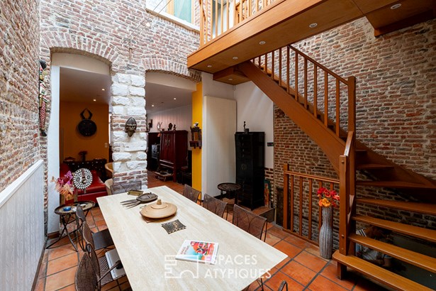 Behind a discreet facade, the house reveals singular volumes organized on two levels. The exposed brick interacts with generous brightness, giving the spaces a warm atmosphere. The living room, bathed in light thanks to a skylight, extends the old interior courtyard that once separated two separate houses. Now united, they offer a strong architectural contrast, where memory and character coexist. The kitchen opens onto a convivial dining room, while two welcoming bedrooms complete the sleeping area. An office, which could easily be converted into a third bedroom, suggests the potential for adapting the space. A bathroom and toilet on each floor optimize daily comfort.