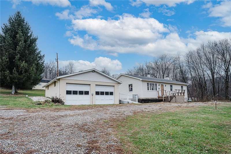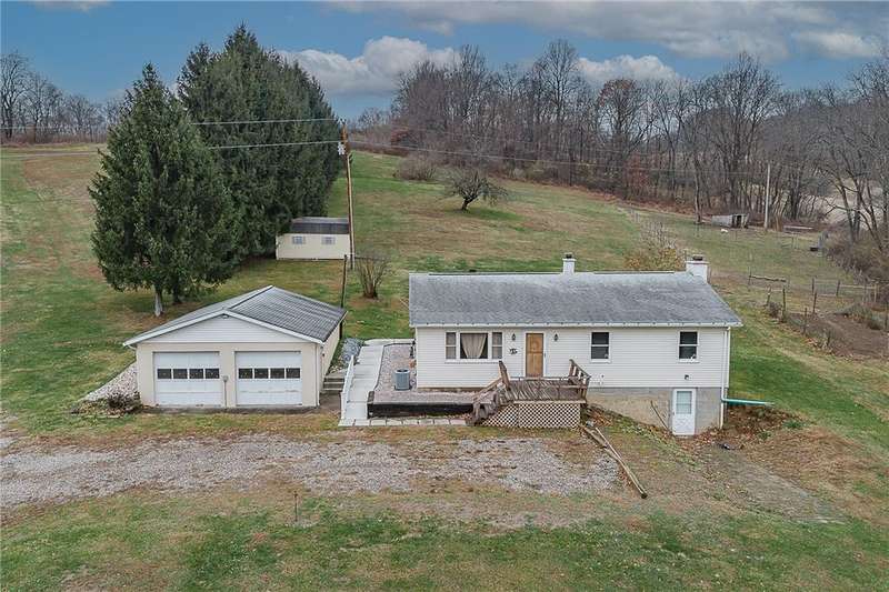 Tucked away on 1.3 peaceful acres in the Homer-Center School District, this 3-bedroom, 2-bath home offers the perfect balance of privacy and comfort, set back from the road. Inside, you'll find a warm, inviting layout with solid wood kitchen cabinetry and plenty of natural light off the dinning space that opens up to the covered back porch. The finished walkout basement?with a cozy fireplace?adds generous living space and versatility. A large two-bay detached garage provides excellent storage or workshop potential. Quiet and convenient?this home has all the right touches.
