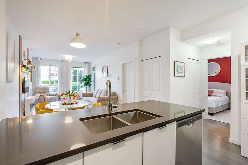 Discover the perfect blend of comfort and convenience in this meticulously maintained, MOVE-IN ready 2-bed, 1-bath condo, offering exceptional value and resort-style amenities. Enjoy the benefits of a customized walk-in closet, an open floor plan, a spacious living area filled with natural light and a double pane windows for a quiet ambience. The modern kitchen offers generous counter space, SS appliances, and a gas stove. Step outside to your private patio, an oasis for relaxation. This unit includes TWO parking stalls and a LARGE insulated private STORAGE ROOM! Easy access to Hwy 99, schools, shopping, dining and recreational options. With walking trails, green areas, and an off-leash dog park just steps away, you will truly experience the best of modern living at Harvard Gardens!