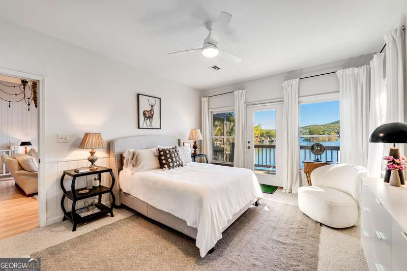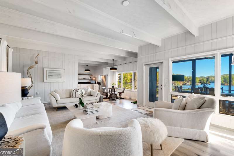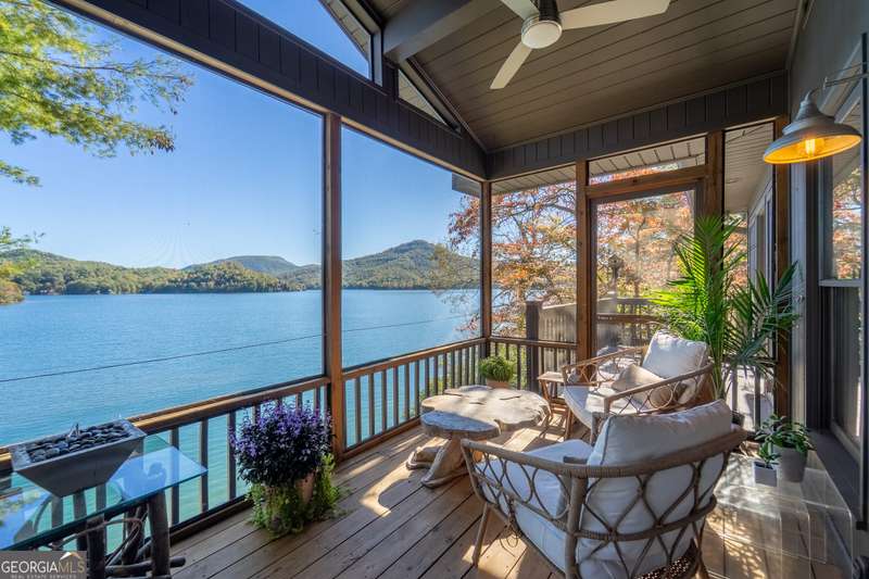 Enjoy fabulous sunrise views over Charlie Mountain from this 4 bedroom, 5 bath home on Lake Burton's big basin. This 1.34 acre property sits on deep water on the main body of lake burton with over 230' of shoreline. The freshly remodeled interior offers a vaulted great room with v-groove wood paneling and an all new kitchen with stainless appliances, new cabinetry and granite countertops. Enjoy expansive lake views through sliding glass doors that open to a lakeside screened porch and decks. The private master bedroom enjoys sunrise views over the lake from a private deck, a walk-in closet and newly remodeled en suite bath with a double vanity. Two spacious guest bedrooms on the main floor each enjoy lake views, walk-in closets, access to a lakeside deck and newly remodeled en suite baths. An oversized bedroom on the terrace level features lake views and a private full bath with double vanity. Also included on the terrace level are a second full bath, laundry room, kitchenette, dining area and living room with fireplace, all with lake views. A lakeside screened porch and ample decking are perched just above the lake overlooking sweeping mountain views. A new 2-story, 2-stall boathouse is easily accessed from the house and sits on deep water with coveted big water views. Don't miss this opportunity to own one of the best views on Lake Burton!