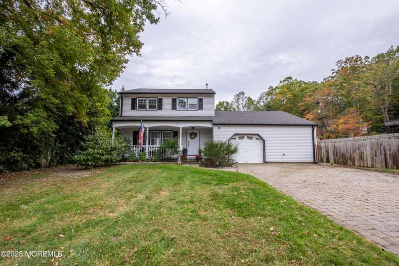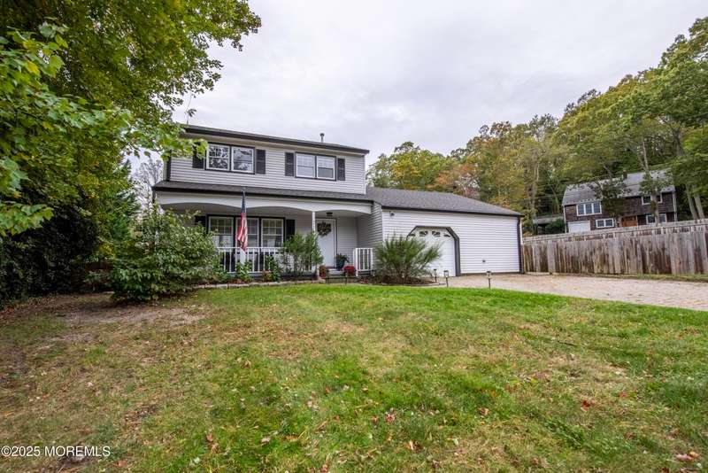 This lovely home, located in the desirable Shark River Hills neighborhood, boasts a covered front porch and fully fenced corner lot. There is a main floor den, bedroom and full bathroom that provide options for multi-generational living or guest suite. The bright living room and modern kitchen are perfect for entertaining. There are also three additional bedrooms on the second floor, including a primary bedroom with two closets. There are a ton of recent updates including roof, gutters, 2 zone A/C and gas heat. In addition to the garage there are two large attics, with pull down metal stairs, for all your storage needs. There's nothing missing in this great home except it's new family. Hurry and make it yours.