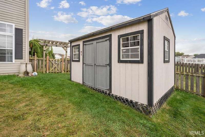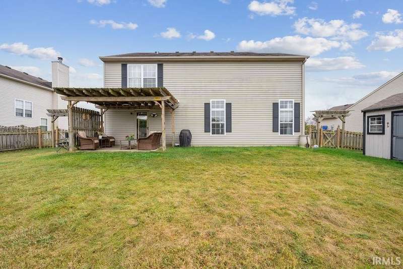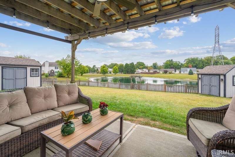 Welcome to your dream home, perfectly nestled on a serene pond in the desirable Webster Park neighborhood. Step onto the wraparound porch into this two-story residence featuring three spacious bedrooms and two and a half bathrooms. The heart of the home is the expansive living room, highlighted by soaring vaulted ceilings and flowing seamlessly into the eat-in kitchen, perfect for both relaxing and entertaining. Upstairs, you’ll find a generous master en suite and a versatile loft area ideal for a home office, playroom, or reading nook. Step outside onto your private patio with a pergola and fenced-in backyard overlooking the peaceful pond – a true outdoor oasis. Whether you're hosting a BBQ or enjoying a quiet morning sipping coffee, this setting is sure to impress. The backyard also includes two storage sheds, one of which is equipped with electricity – great for a workshop or extra storage.