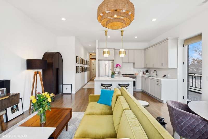 Experience modern luxury in this stunning 3-bedroom, 2-bath residence at The Legacy Lincoln Square, a boutique eight-unit elevator building built in 2020. This one of a kind unit was thoughtfully designed by Jasmin Reese Designs and featured in Modern Luxury Interior Chicago! Overlooking Carmen Ave. (not Lincoln) this unit features soaring 10-foot ceilings, abundant natural light, and a thoughtful open-concept layout creating an inviting sense of space. The designer kitchen features Jenn-Air stainless steel appliances, custom Siteline cabinetry, Caesarstone quartz countertops, and Signature Hardware fixtures, all complemented by white oak hardwood floors throughout. The spacious primary suite offers a spa-inspired bath, while two additional bedrooms provide flexibility for guests, an office, gym, or hobbies. Enjoy attached garage parking with EV charger and unwind on either your own private terrace (west facing for great sunsets) or the finished common rooftop deck with sweeping skyline views. Nestled on a quiet corner in the heart of vibrant Lincoln Square, this home offers easy access to shops, dining, parks, and public transit, all within highly rated Budlong Elementary and Amundsen High School boundaries. Great unit you won't want to miss!