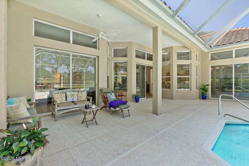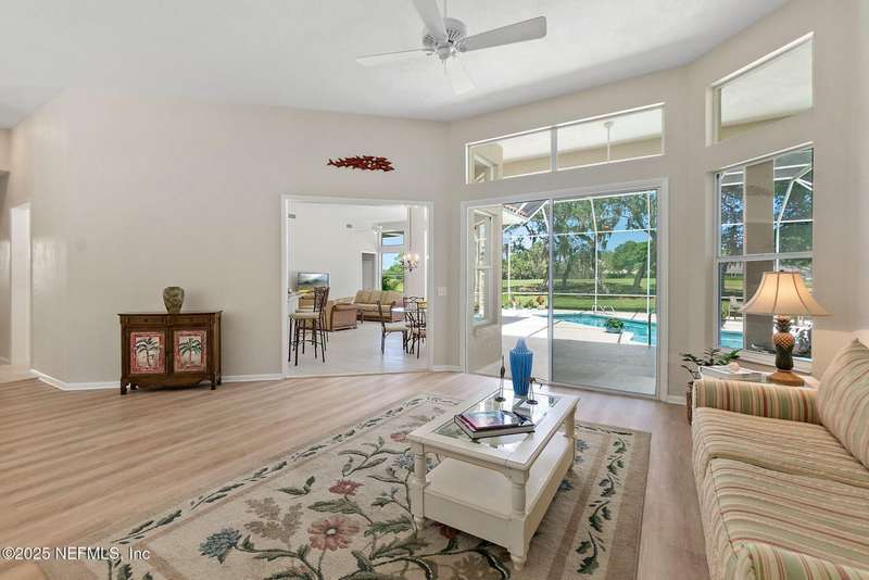 This pool home, on the golf course, in the coveted ocean front community of Hammock Dunes, is in pristine condition. Walk or ride your bike to the beach or enjoy all the amenities of the private Hammock Dunes Club, which has memberships available, but not required. The home is situated on a beautifully kept, well-maintained yard, with awesome views of the golf course, in a very desirable neighborhood. No expense was spared to make this yard a beautiful oasis and for easy upkeep the sprinkler system was updated and reconfigured. Several updates in the last 4 years include new stainless appliances, LVP flooring, washer and dryer, interior paint, and pool resurfacing that make this home move in ready. The level of maintenance on this home will impress the most fastidious homeowner. A perfect home, with an open floor plan, for entertaining friends and family with 4 bedrooms and 3 baths plus an outdoor shower for easy clean-up after a day at the beach. One bedroom has been used as a library/office and is perfect for work at home. Palm Coast is the best kept secret in Florida. Miles of beautiful beaches, over 125 miles of bike paths, beautiful parks along Intracoastal Waterway, a thriving art & theater community, home of famous artists, golf courses for every day, fishing, boating, wind sailing, surfing, canoeing are just a few of the things to do. Orlando and Disney World are close for a day outing and Jacksonville with all the shopping one could desire & the famous Mayo Clinic is one hour. NASCAR & ST. Augustine are within a thirty-minute drive. The Hammock Dunes Club has 2 golf, courses, tennis, pickle ball, state of the art fitness center, olympic size pool and splash pad, croquet and restaurants. Check out Hammock Dunes Club website for all the amenities available.