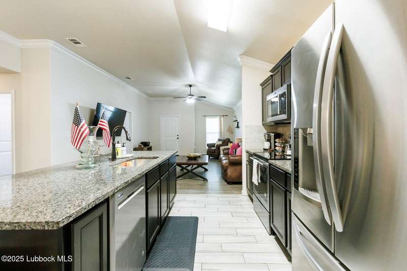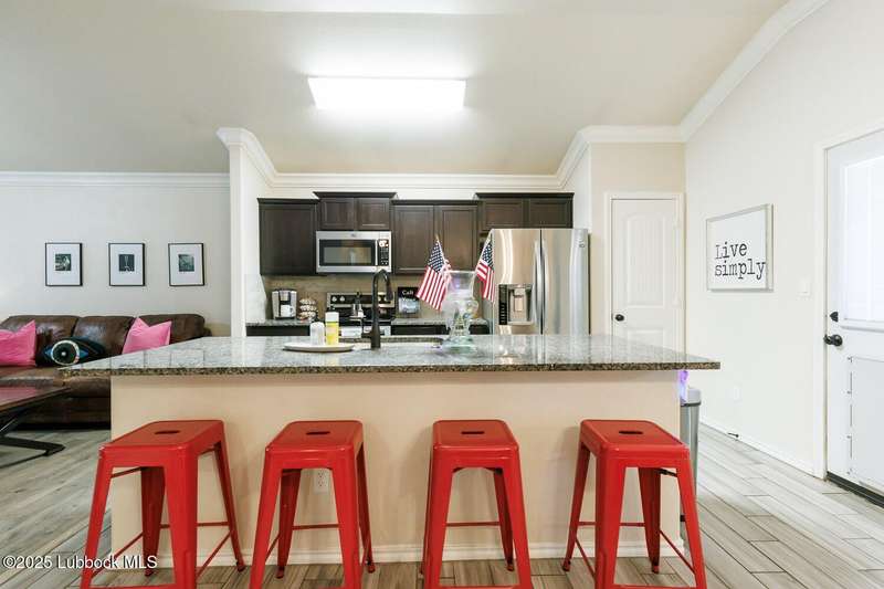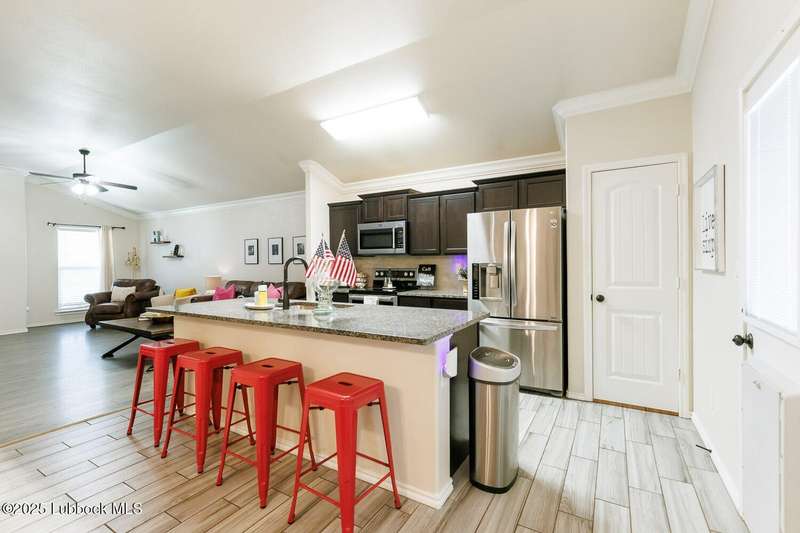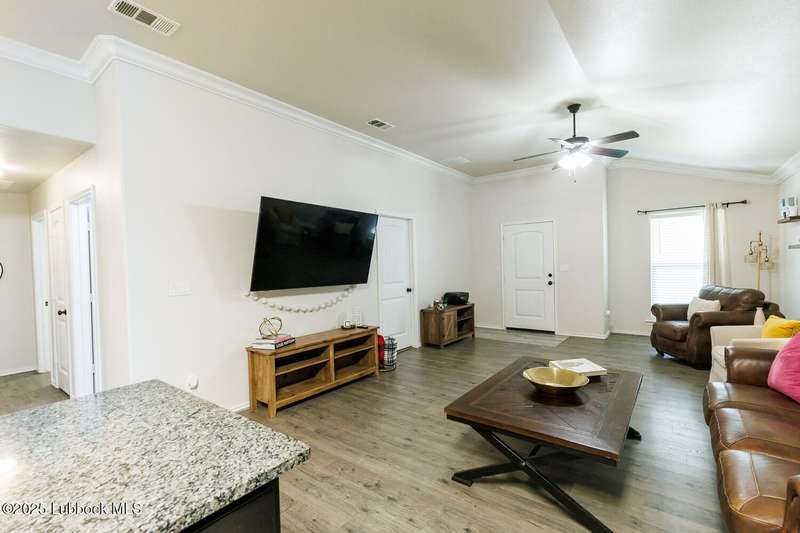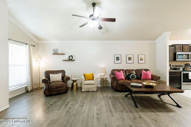 FANTASTIC new price! This one is adorable! Don't miss seeing this beautiful home in Frenship ISD! You will love the curb appeal with manicured lawn, eye-catching flower bed & cozy front porch. Step inside to see an inviting open floor plan that is great for entertaining. Hard surface flooring throughout featuring easy-to-maintain wood-look laminate floors and also wood-look ceramic tile. The kitchen features granite counter tops, stainless appliances and a pantry. Ample seating at the breakfast bar or in the eating area nook. The isolated primary suite is spacious with a large walk-in closet. Both bathrooms feature granite counter tops. Out back you have a relaxing covered patio. The concrete has been extended to give you even more patio space. The good-sized yard is kept lush and green with the help of a sprinkler system. If you are looking for a home with charm that is sparkling clean, this is it! New roof! Come take a tour and fall in love!