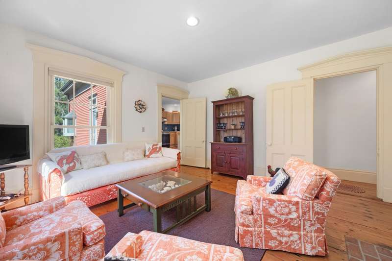 The Captain's House is a magnificent, estate-like property offering a grand, historic cape home plus a stunning guest cottage all poised on 13 acres of beautiful land leading to 540 ft. of gorgeous, sunset facing shoreline on Narraguagus Bay. The surprisingly spacious 4bed/3bath cape was originally built in 1764, by Captain Joseph Wallace, making it the first home in the area. Yet, it's been carefully retrofitted for comfortable, modern, year-round living. The home exudes warmth, history, and craftsmanship throughout with distinctive architectural touches including centuries-old wide plank flooring and the front hall's classic-curved wall design. With delightful historic charm, the main floor features a bright/cozy living room, large kitchen area (built-in dining space), welcoming front hall, large bedroom, and 2 full baths. Upstairs you'll find a lovely, second living room with soaring, vaulted ceilings, 3 additional bedrooms, and 1 full bath. The stunning, bright, and open-plan guest apartment is perched above the heated garage (with storage and built-in workspace). The apartment features a huge living area, vaulted ceilings, full bathroom, and kitchenette. Its private position would make it an ideal vacation rental. Fields of wildflowers and groomed paths lead to the barn and down to the elevated shore where you'll find breathtaking views- perfect for a gazebo or launching your kayak. The abutting land of 7acres/330feet of shoreline is also available and can be combined with this listing. This fantastic property, sold completely turnkey (all furnishings etc), is located on a quiet, wooded peninsula, just 5 minutes from the full-service, oceanfront village of Milbridge with its parks, grocery, pharmacy, banks, medical center, small restaurants, and arts center. Just 30 mins. to Schoodic Point in Acadia Nat'l Park / 1 hour to Bar Harbor in the MDI section of Acadia Nat'l Park, Quoddy Head Lighthouse, and Campobello Island Canada / 1.5 hours to Bangor Int'l Airport