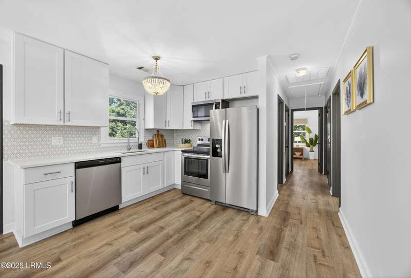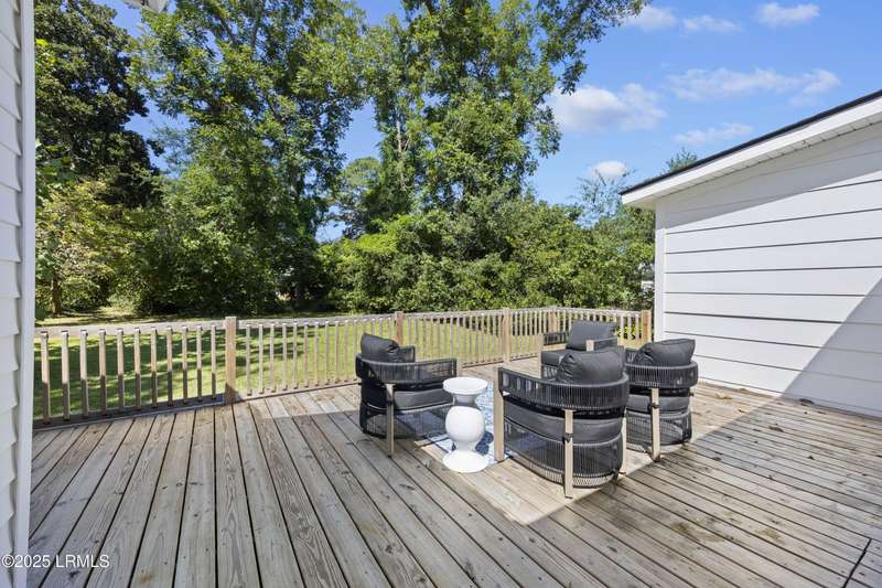 Welcome to serenity in the heart of Mossy Oaks! This beautifully remodeled home sits on a large private lot surrounded by mature trees and shrubs, offering peace, privacy, and Lowcountry charm. Step outside to enjoy a recently installed spacious deck and fully fenced yard that are ideal for outdoor living, whether you're entertaining guests, dining under the stars, or simply unwinding with a good book. This home offers a new HVAC system and master bath (both installed in 2023), along with full renovations that bring a modern touch to every corner. The kitchen and bathrooms feature luxurious quartz countertops, updated fixtures, and brand-new appliances. Stylish and durable luxury vinyl plank flooring runs seamlessly throughout the home, adding both warmth and practicality. This prime location is within walking distance to schools, Southside Park, and the scenic Spanish Moss Trail. Centrally located, you're just minutes from all military bases, downtown Beaufort, and the beautiful Sea Island beaches, making this home a perfect blend of comfort, style, and convenience.