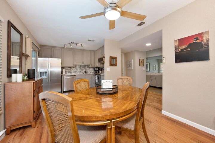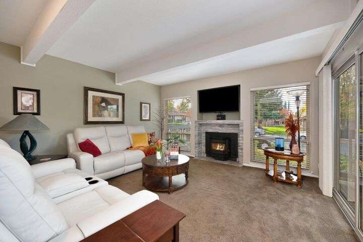 Welcome to this beautifully maintained 3 bed 2.5 bath corner townhome. The exterior area has a gated front for privacy and a patio area on two sides. The interior has remodeled bath and kitchen with quartz counters, soft closing cabinets and lovely glass tile backsplash. Living room features a fireplace w/a stone facade, pellet stove, open beam ceilings and has great windows taking in the local view. Both the primary bedroom and living room have balconies. The dining room is spacious and roomy enough for gatherings. This unit does have windows on three sides allowing for great lighting. New a/c approx 5 years ago too. 2 car garage and driveway as well. The community has a pool, tennis/pickleball courts, clubhouse, sauna and spa for more activities. This home is located on the Fair Oaks border with fabulous access to shopping, restaurants. And not far too from Fair Oaks village that offers entertainment fun and river access which makes this a great spot to call home!