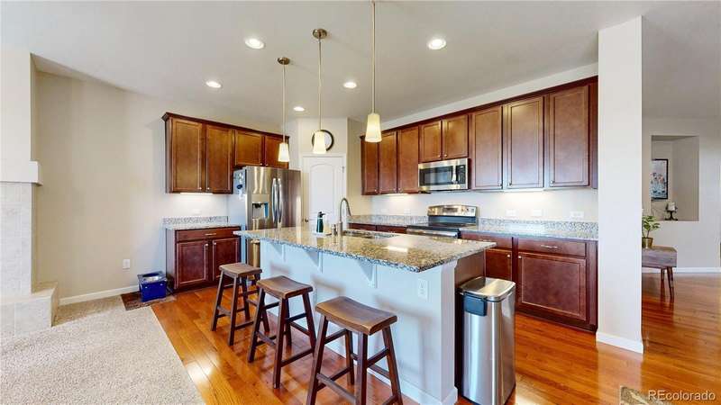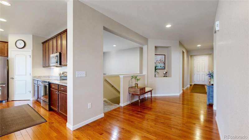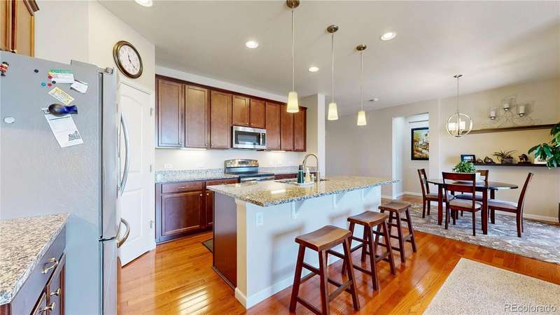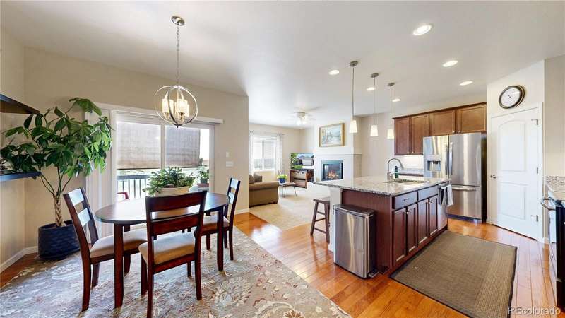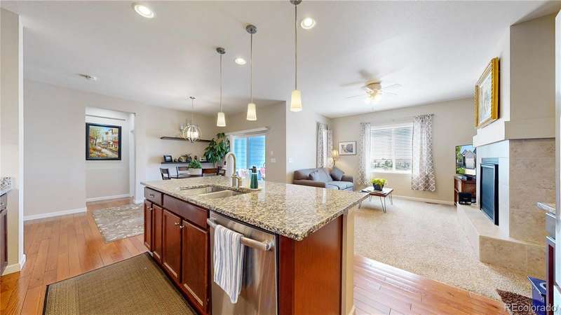 Price Reduction! Fall into this beautiful, versatile ranch-style home in Palisade Park! Main level welcomes guests with gleaming hardwoods, a spacious office that can serve as extra bedroom, large dining room and kitchen with granite counters | stainless appliance package. Cozy family room with fireplace perfect for a relaxing evening after you've spent some time on the private deck! Walk-out basement boasts multiple living areas, guest bed and bath, plus terrific workshop for anyone who craves a DIY project! Exterior newly painted and concrete patio resurfaced in 2025. Radon mitigation already in place. Backs to pond, open space, walking paths and more. Moments to the Broomfield Farmer's Market and new Palisade Park Community Amphitheater. Conveniently located near I-25, The Orchard Town Center, and TopGolf. Easy access to DIA on E-470. Welcome Home!