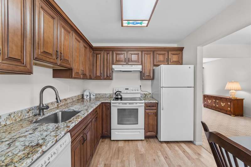 Here It Is... An Essex model Condo for rent! You'll feel at home in this very spacious 2 Bedroom plus Den condo that lives like a 3-bedroom single family home. It has all the comforts, including a private driveway and attached garage with interior entrance to the house. Enjoy a one step entry into a wide, tiled foyer that leads to a bright and spacious living room. Step thru the sliding glass doors to a private, peaceful space that is ideal for enjoying morning coffee and outdoor dining. The formal dining room is perfect for your everyday meals and easily accommodates 8 and more for holiday entertaining. The Updated Eat-In-Kitchen is airy and sunlit with a double wide window, granite countertops, and custom cabinetry. The EXTRA BONUS is the Den, ideal as office space or media room. The Master bedroom ensuite can easily accommodate a king size bed and features a large walk-in closet with plenty of storage space. A second bedroom and updated hall bath offer comfort and privacy to your guests. The hall bath also contains a full-size washer and dryer behind mirrored doors with extra shelves to hang clothing. Jefferson Village is a highly desirable and lively 55+ community. The resort style clubhouse and in-ground pool are great spots to exercise, socialize and meet friends. There is tennis, pickleball and bocce courts, and indoor and outdoor shuffleboard plus a community garden. The clubhouse is a welcoming gathering place with a state-of-the-art fitness center, billiards, library and craft room. Organized outings are an extra perk! Heat, hot water, basic cable and pool and activity fees are INCLUDED. Tenant pays electric. Don't miss this terrific opportunity for carefree living. Wall Unit Stays in the Condo.