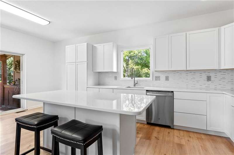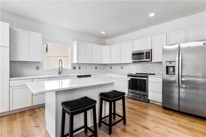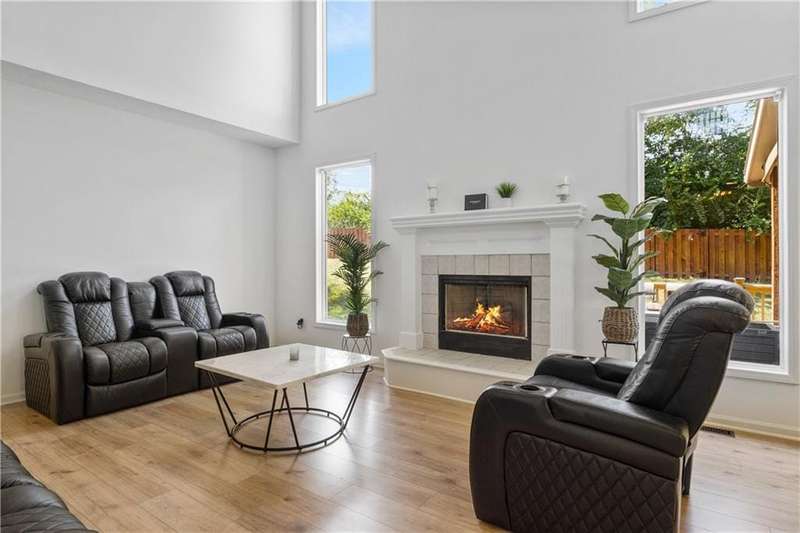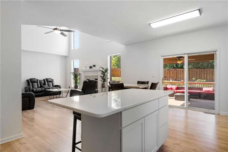 Welcome to 17821 W 86th Street in Lenexa's desirable Parkhurst Highland Pointe! This fully remodeled, stunning 2-story home on a cul-de-sac offers 4 bedrooms, 2.5 baths, and over 3,300 sq ft of thoughtfully upgraded living space. Step inside to find all-new engineered hardwood floors, fresh interior paint, and a beautiful entry that opens into a versatile sitting area or office, leading seamlessly into a spacious living room with soaring ceilings, abundant natural light, and a cozy gas fireplace. The kitchen is a chef's dream, boasting new quartz countertops, a large island, new cabinets, and stainless-steel appliances, plus a convenient deck access overlooking greenspace. Upstairs, retreat to the luxurious primary suite with vaulted ceilings, a completely updated bath featuring dual granite vanities, a custom tile shower with rain showerhead, and a generous walk-in closet. The additional bedrooms each offer new engineered hardwoods, fresh paint, natural light, and updated lighting. The finished lower level, complete with a new egress window, offers flexibility as a recreation space or potential additional bedroom. The outdoor experience is just as inviting with a fully fenced yard that adjoins green space, a water feature, and a partially covered deck perfect for entertaining or relaxation. Enjoy the convenience of a 3-car front-facing garage, proximity to Lenexa Hills Elementary, walking trails to park/lake from back yard including countless upgrades, such as a new furnace, AC, ceiling fans, light fixtures, and more. This home truly combines style, comfort, and location don't miss your opportunity to make it yours!