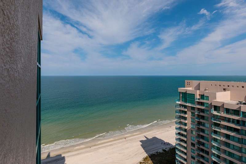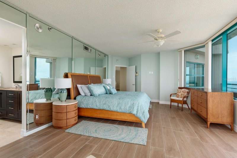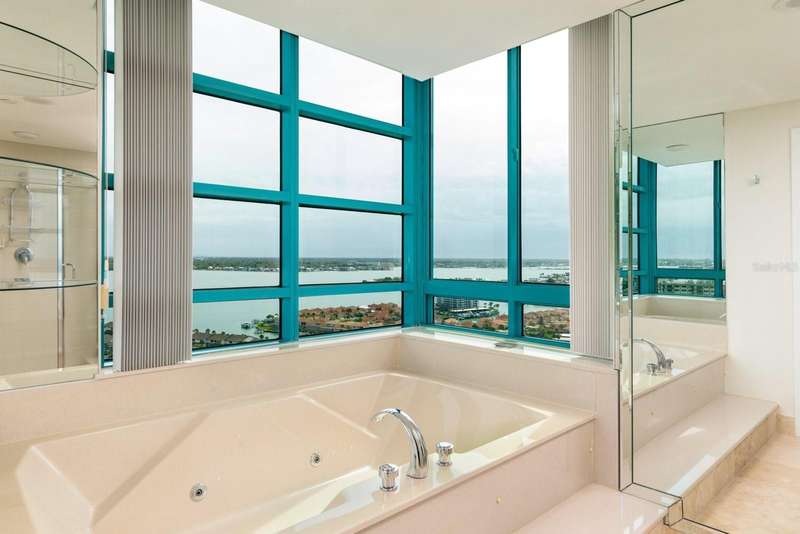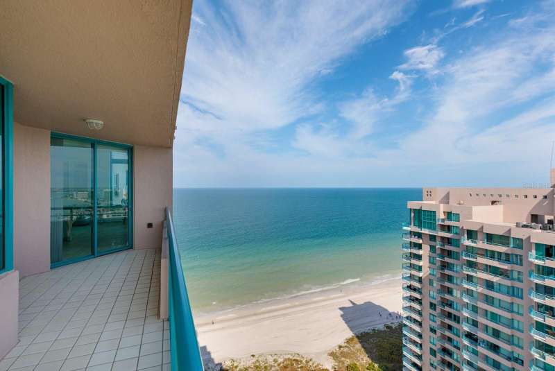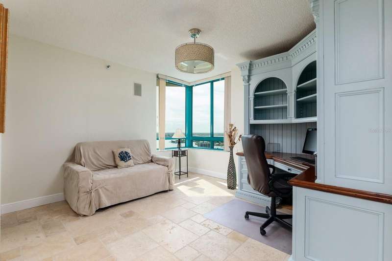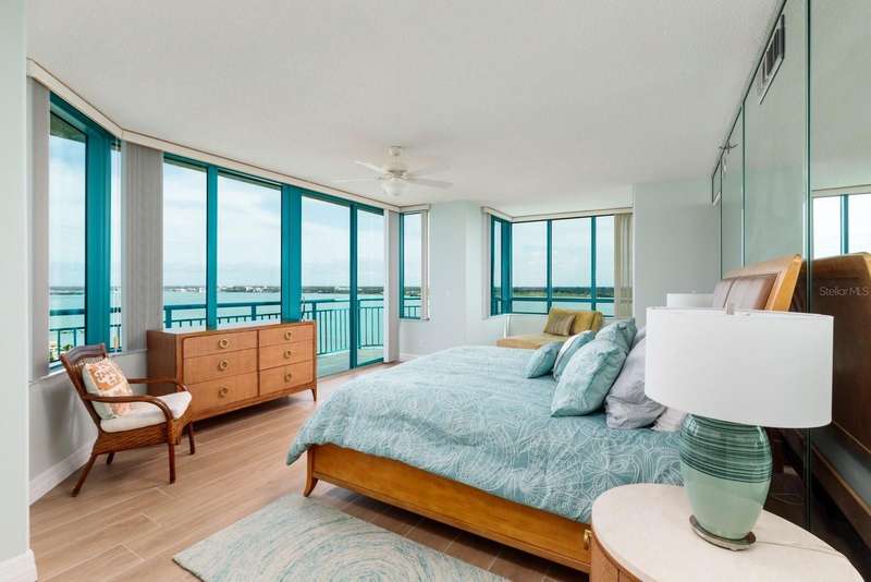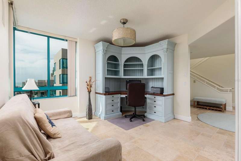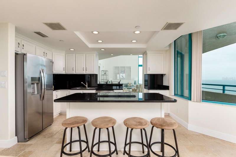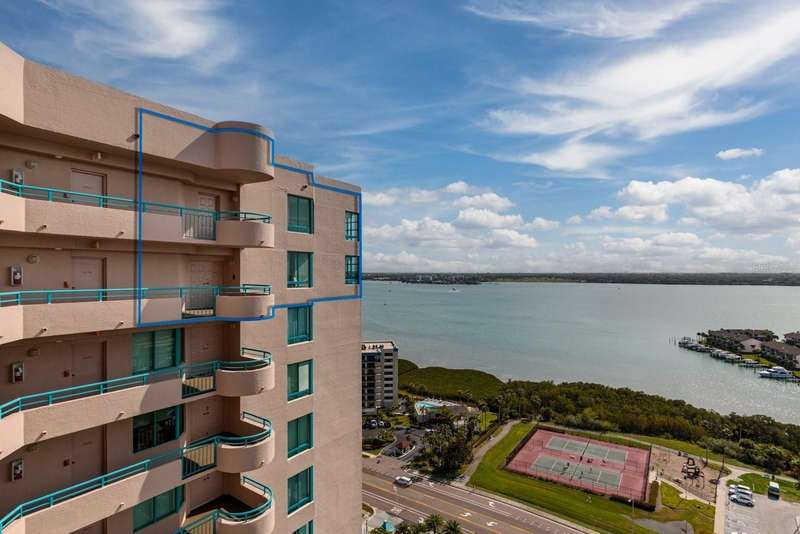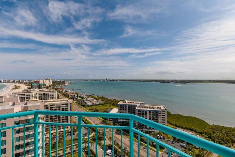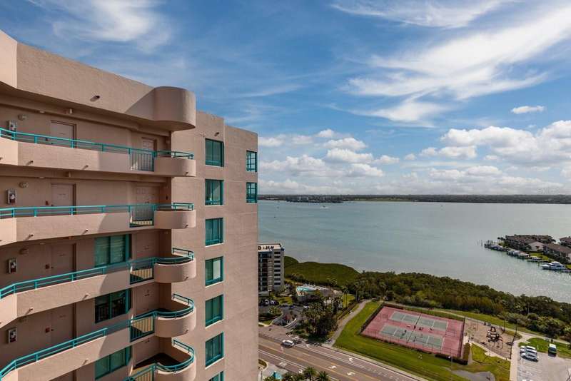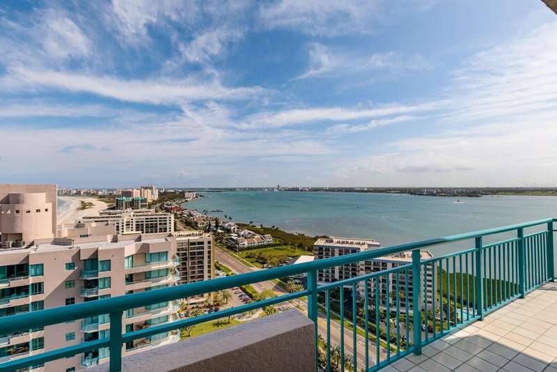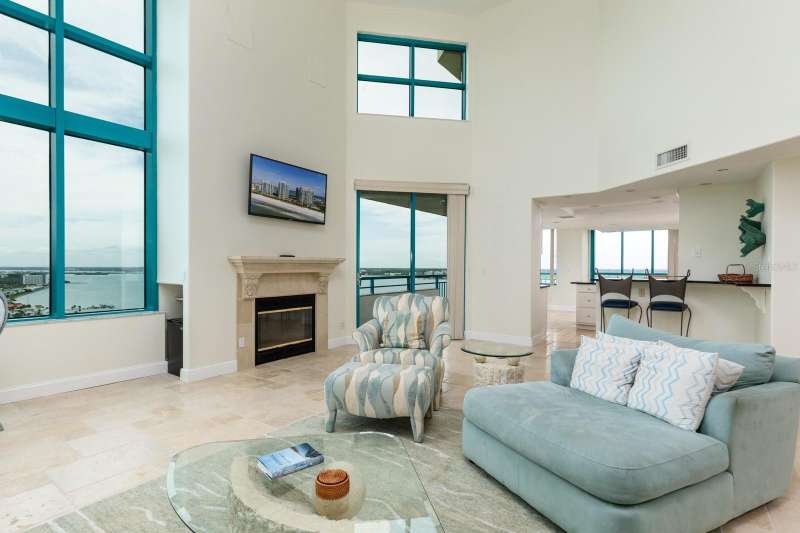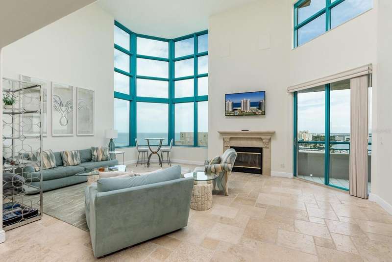 RARELY AVAILABLE 2 STORY PENTHOUSE, CORNER UNIT WITH COVETED 4 CAR PRIVATE GARAGE #14, WITHIN THE PARKING GARAGE. Located on desirable Sand Key this condo has soaring 18 ft ceilings in the living room with window wall overlooking the Gulf of Mexico. Wood burning fireplace creates beautiful ambiance for those occasional cool nights. Wrap around balconies afford 270 degree views of the Azure Gulf of Mexico and the nighttime lights of the Intracoastal. Luxurious 3 bedrooms & 3.5 baths recently updated in Chic Coastal Style by Decker Ross Interiors . Also has a den/office on the main level. European Travertine floors on the main level with wood look tile on the stairs & 2nd level. Open kitchen has black granite tops, white cabinets, cooking island & stainless steel appliances. Kitchen opens to dining area Fantastic water views from every room. See all the way north to Honeymoon Island & south to the Sunshine Skyway Bridge. Relax on any of your balconies, while having a cool drink, feeling the tropical breezes. Birds eye view of the fireworks for the holidays up & down the beach & all the way to Dunedin, Tampa, St Pete & beyond. Dual water heaters, dual A/C units. Large laundry room with laundry tub along with front loading washer & dryer. The World Class community of Ultimar on Sand Key offers true resort style living with 3 geo-thermal heated pools & spas (one is a lap pool). 3 tennis courts, pickle ball, basketball court, putting green, grill area, fire pit area, shuffleboard, corn hole, club room, median room, billiards room, social room, steam & sauna, 24hr guard gated. Walk to great restaurants & shops or catch the beach trolley right !out in front of the building. A short drive to Tampa & the airport plus all the sports venues of our championship teams. See virtual tour! Call for your private showing! Start Living the Florida Beach Lifestyle Today! Ultimar 2 has been through Milestone & SIRS Inspections. No issues. They are fully funded & their fees did not go up for 2025 despite the insurance increase.