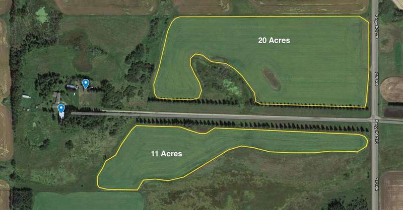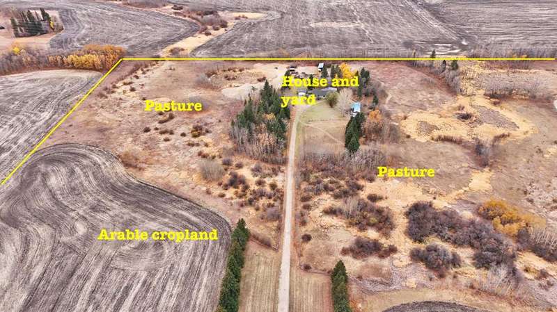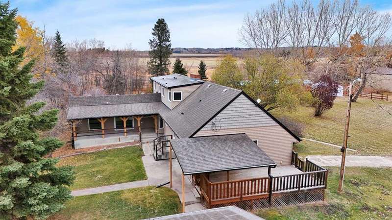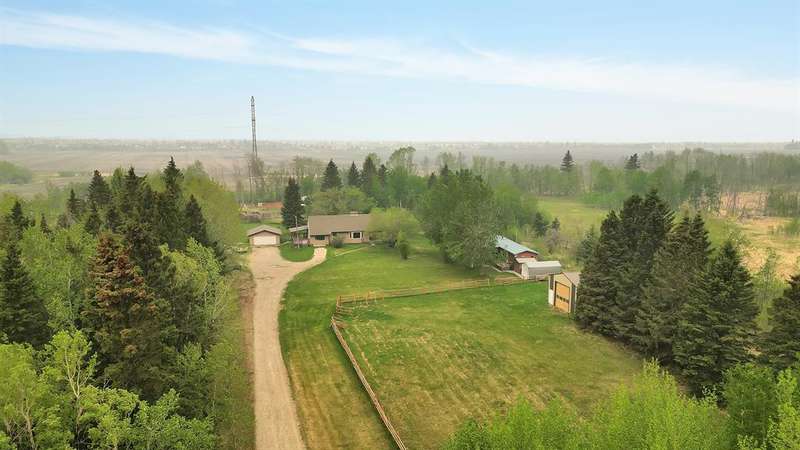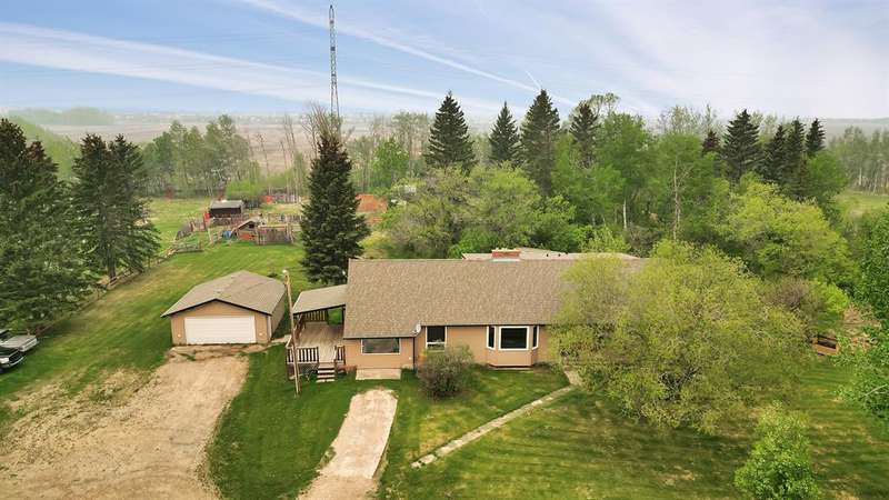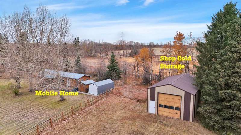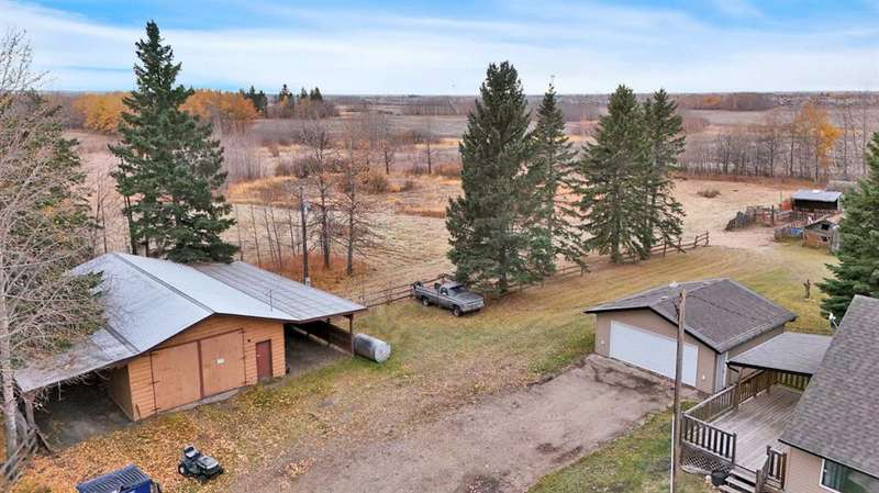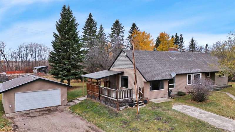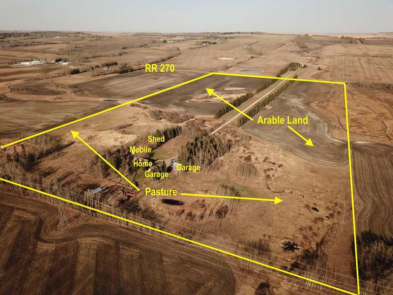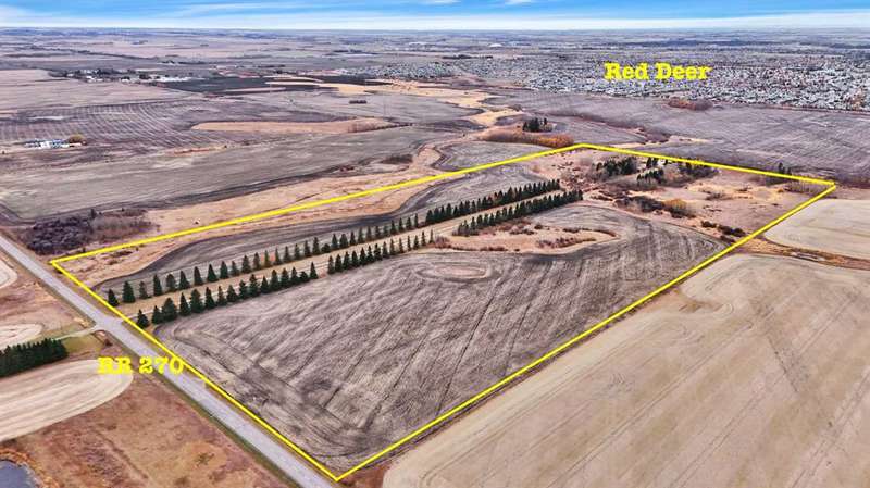Fabulous opportunity with recent renovation upgrades! Invest in your future and enjoy complete privacy on this 80-acre parcel, located within Red Deer’s intermunicipal district along its eastern boundary. This property offers a wonderful rural lifestyle, a solid investment hold, dual-residence living, and multiple streams of farming income, including livestock, equestrian, solar, tree farming, market gardening, and grain. With its proximity to the city, this is a unique opportunity where your living investment is sure to appreciate over time. The property features a 2-storey main house (built in 1974), a mobile home (1991), a 24'x24' detached garage (1976), a 40'x26' insulated shop with cement flooring, a 50'x24' cold storage pole-style shop (1998), and numerous other outbuildings. The land is level, with approximately 32 acres of arable farmland featuring excellent soil quality, expansive pastures, low-lying areas, treed and brush sections, and a beautiful tree-lined driveway that leads from paved Range Road 270 to the yard site. The main home offers a functional layout with a main floor master bedroom, two living areas (one with a wood-burning fireplace), a kitchen complete with an indoor barbecue, and a renovated 2-piece bath. The expansive bonus room addition features a gas fireplace, patio doors to the south-facing deck, and a bar area perfect for entertaining. Upstairs, you'll find a roomy bedroom with a Juliette balcony, a 4-piece bathroom, and an adjoining space with two additional sleeping areas. The lower level is wide open and offers ample storage, a utility area, and Laundry. The well-maintained mobile home includes 2 bedrooms, 1 bathroom, upgraded vinyl windows (2007), a south-facing covered deck, and a parking shelter. Renovation highlights include new windows for both the house and mobile home (2007), a fully renovated main floor 2-piece bath, and a complete second floor renovation with new doors, trim, and paint. Also a complete bathroom reno including shower, flooring, vanity, and paint. Additional upgrades include shingles and siding on the house (2011) and a replacement of the septic tank (1992). Zoned A1 Future Urban Development District, this property allows for agricultural and related uses until the land is needed for urban development. This property is a rare combination of lifestyle, investment, income potential, and privacy—an opportunity that rarely comes along!